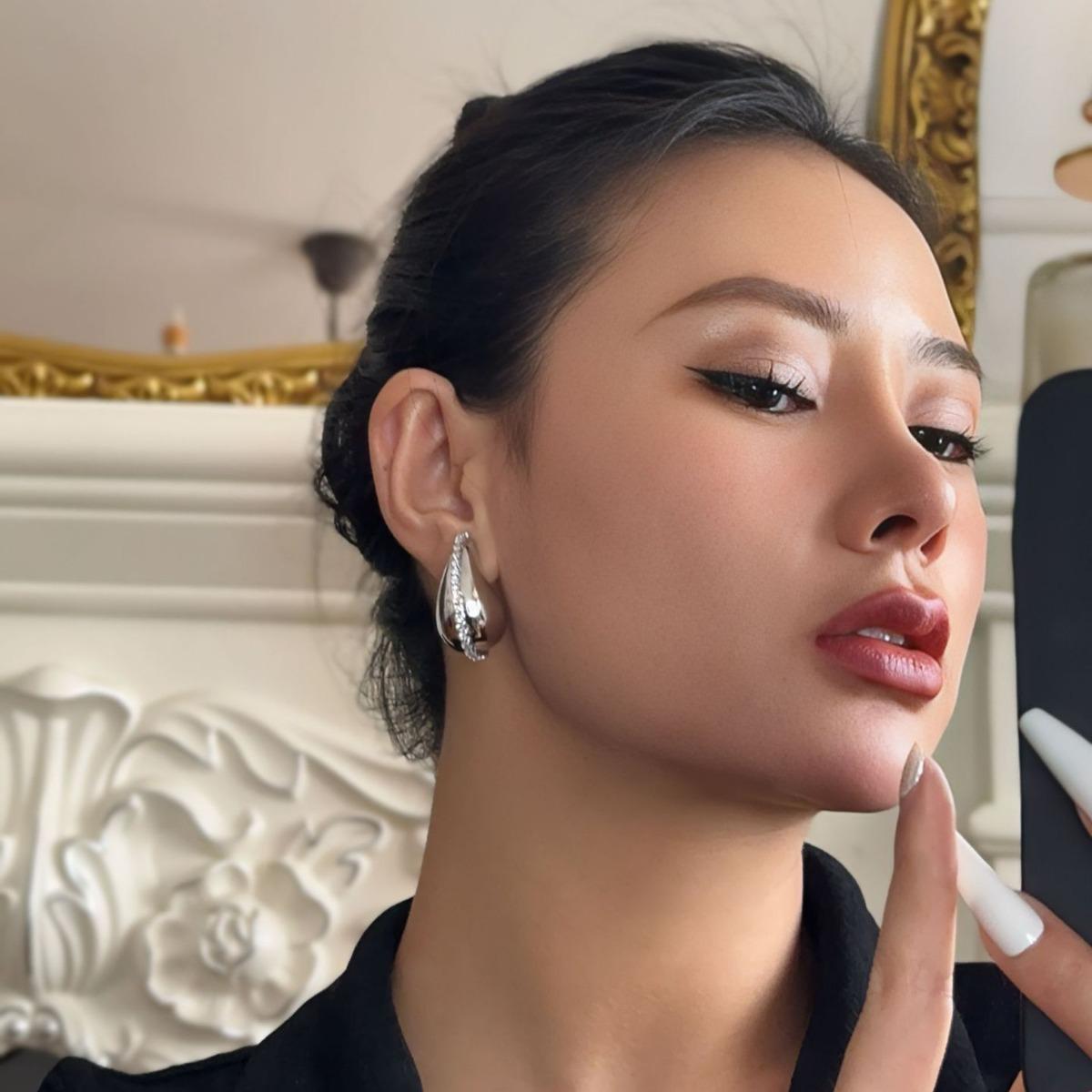 D0412 glossy earrings-Silver