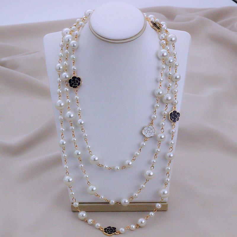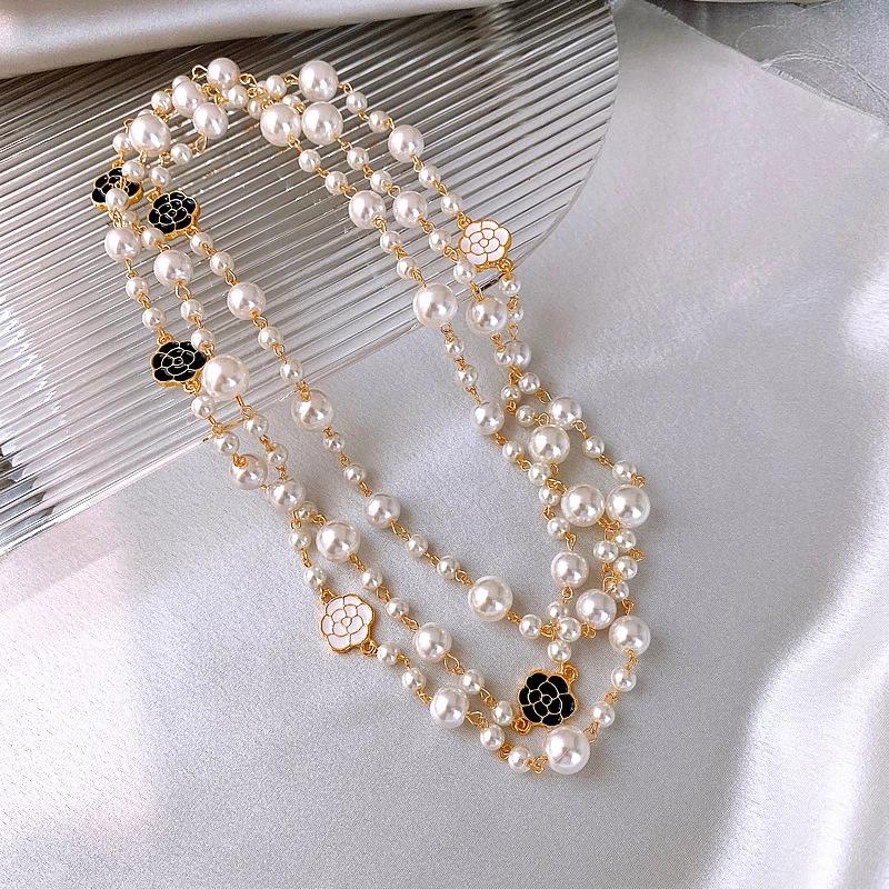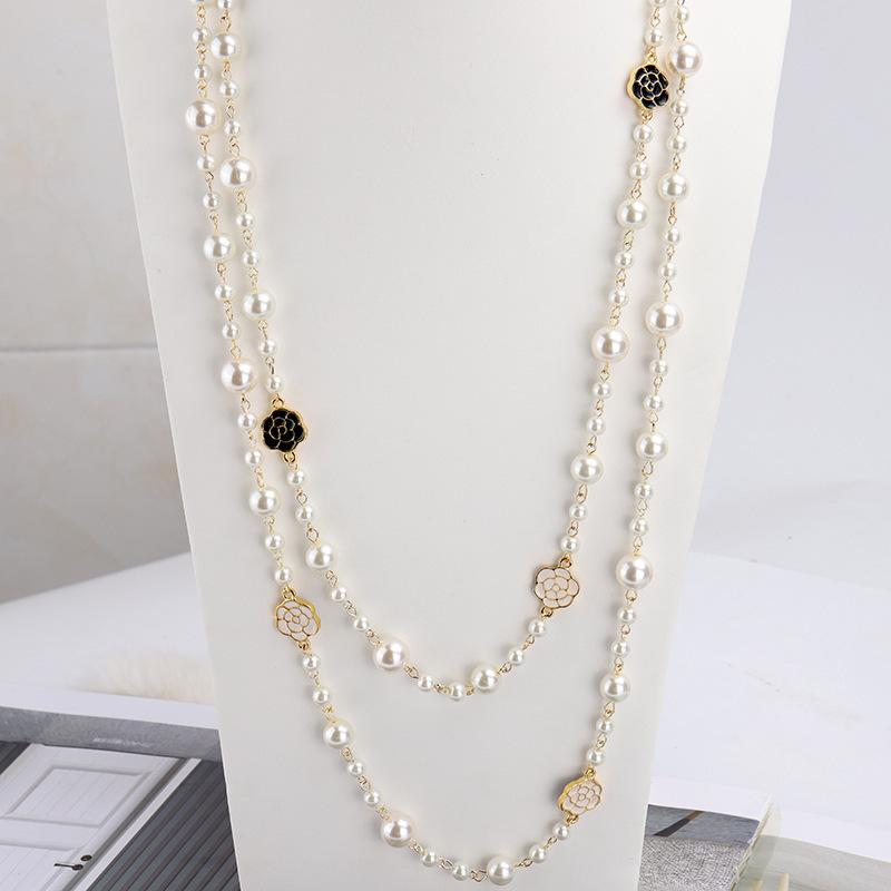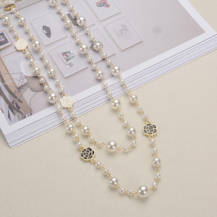 Collar largo de camelia con perlas de imitación de estilo coreano para mujer, elegante cadena de suéter multicapa Joker, venta al por mayor