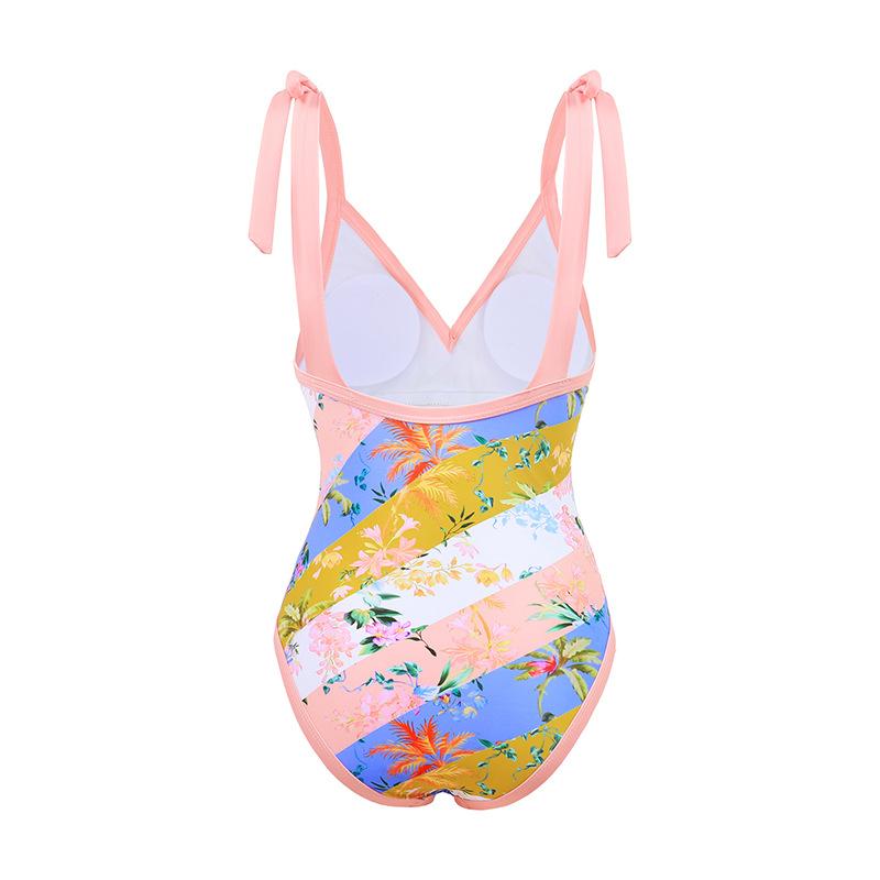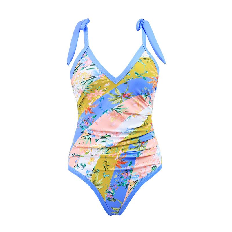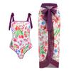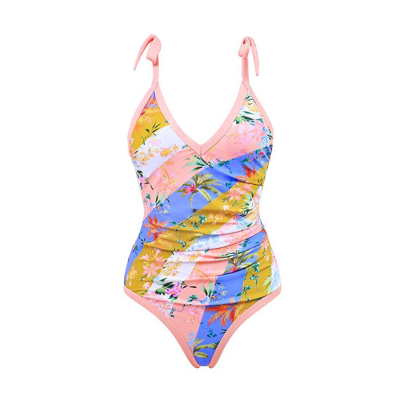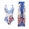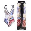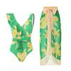 Traje de Baño Entero Nuevo Europeo y Americano para Mujer Ajustado Delgado Retro Estampado Comercio Exterior con Tirantes Traje de Baño Falda de Playa