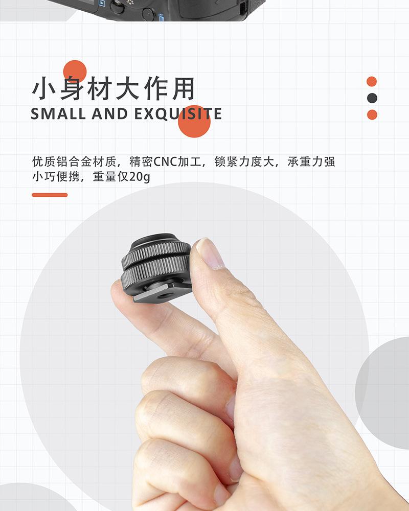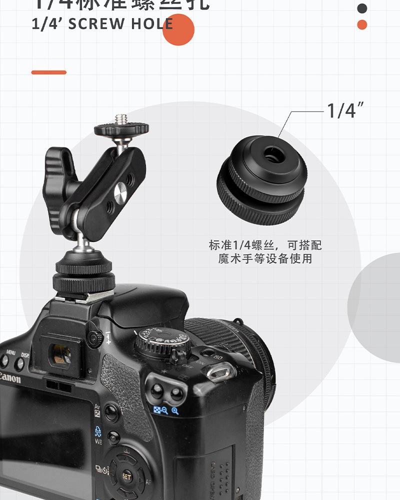 Adaptador de metal de 1/4", base de conversión de zapata para cámara SLR, instalación rápida, luz intermitente y micrófono