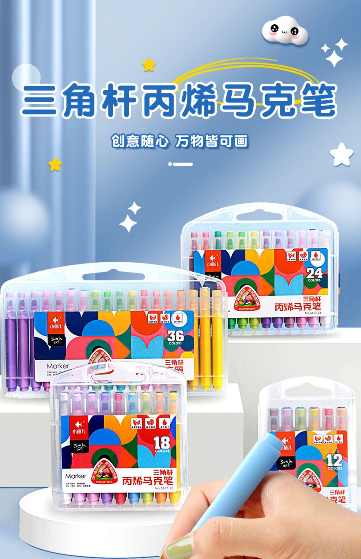 12-color acrylic marker pen press-free small fish triangle Rod, 18-color acrylic marker pen press-free small f...