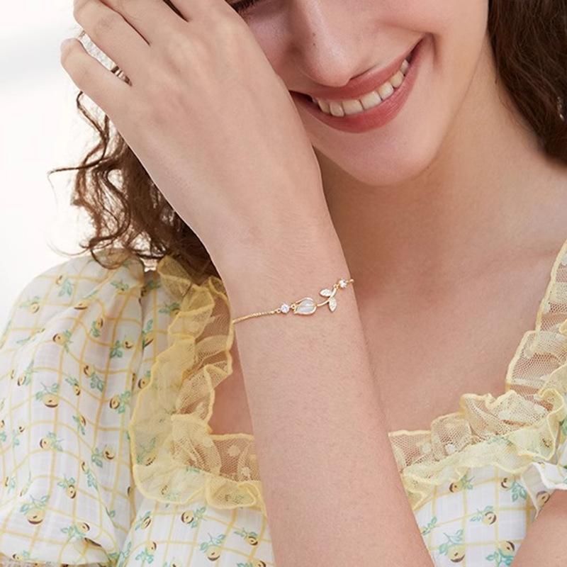 Pulsera ajustable de tulipán para mujer, estilo ins, pulsera de nicho, cadena de garra de pedrería coreana, pulsera de rosa extraíble