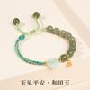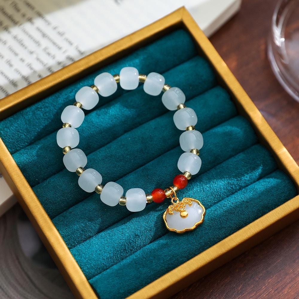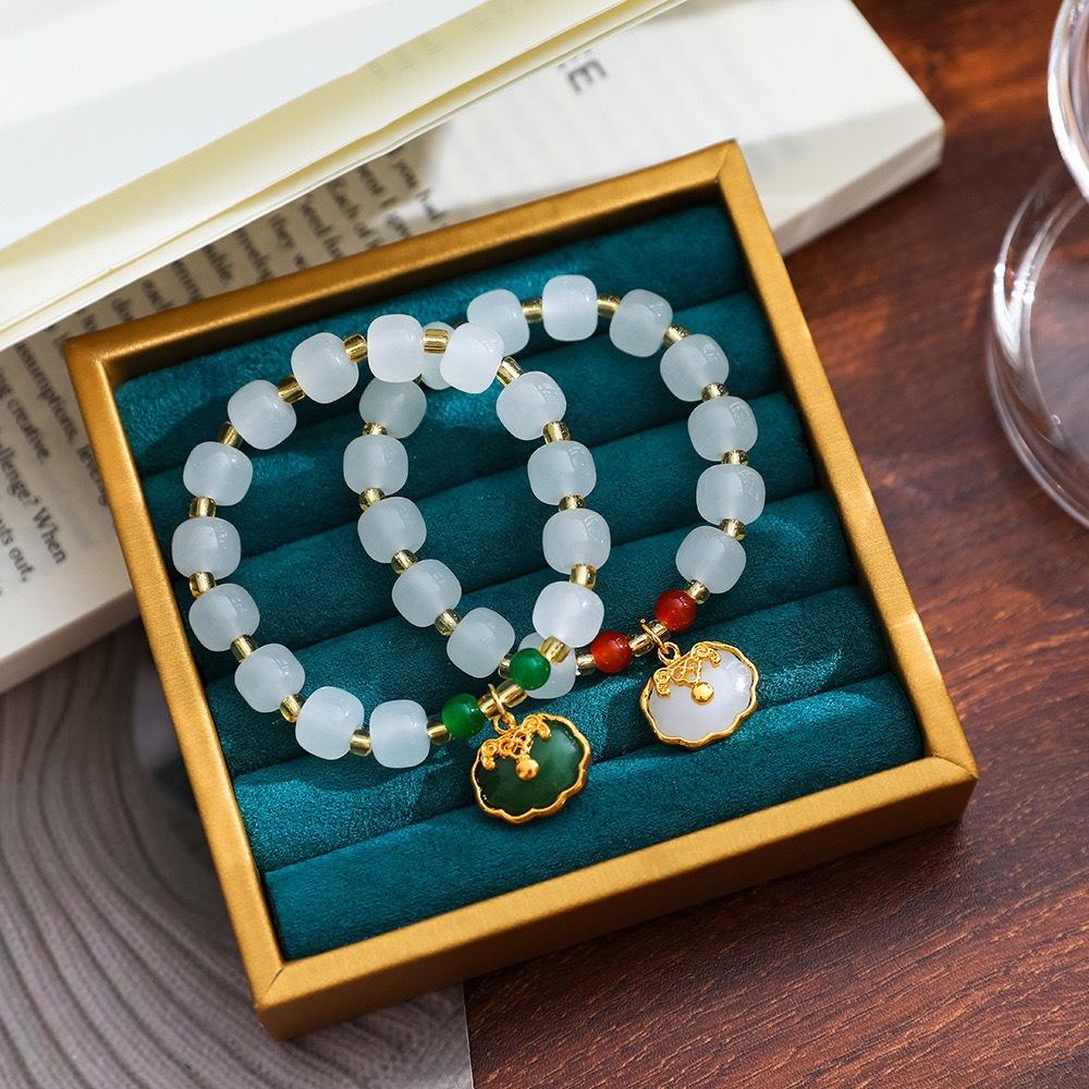 Pulsera auspiciosa de Jade Blanco incrustación geométrica Blanco comodín femenino colgante de candado de longevidad Ruyi joyería de estilo nacional al por mayor