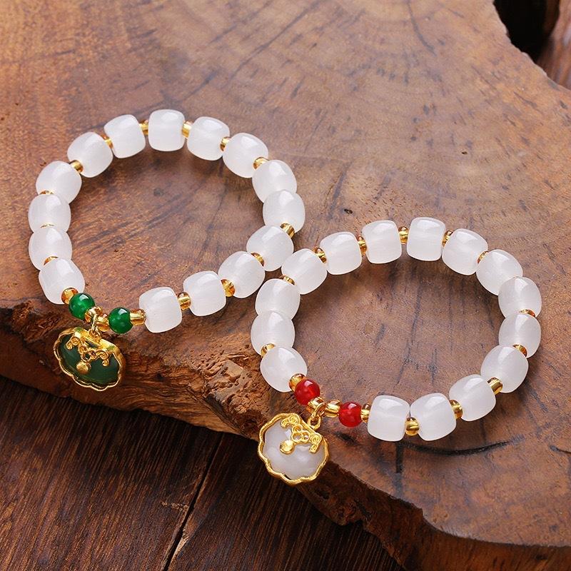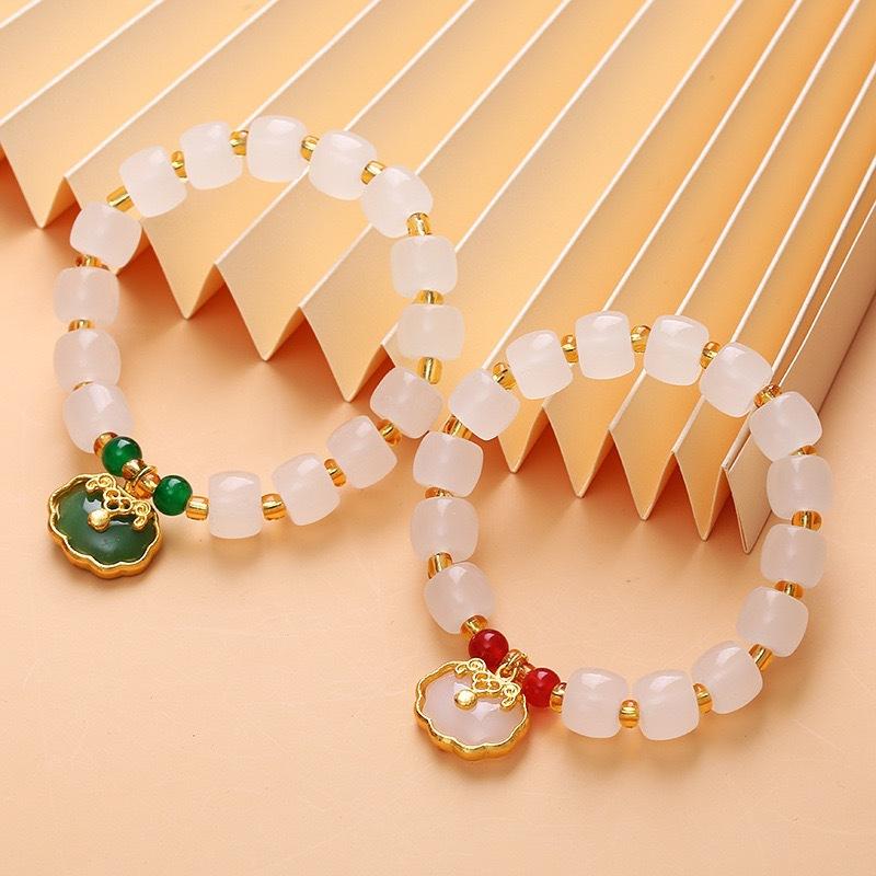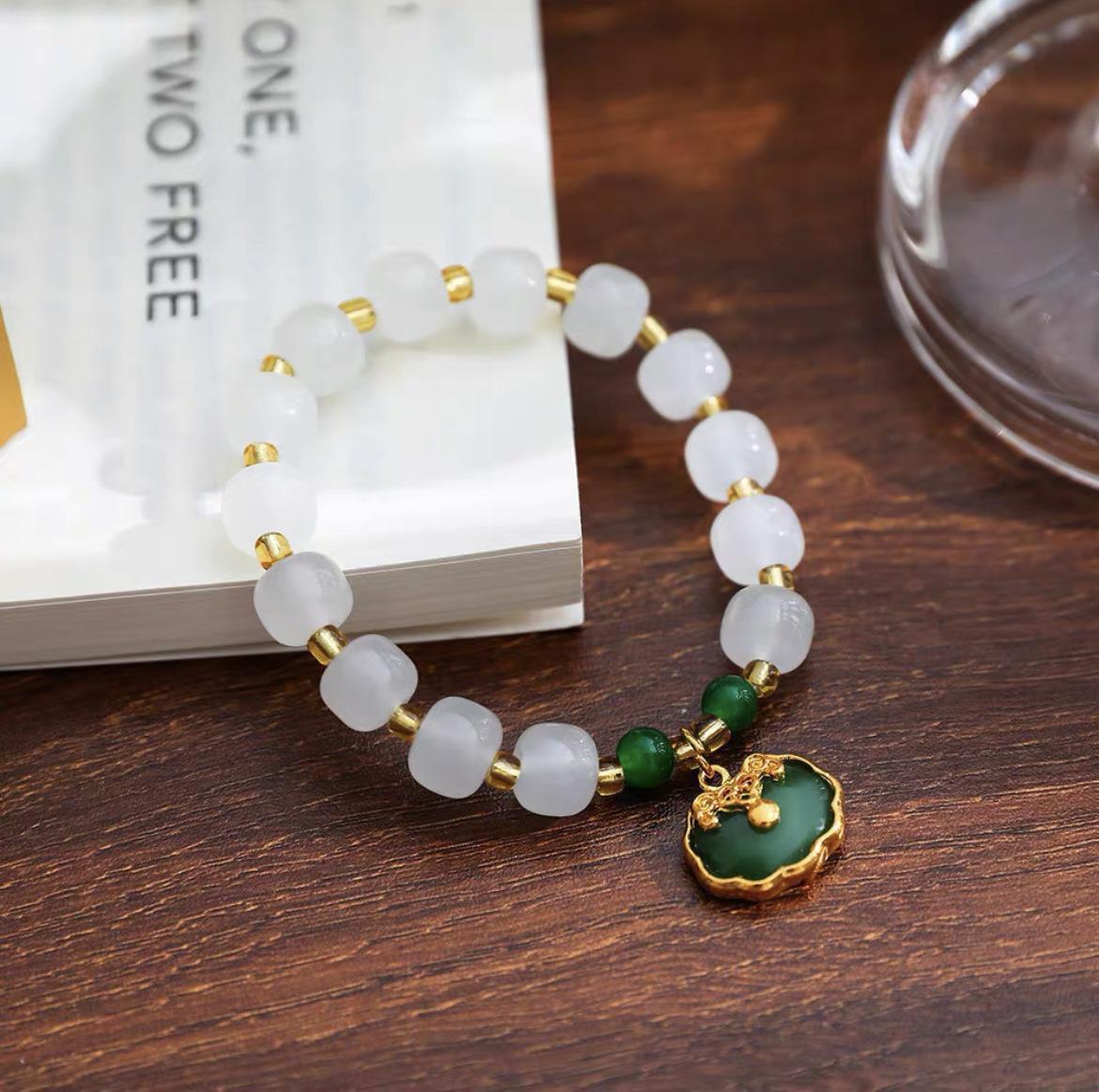 WW428 green longevity lock, WW428 White Pearl Lotus, WW428 white beads green Buddha, WW428 White Bead Ping An ...