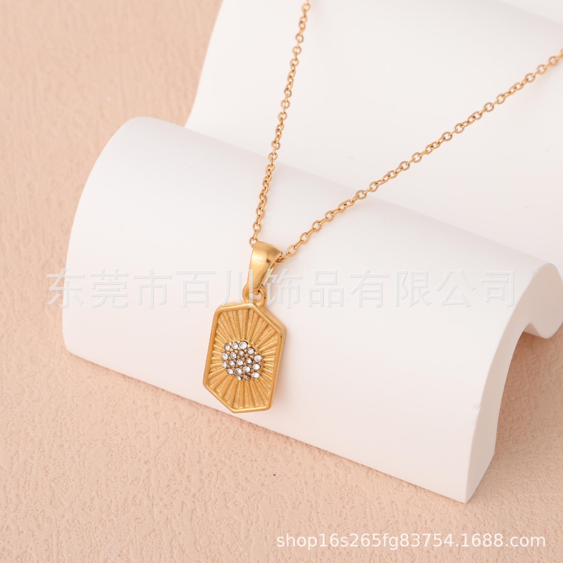Cadena de suéter con colgante cuadrado de circonita completa transfronteriza europea y americana, collar de acero inoxidable chapado en 18k, ligero y sencillo de lujo