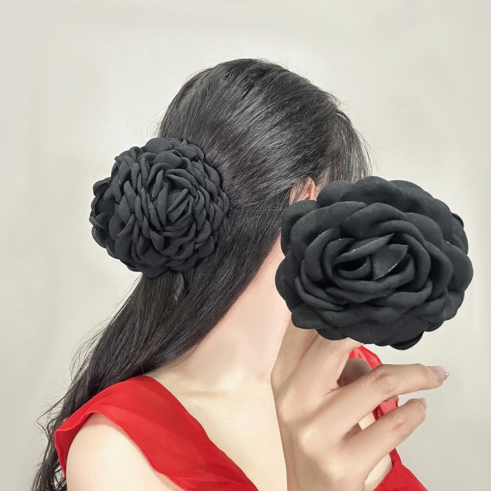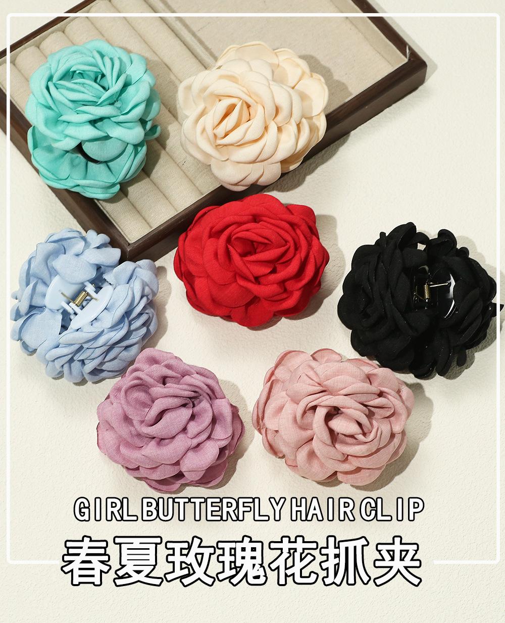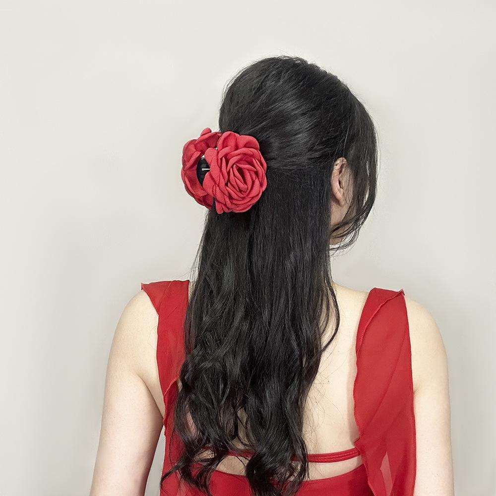 Accesorios para el cabello coreanos Clip de rosa grande Clip de pelo de flor estéreo de alta gama Parte posterior de la cabeza Clip de tiburón para el cabello Tocado