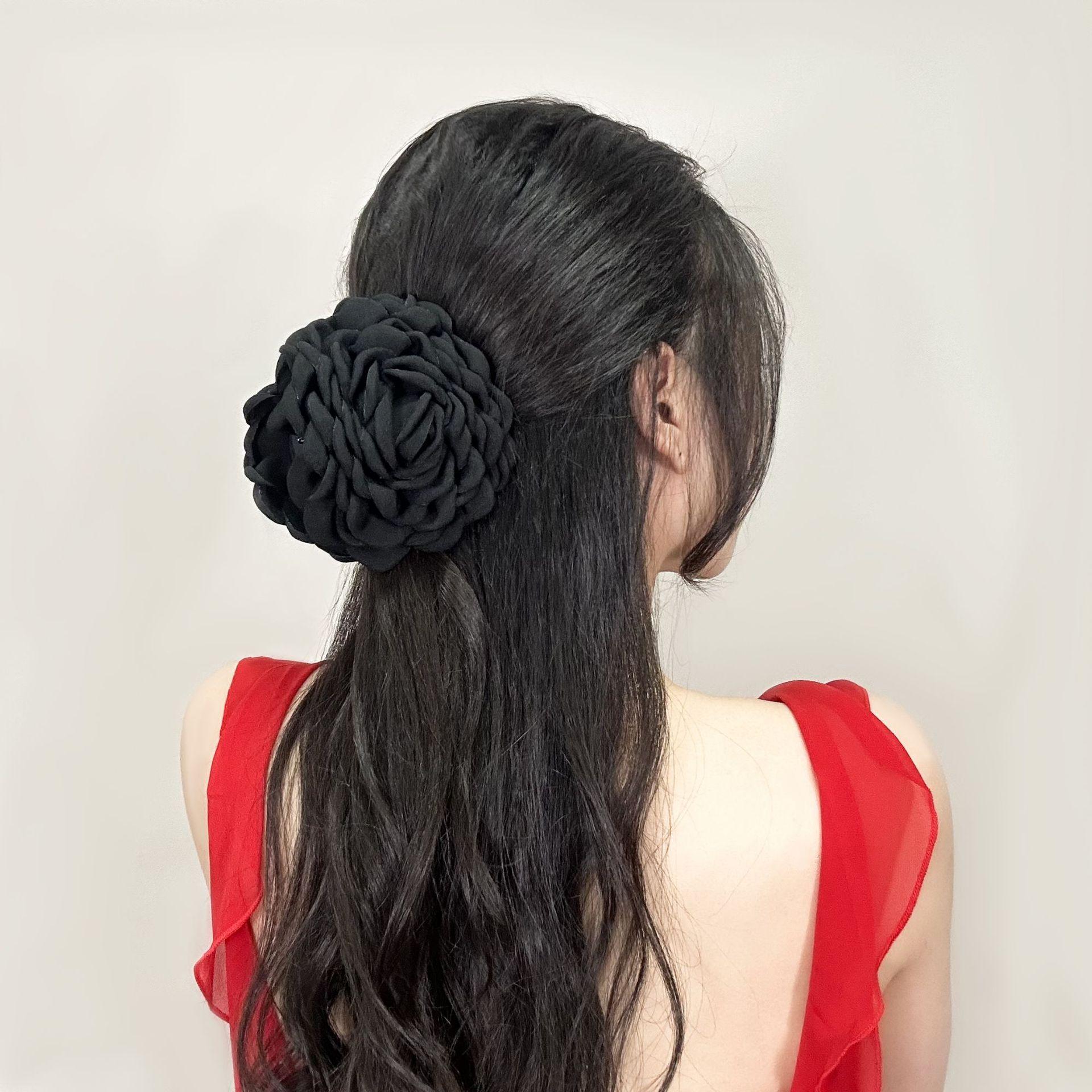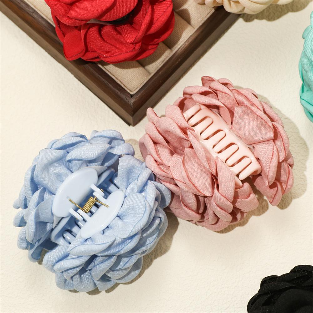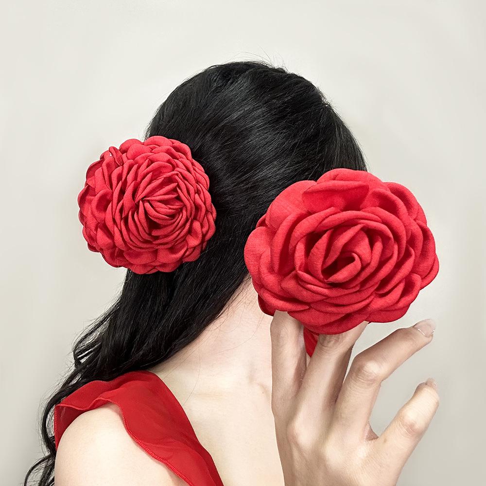 Accesorios para el cabello coreanos Clip de rosa grande Clip de pelo de flor estéreo de alta gama Parte posterior de la cabeza Clip de tiburón para el cabello Tocado