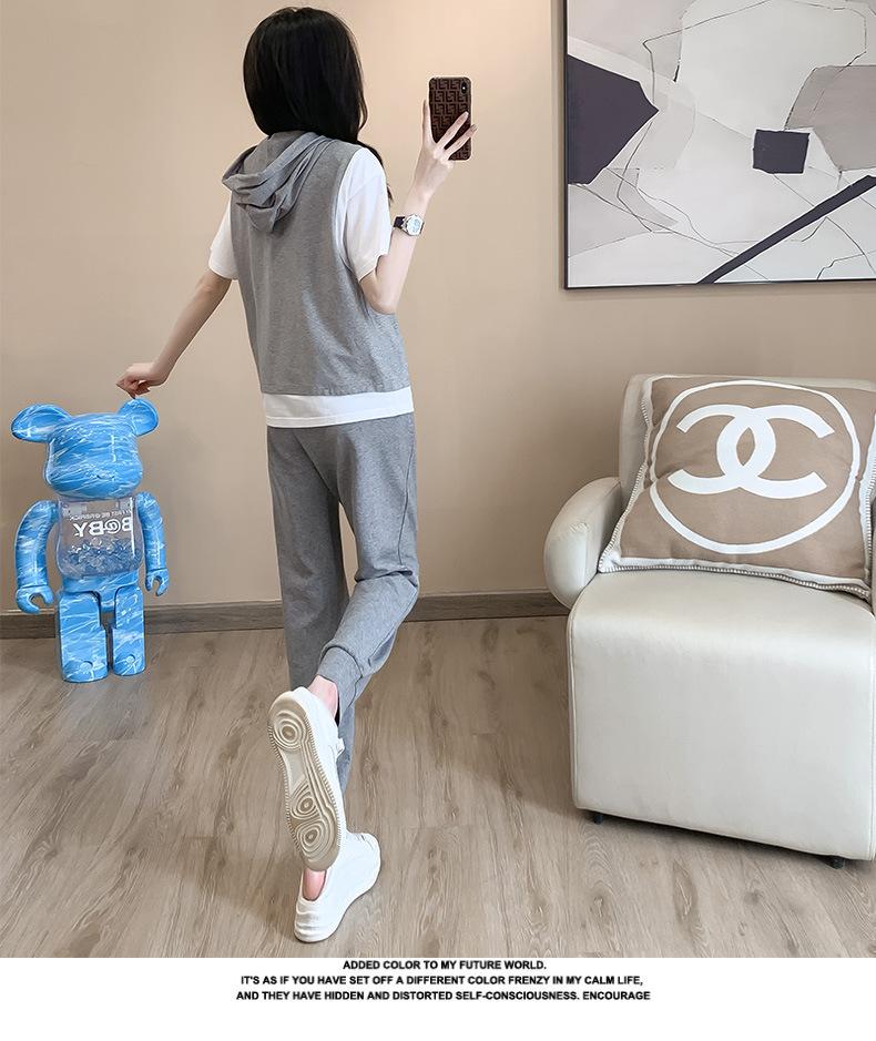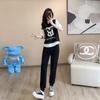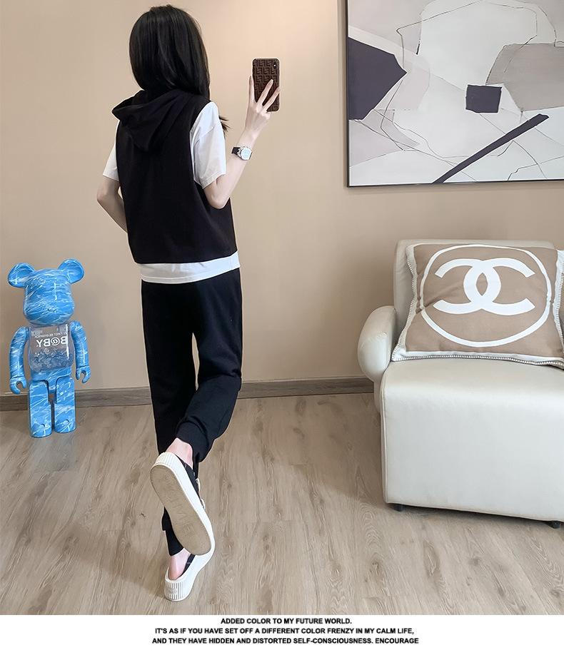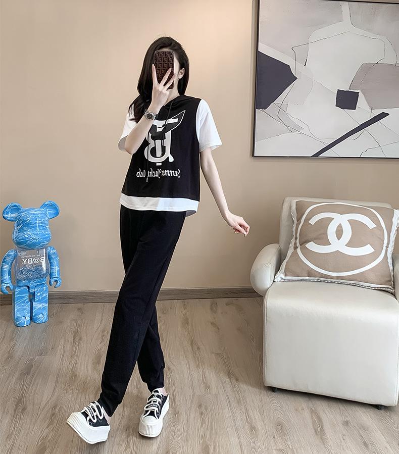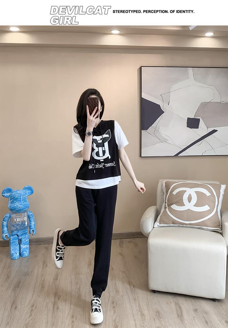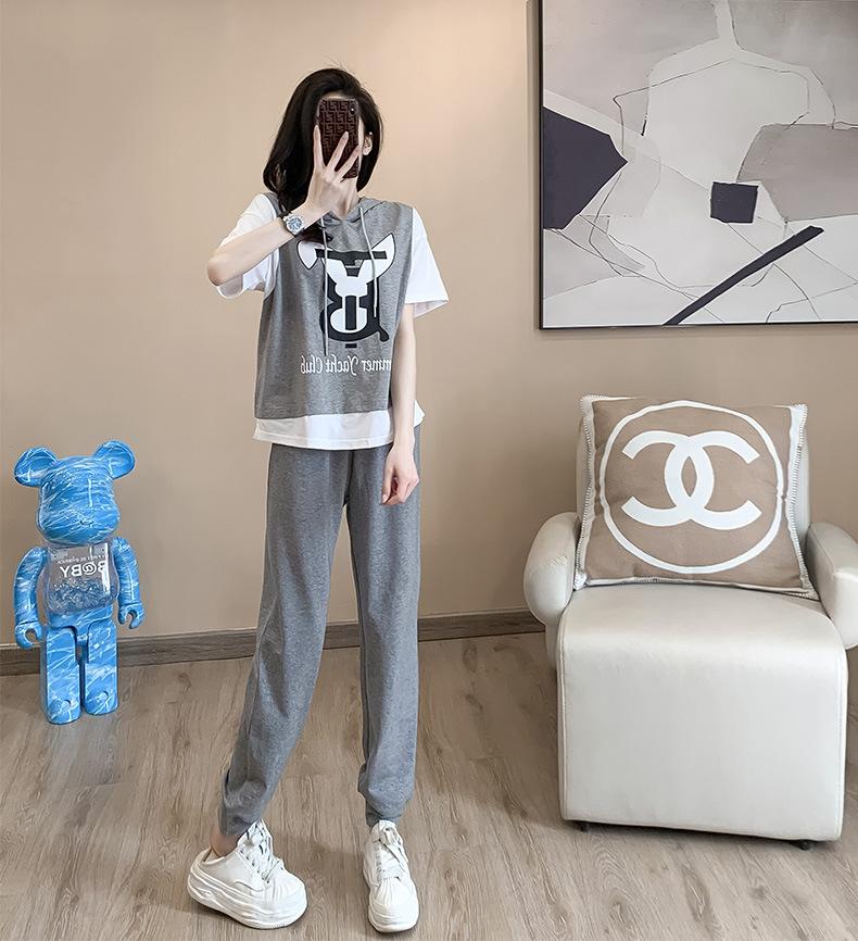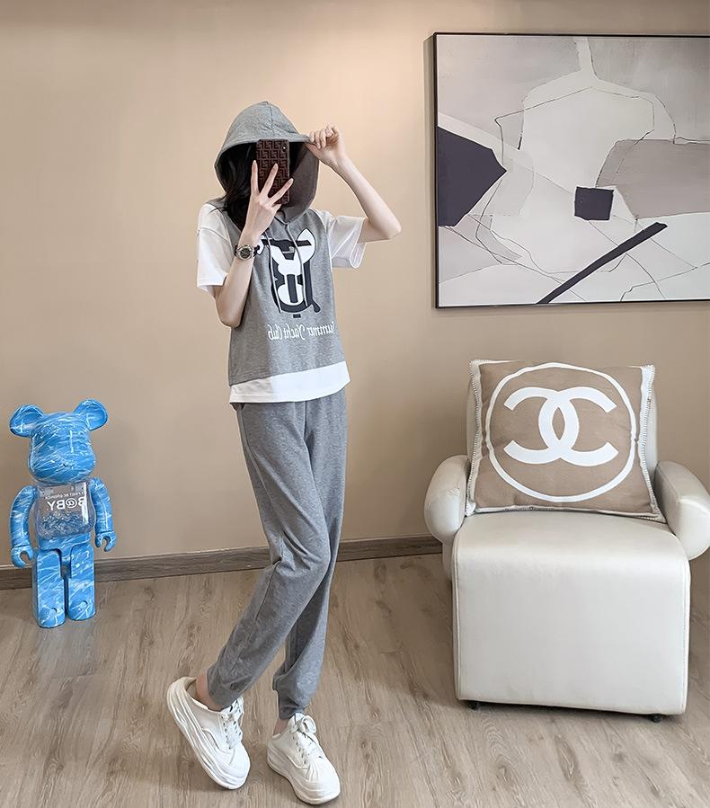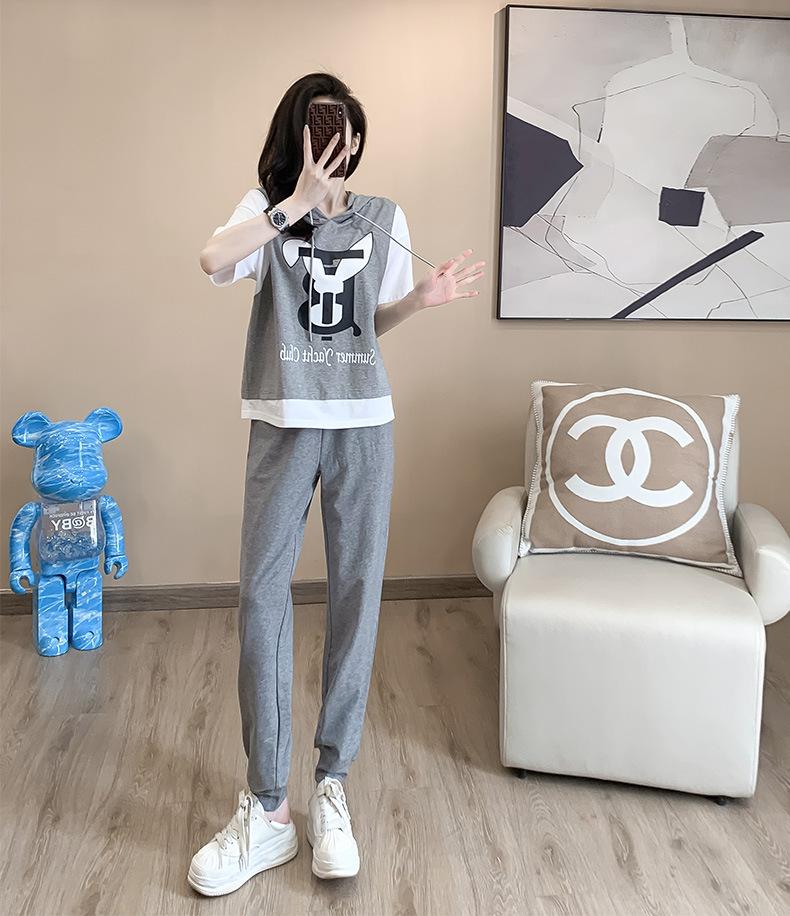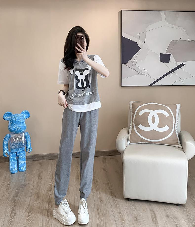 2025 Primavera y Verano Nueva Camiseta de Dos Piezas Falsas con Capucha para Mujer Año del Conejo TB Pantalones Tut Moda Casual Traje Deportivo para Mujer