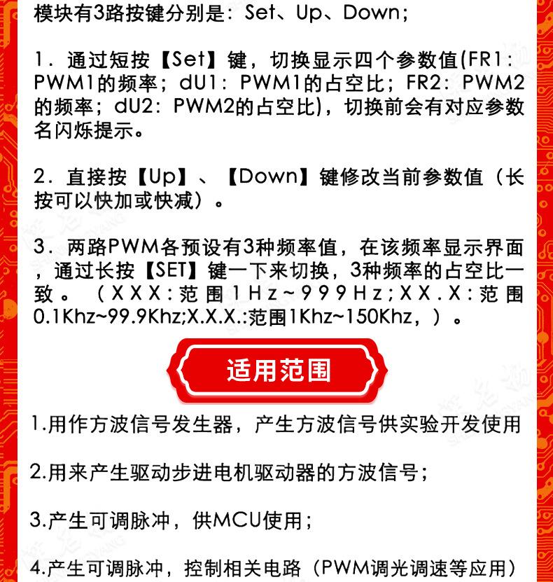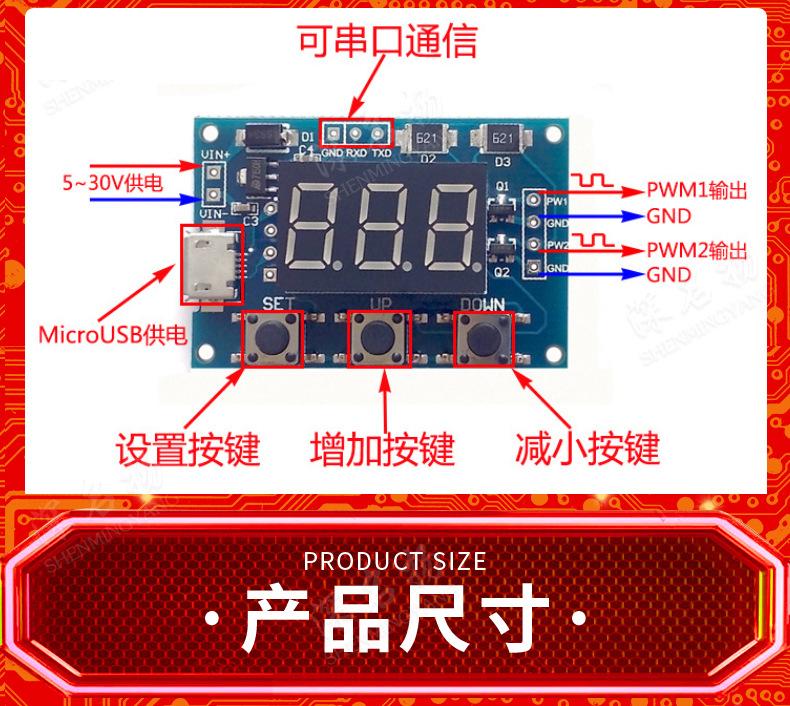 Módulo ajustable de ciclo de trabajo de frecuencia de pulso PWM de 2 vías, generador de señal de onda cuadrada y onda rectangular, controlador de motor paso a paso
