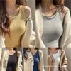 Chaleco de Lana de Hilo de Otoño e Invierno para Mujer con Cinturón, Copa Integrada con Almohadilla de Pecho, Camiseta Interior Base, Ropa Exterior, Tirantes, Color Sólido, Top Cálido