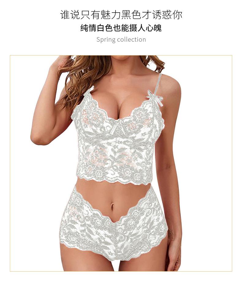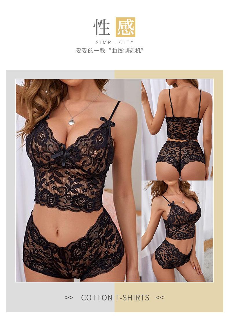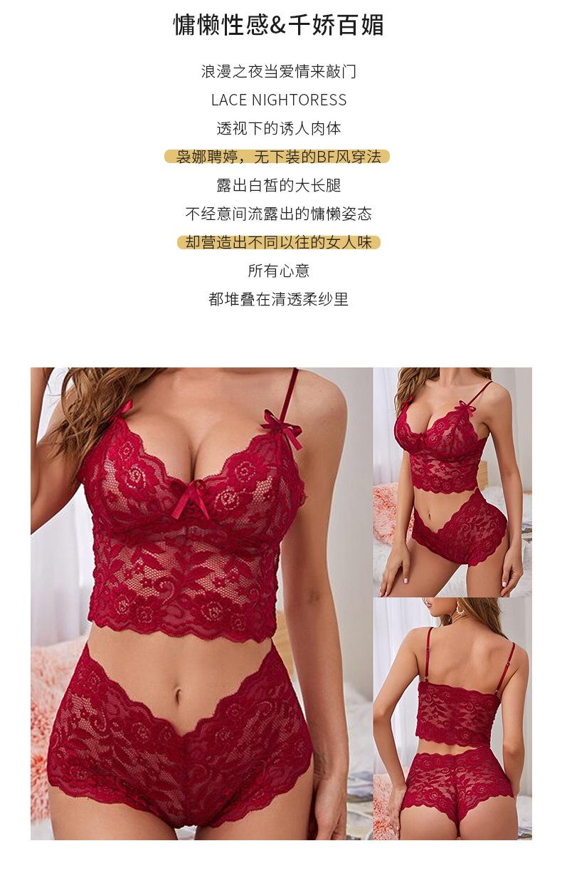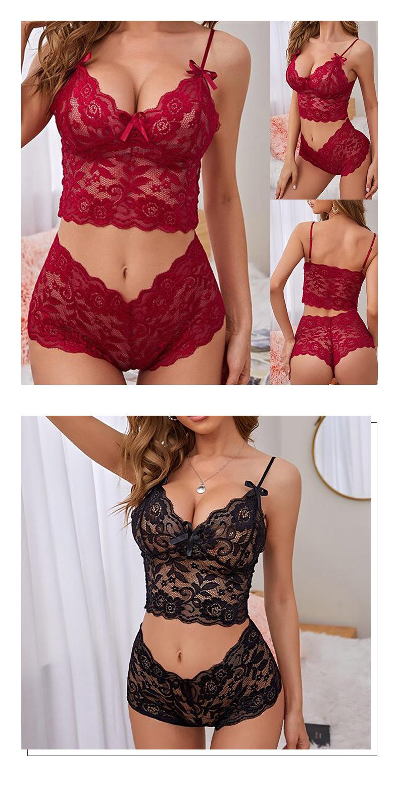 Lencería Sexy, Liguero Sexy de Encaje Transparente, Traje de Tres Puntos Envolvente de Pecho Ajustable, Encantador Traje Sexy