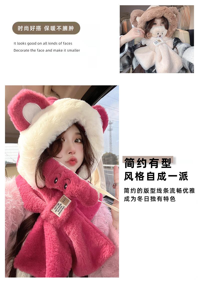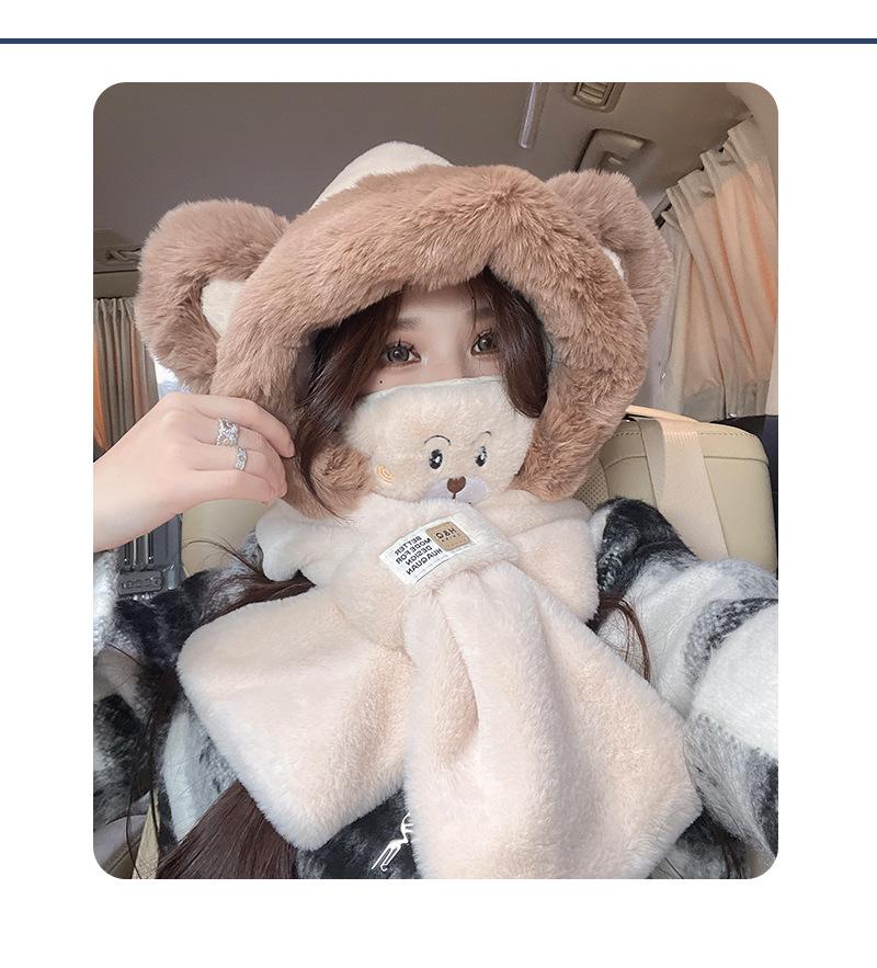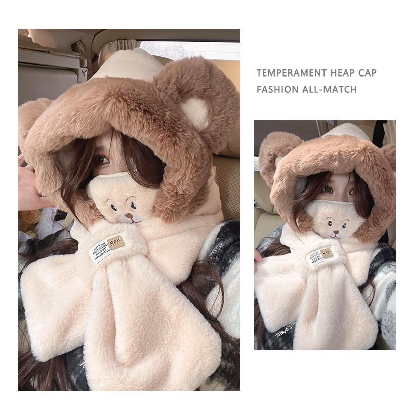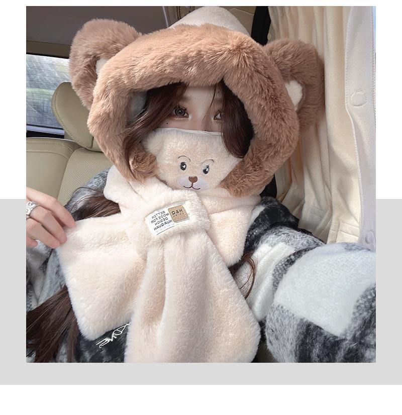 Otoño e invierno nuevo sombrero bufanda máscara felpa cálido sombrero femenino lindo oso cálido sombrero de tres piezas bufanda