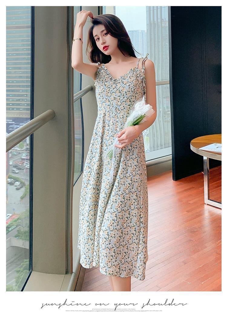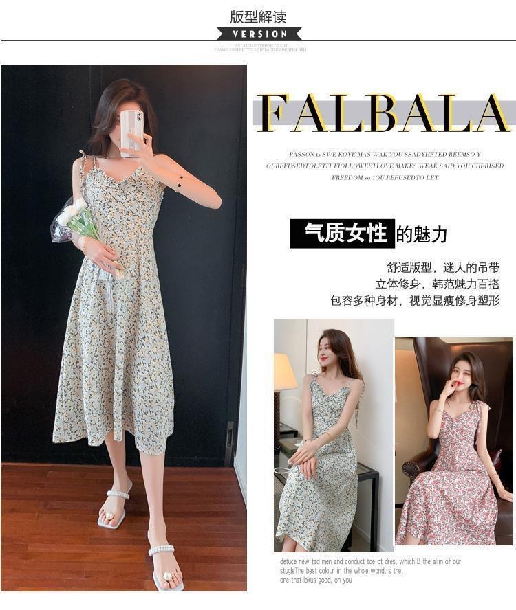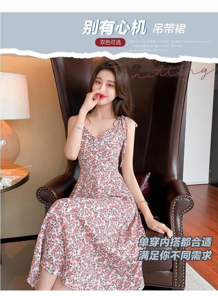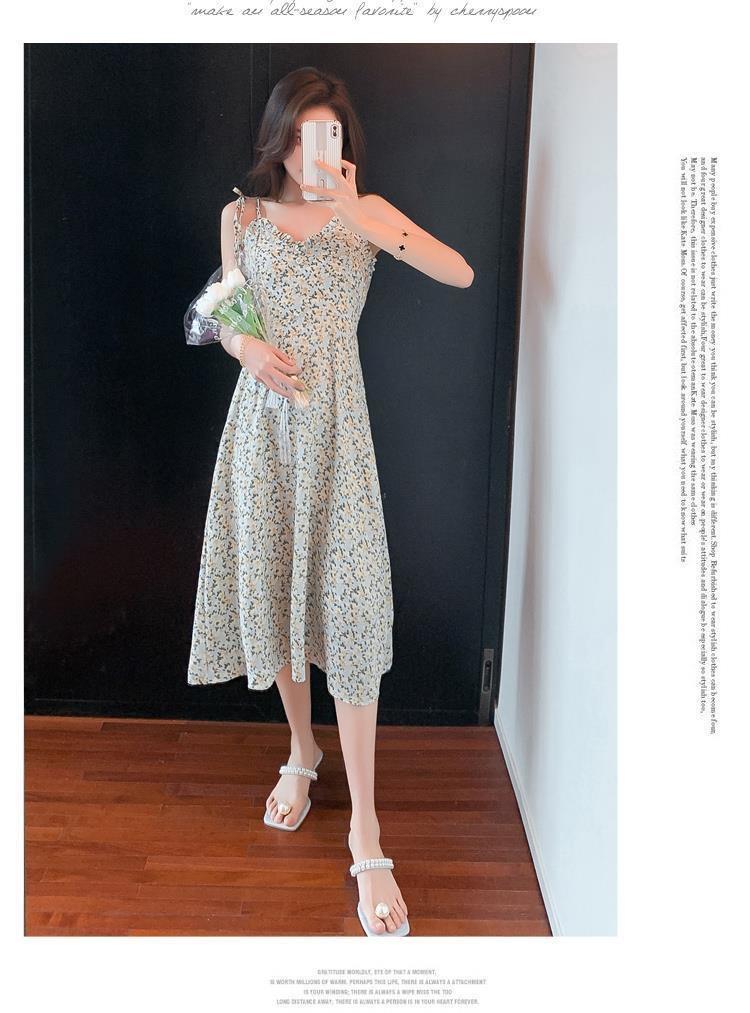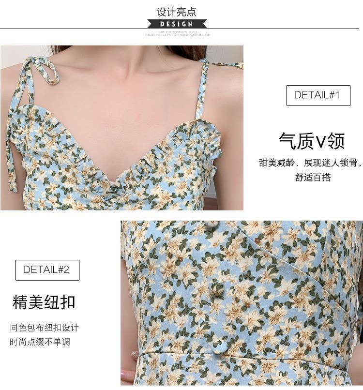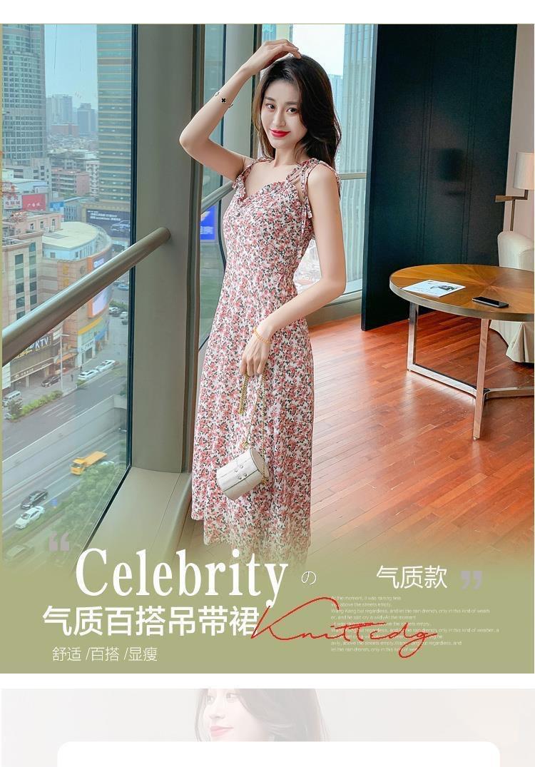 Vestido de mujer 2024 Verano nuevo floral chifón largo medio tirantes elegante estilo suave falda retro para la hora del té para mujer