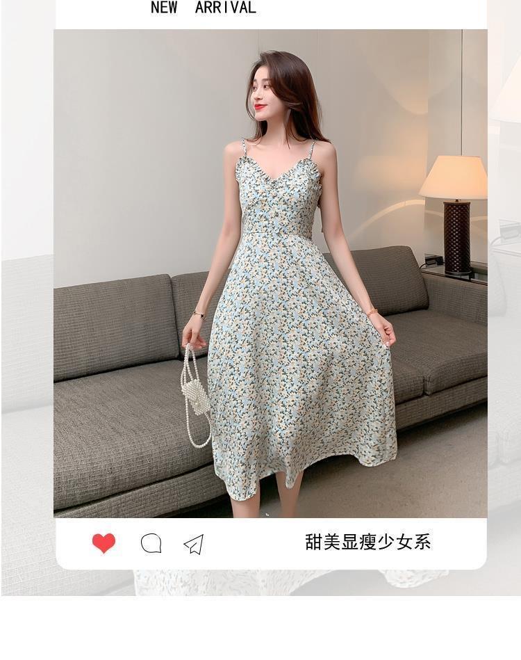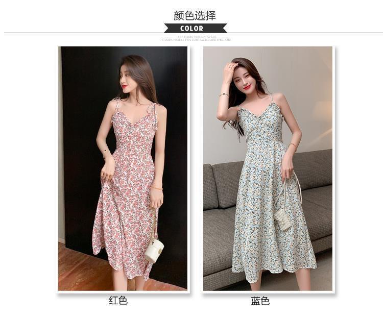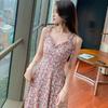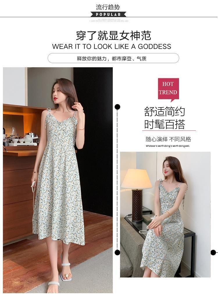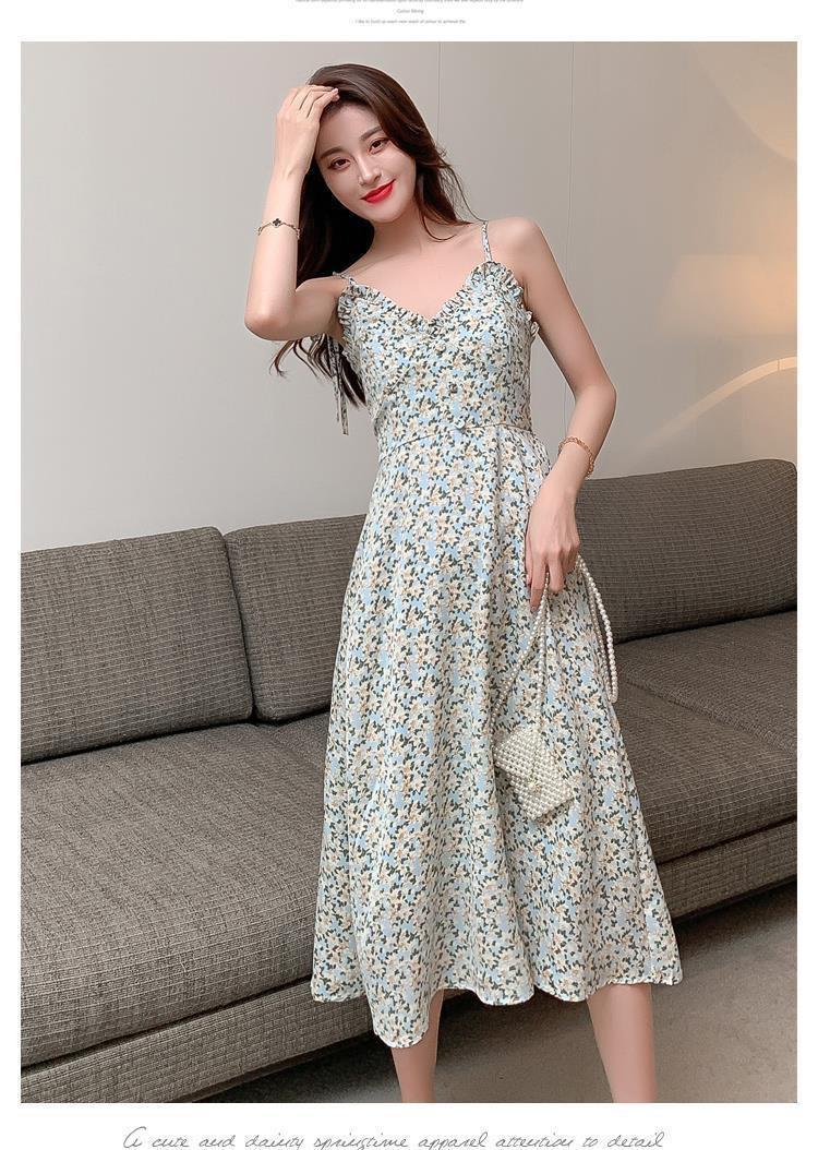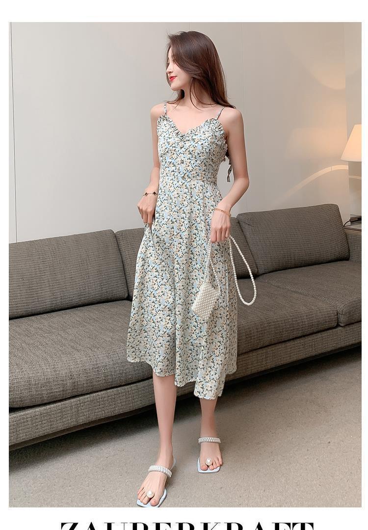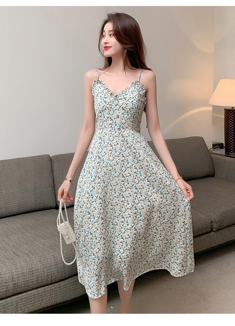 Vestido de mujer 2024 Verano nuevo floral chifón largo medio tirantes elegante estilo suave falda retro para la hora del té para mujer