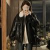 Abrigo de cuero para mujer 2024, nueva y popular chaqueta negra corta de motocicleta para otoño e invierno para hombres y mujeres pequeños.