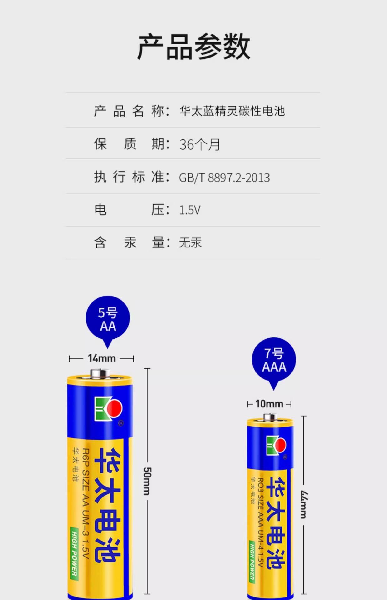 Huatai Batería de Carbono Juguete Control Remoto Gran Capacidad Libre de Mercurio No. 5 No. 7 Batería Seca Huatai