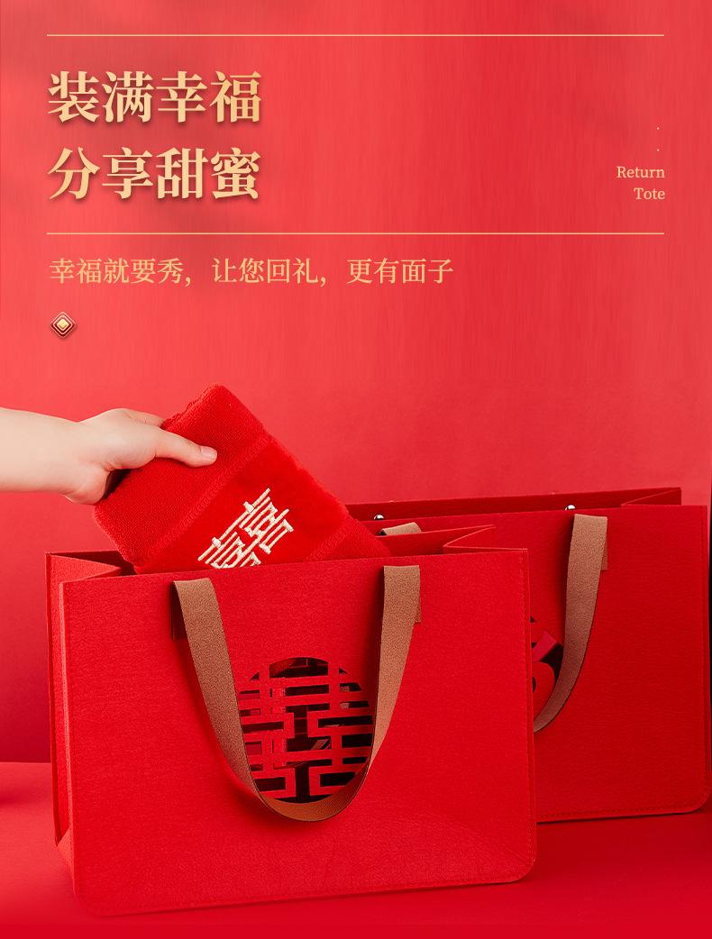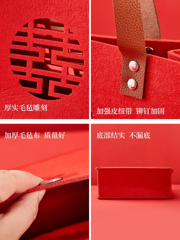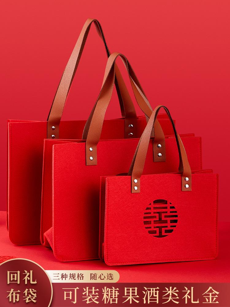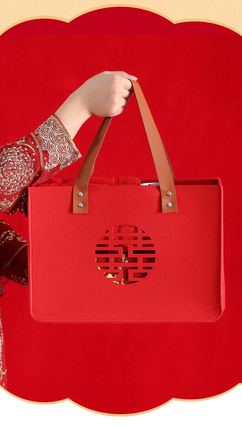 Boda Boda Bolso de Fieltro Hecho a Mano Bolsa de Regalo Acompañante de Dama de Honor Regalo de Compromiso Chino Bolsa de Regalo de Fieltro Rojo