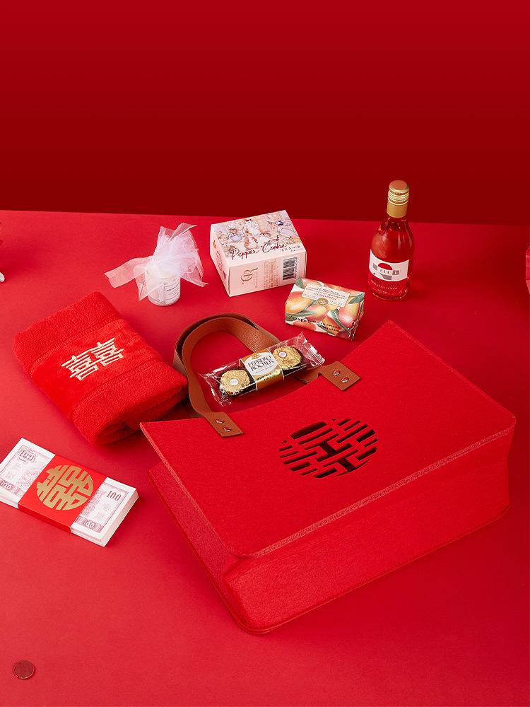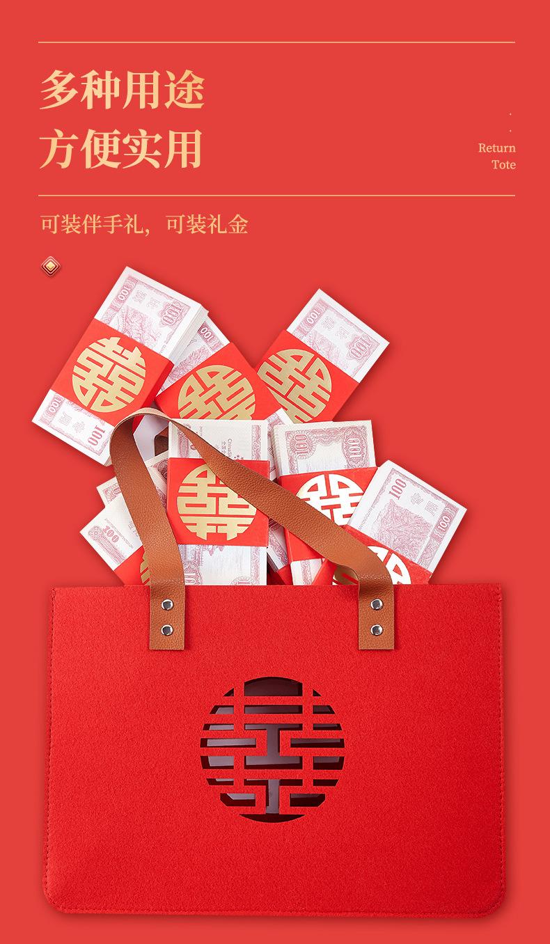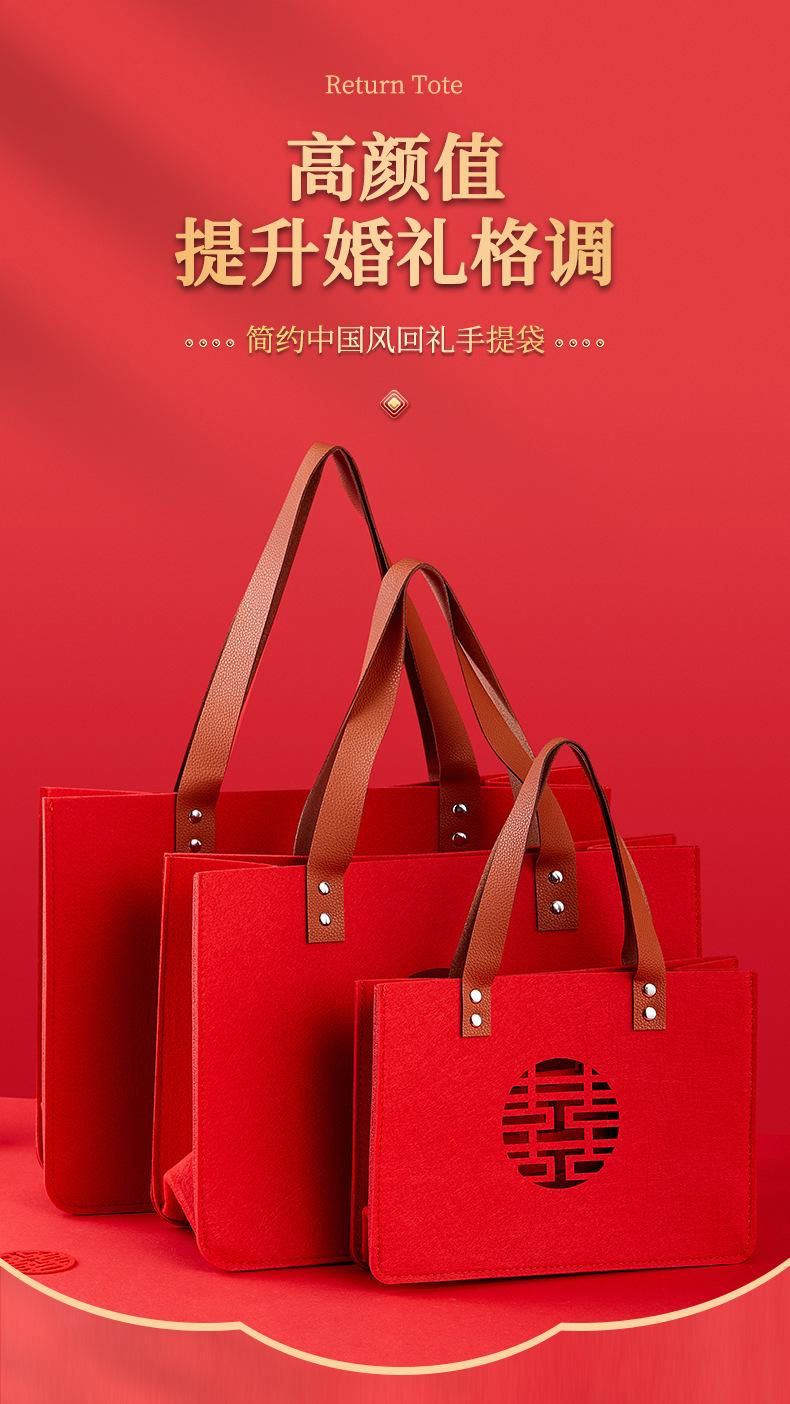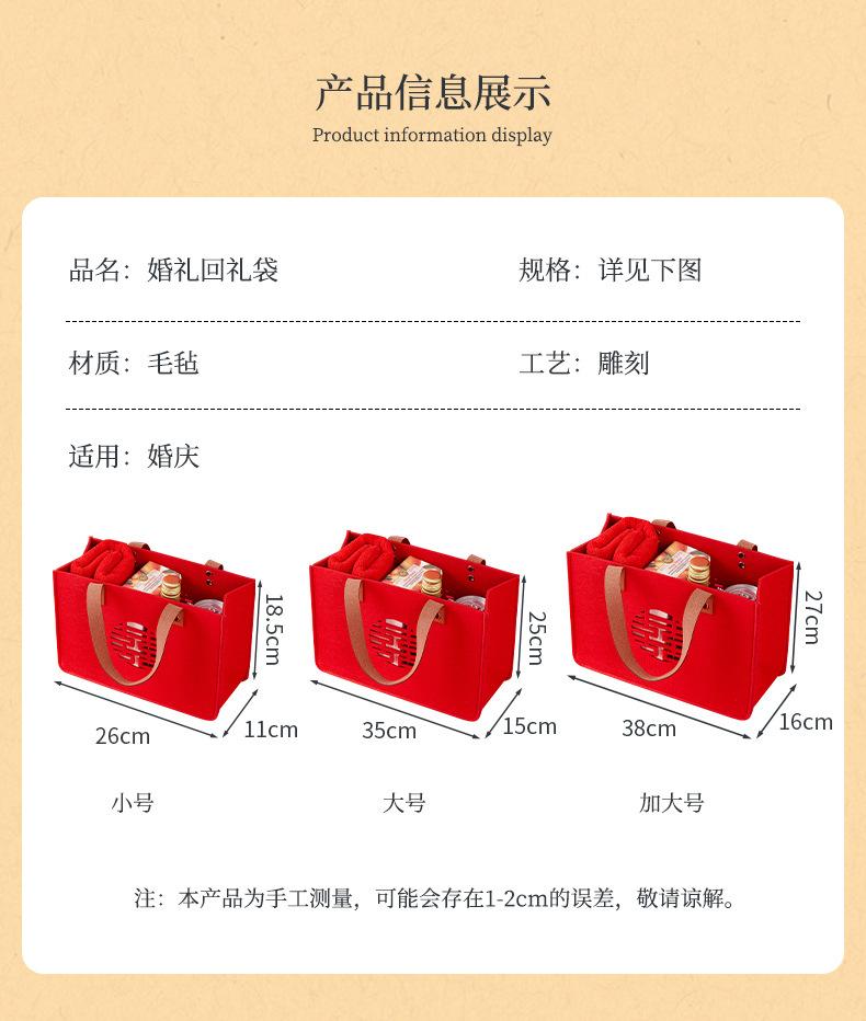 Boda Boda Bolso de Fieltro Hecho a Mano Bolsa de Regalo Acompañante de Dama de Honor Regalo de Compromiso Chino Bolsa de Regalo de Fieltro Rojo