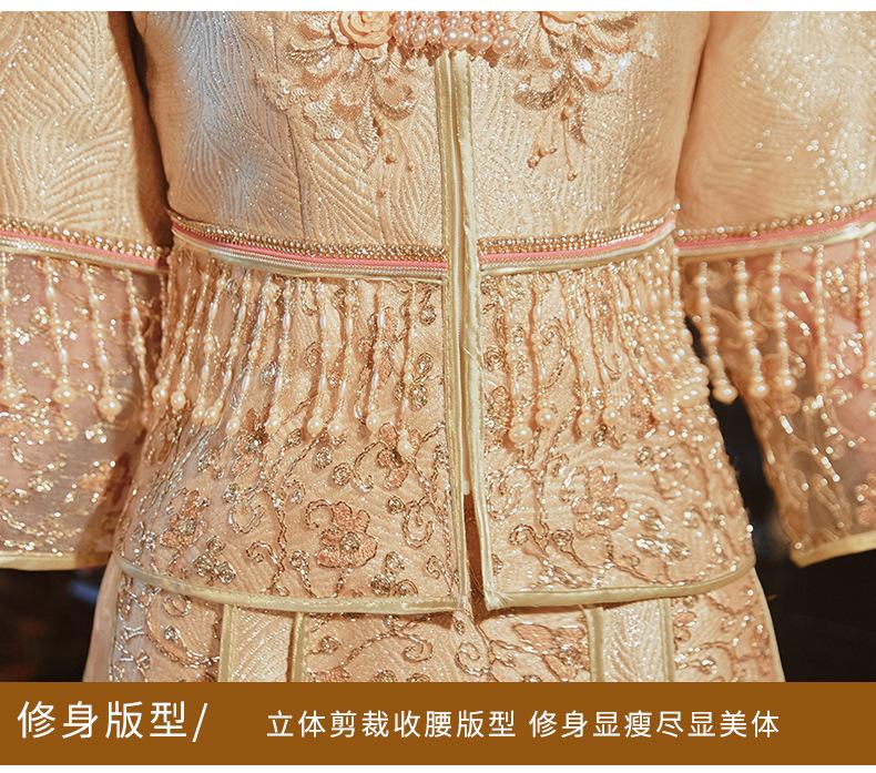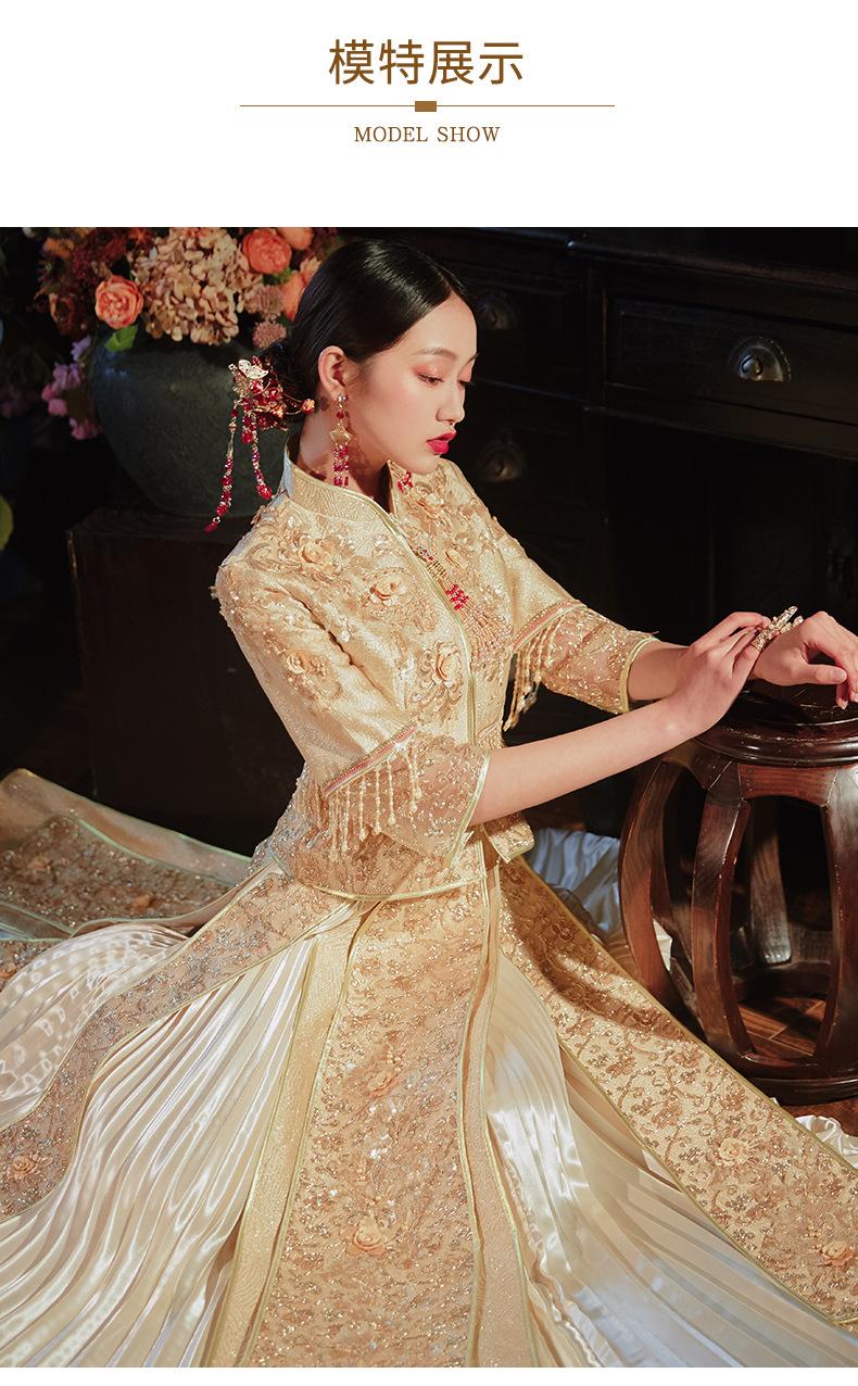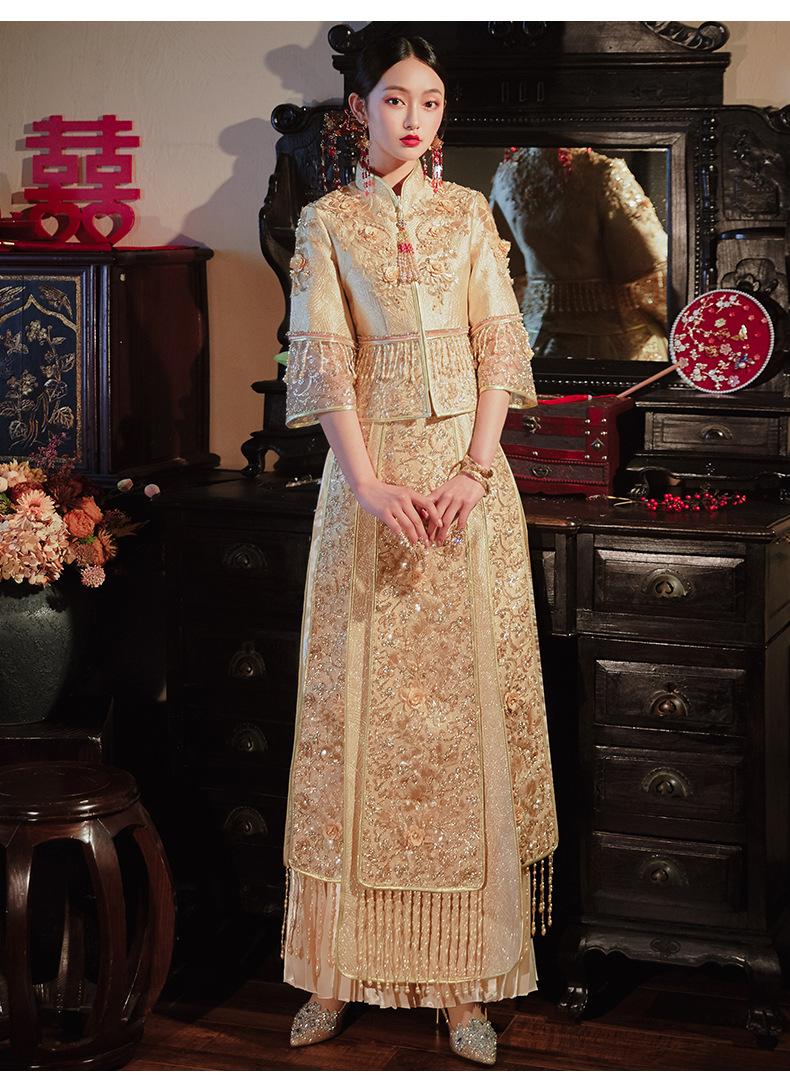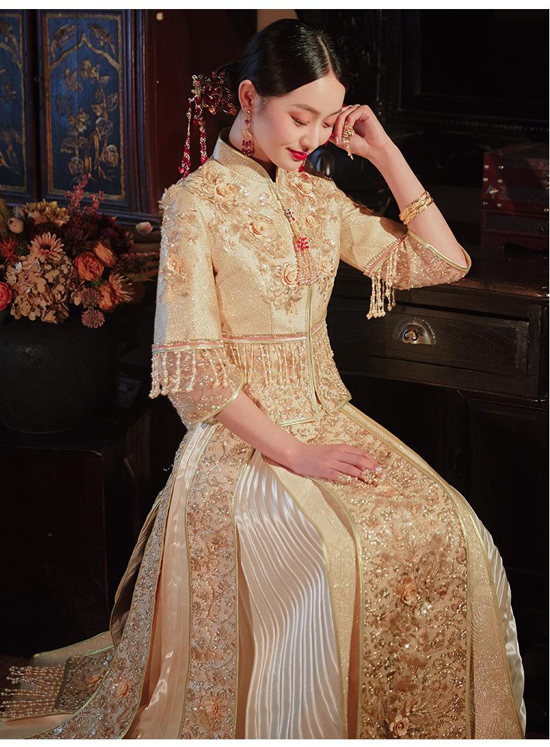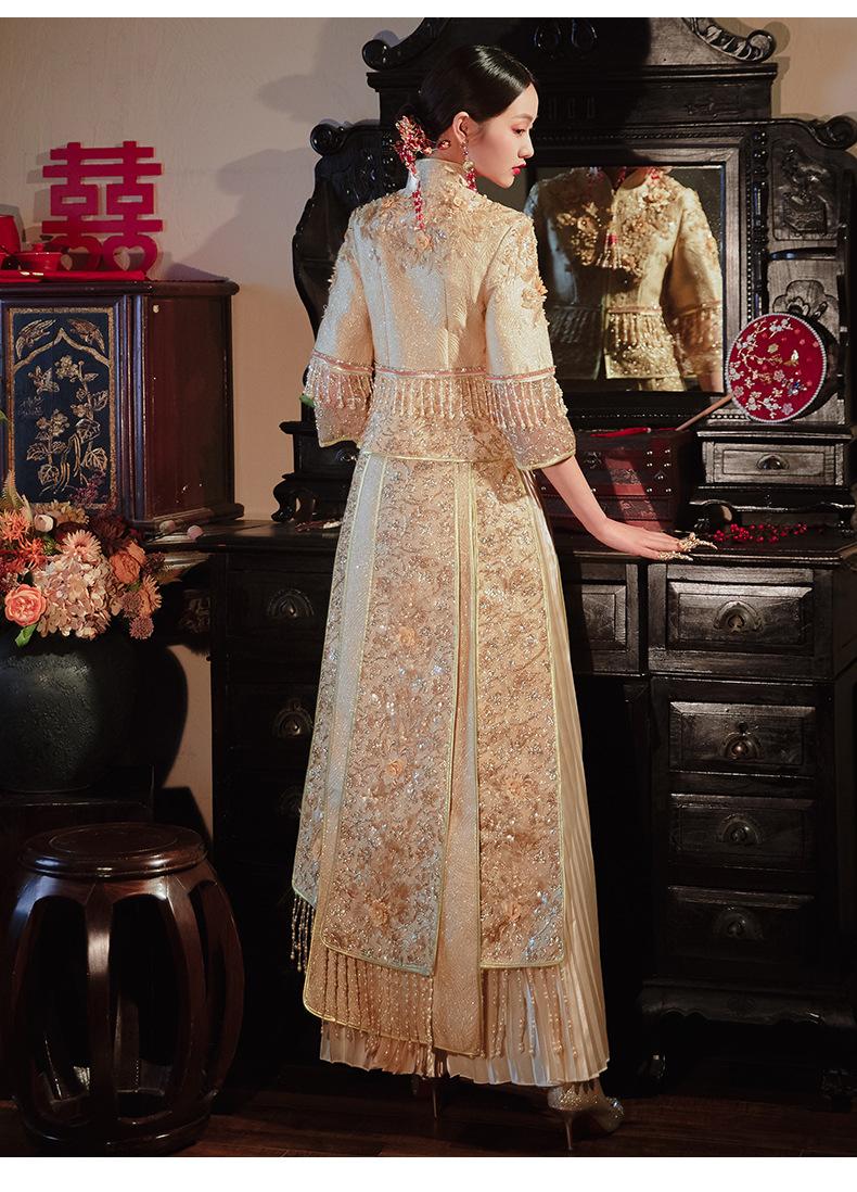 Vestido Xiuhe Color Champaña Novia Femenina 2020 Nuevo Vestido de Boda Chino Show Kimono Boda Dorada Xiuhe Talla Grande Vestido de Boda