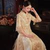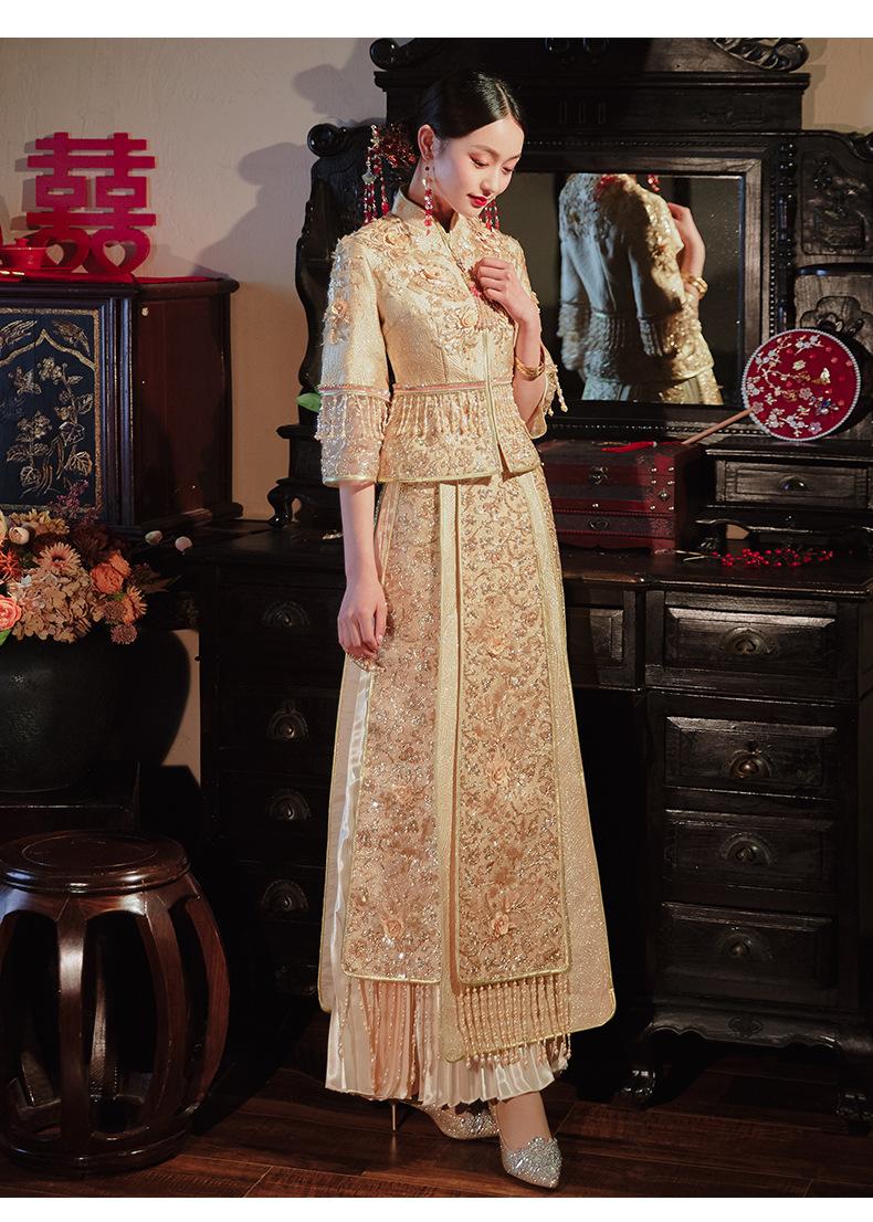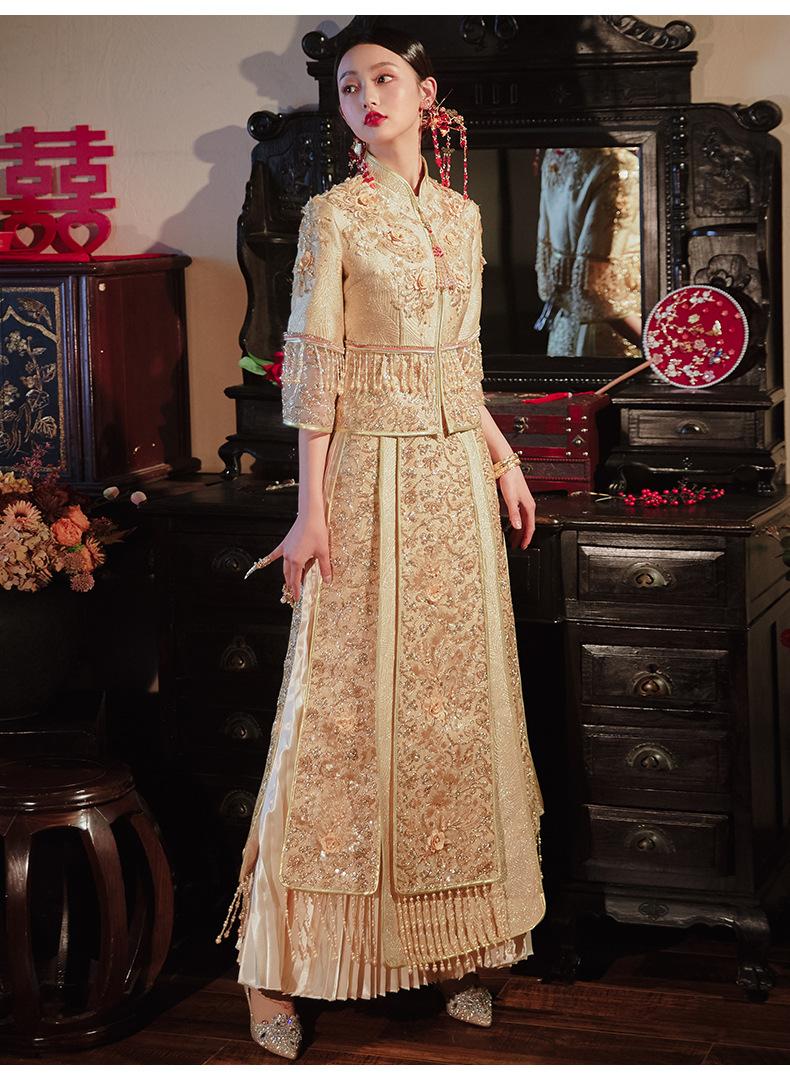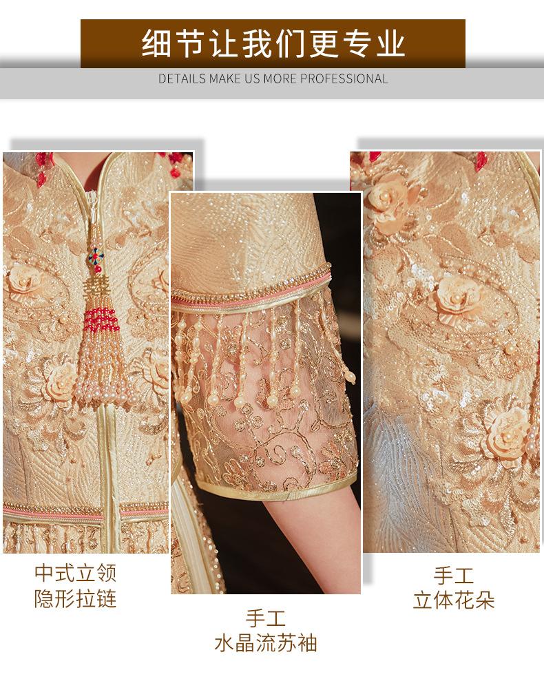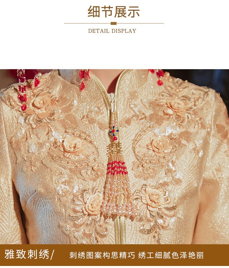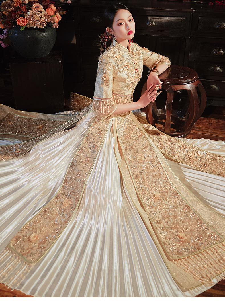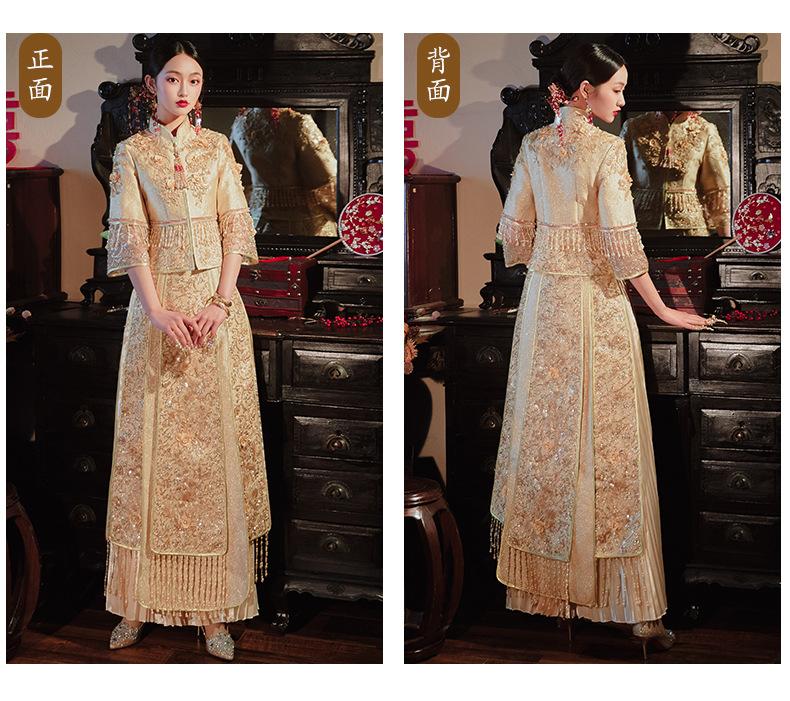 Vestido Xiuhe Color Champaña Novia Femenina 2020 Nuevo Vestido de Boda Chino Show Kimono Boda Dorada Xiuhe Talla Grande Vestido de Boda