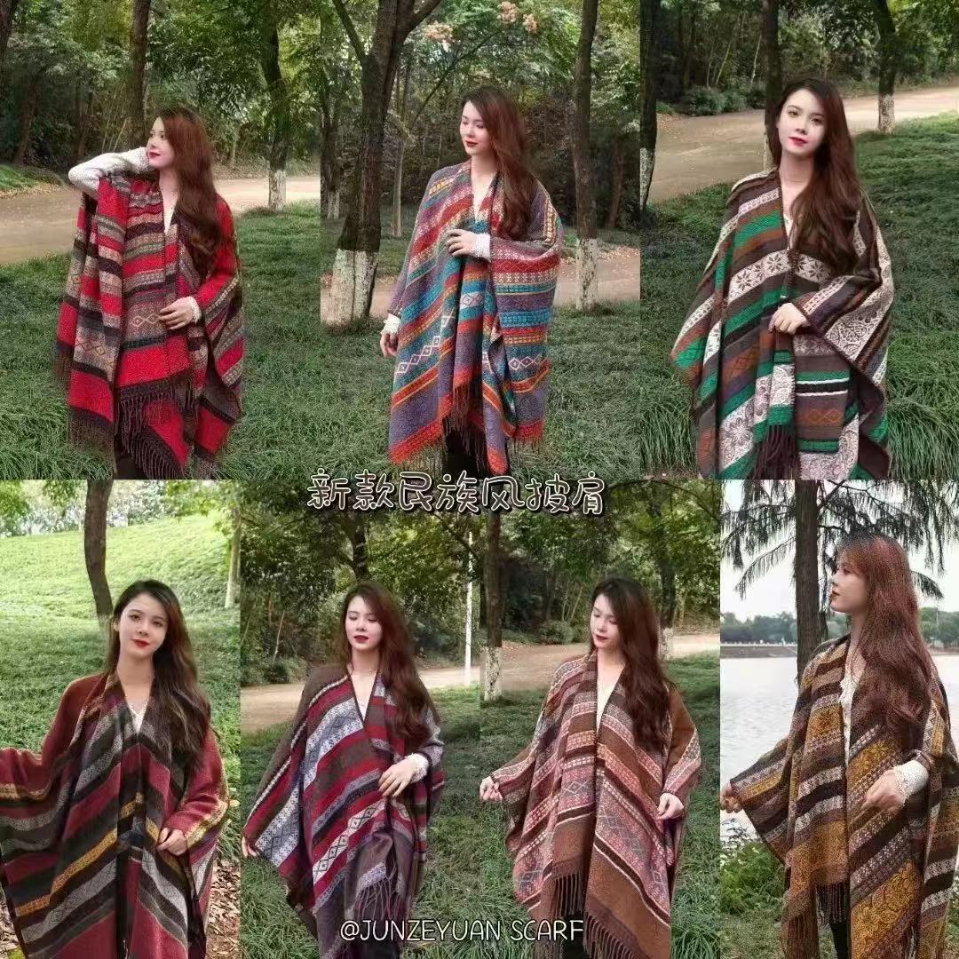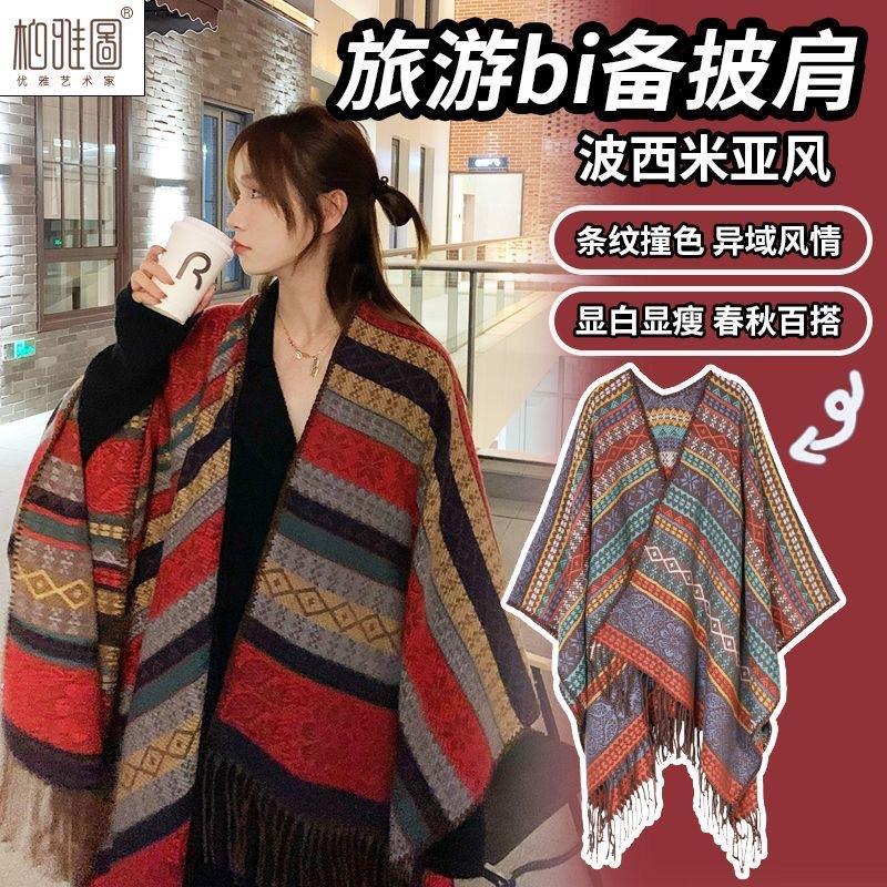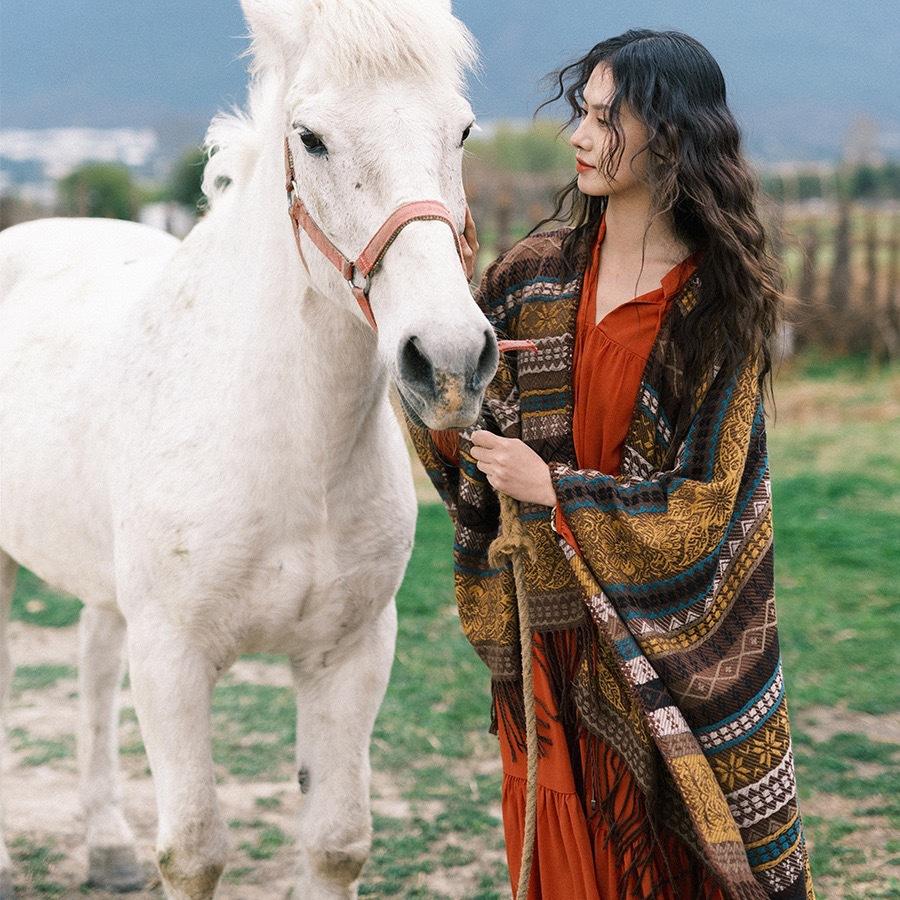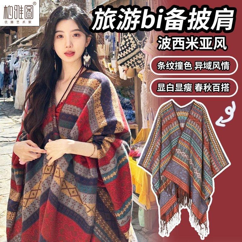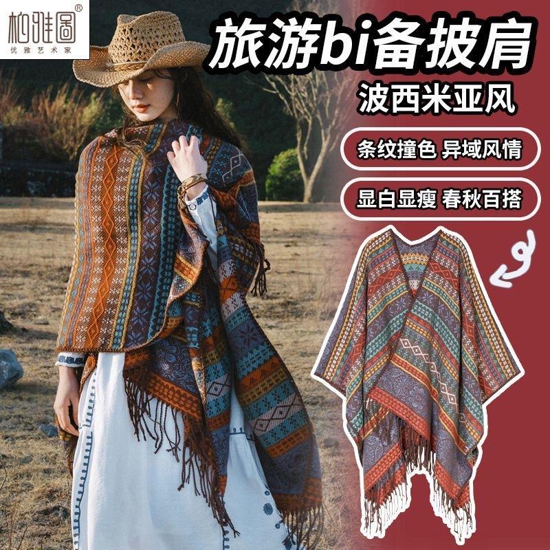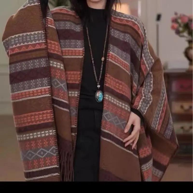 Otoño 2023 nuevo chal de estilo étnico bohemio Xizang Yunnan Qinghai fotografía de viaje ropa exterior capa