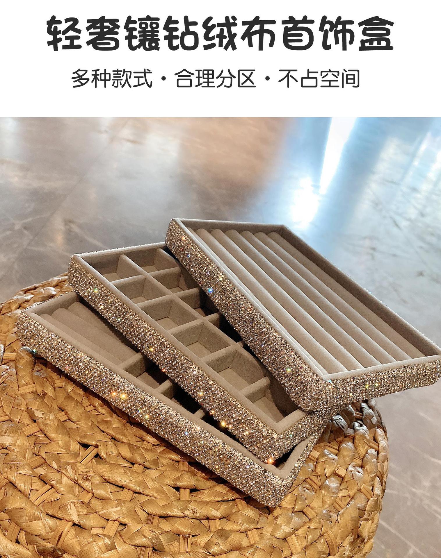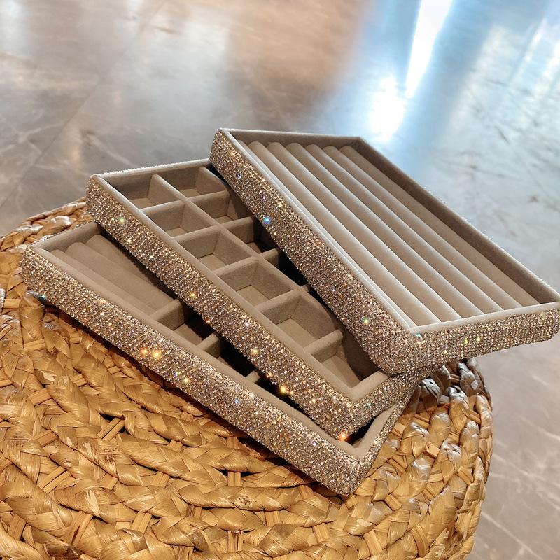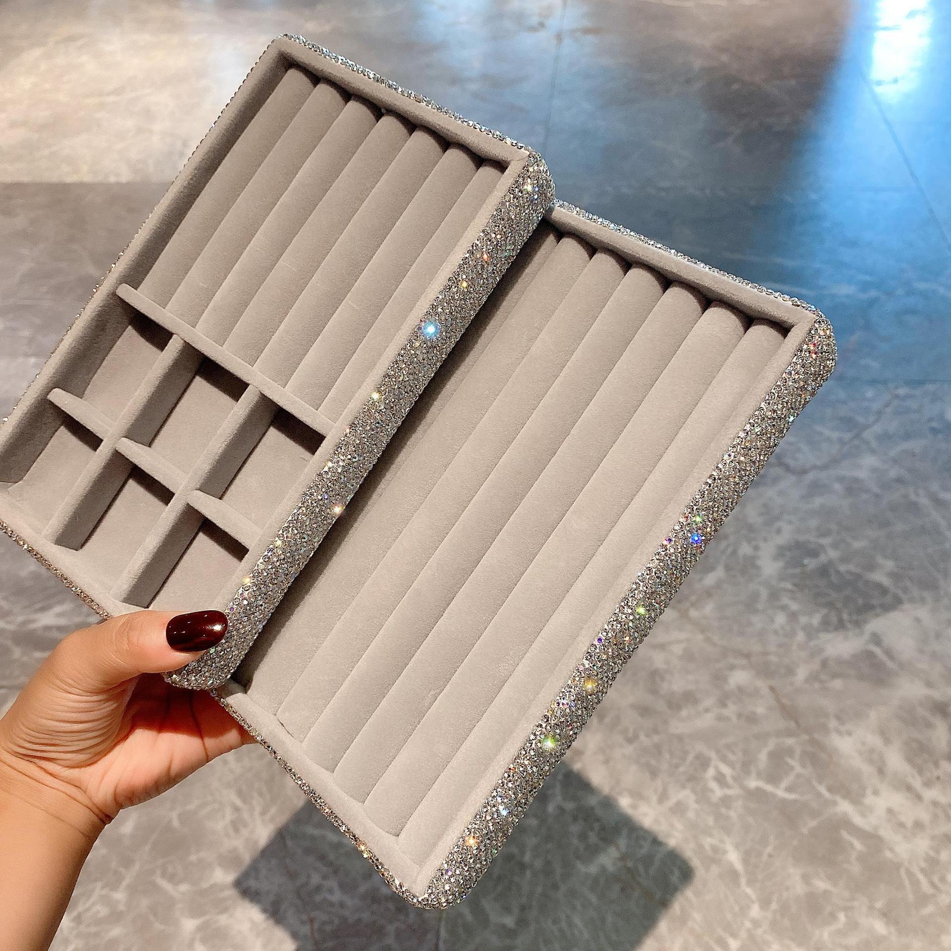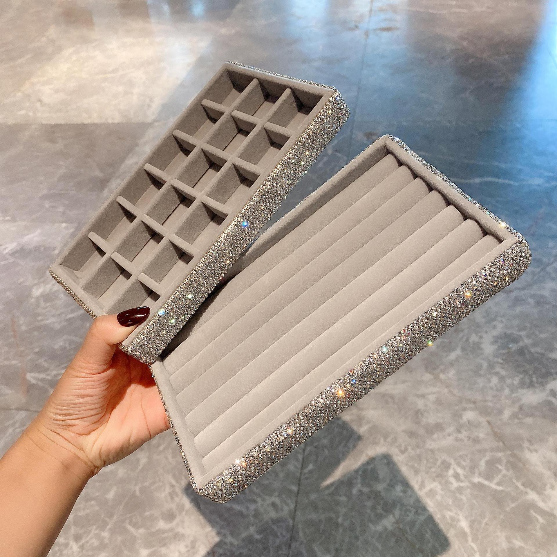 Joyero de lujo ligero, caja de almacenamiento para pendientes, collares y diamantes para el hogar, caja de exhibición de joyas de escritorio con rejilla de gran capacidad