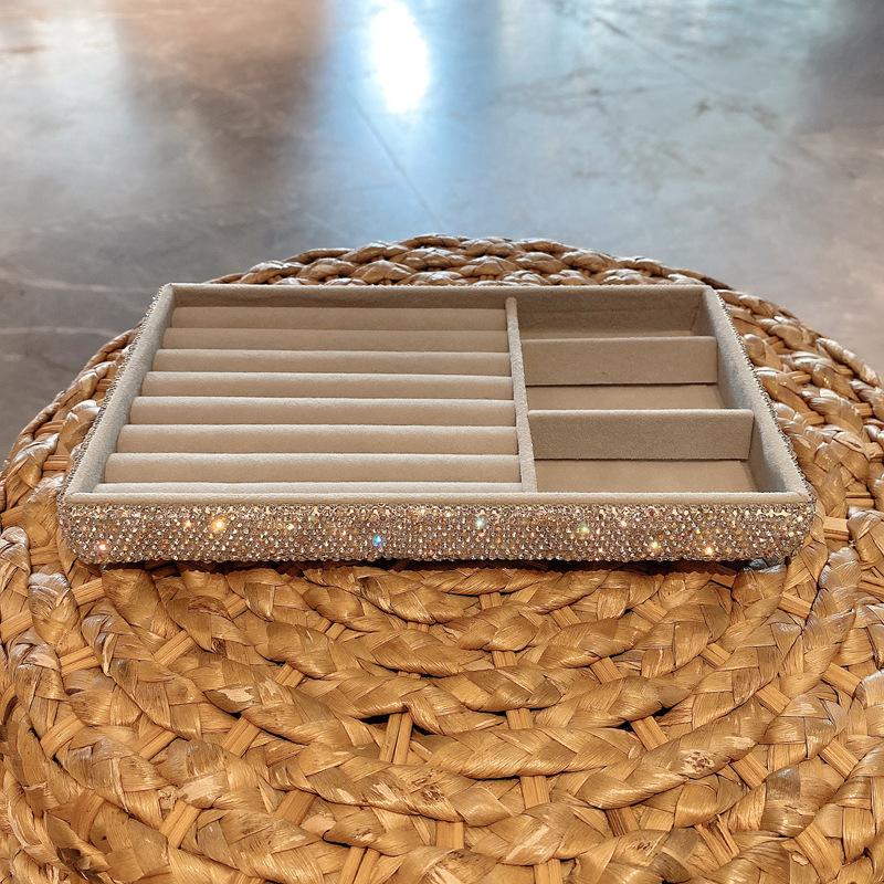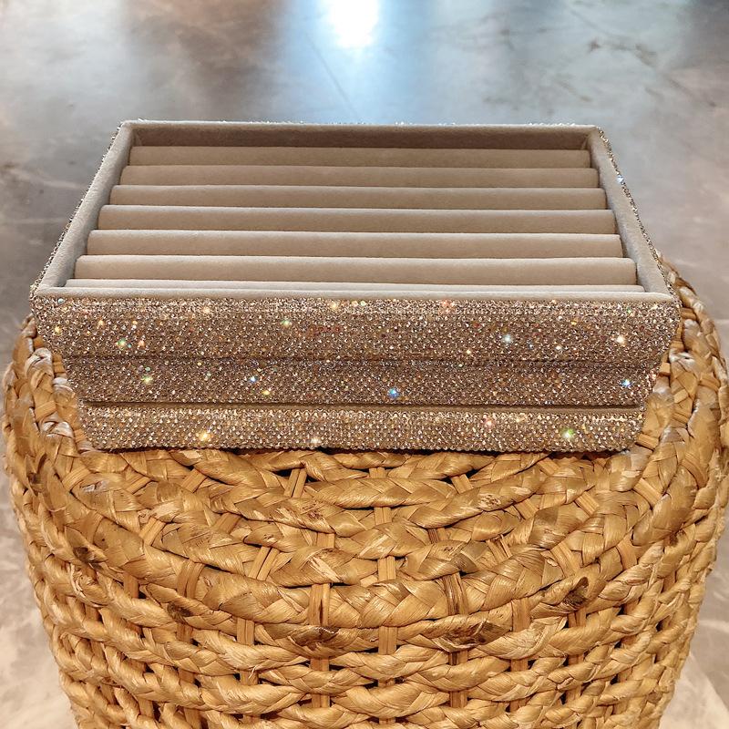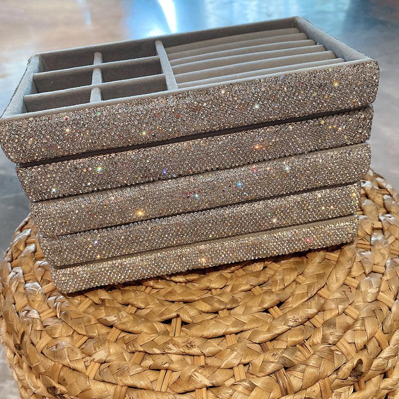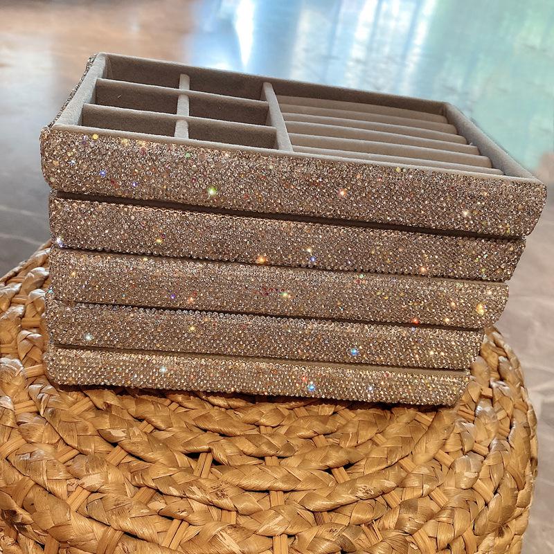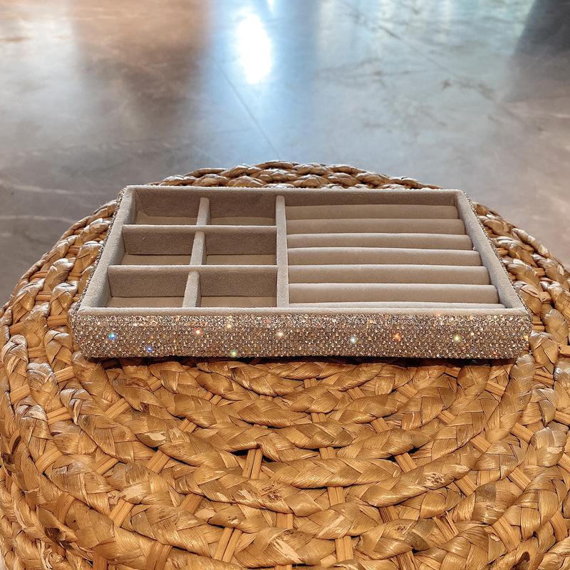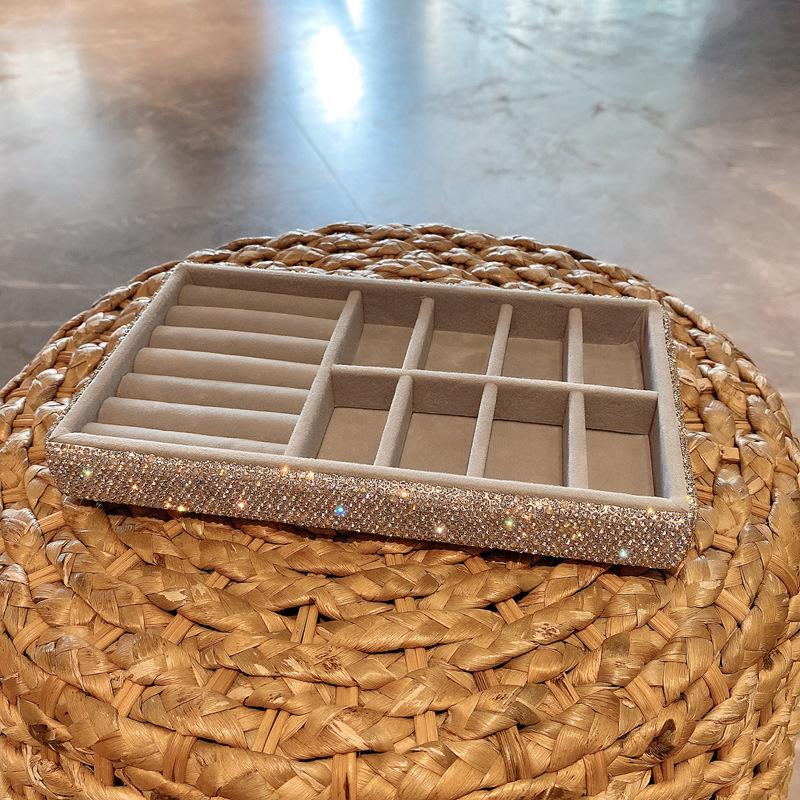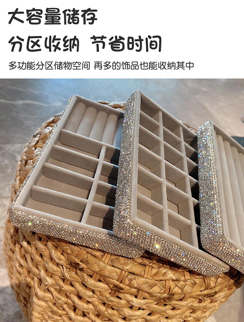 Joyero de lujo ligero, caja de almacenamiento para pendientes, collares y diamantes para el hogar, caja de exhibición de joyas de escritorio con rejilla de gran capacidad