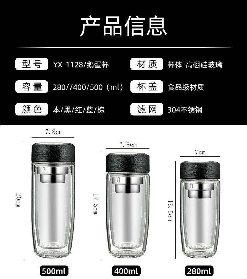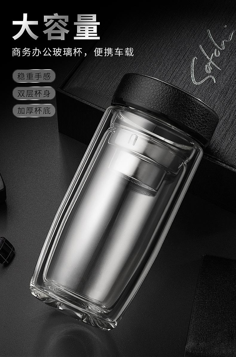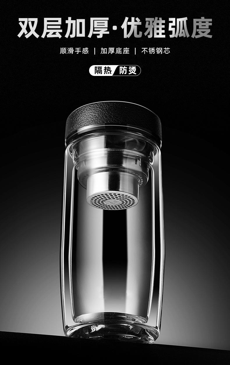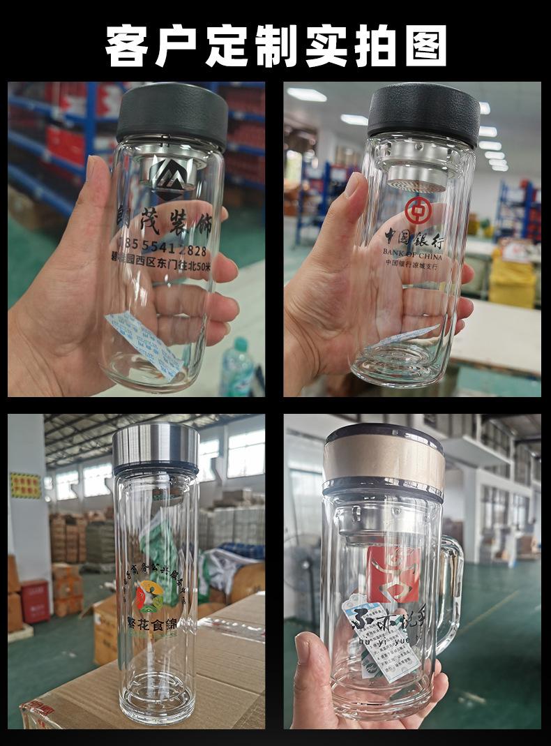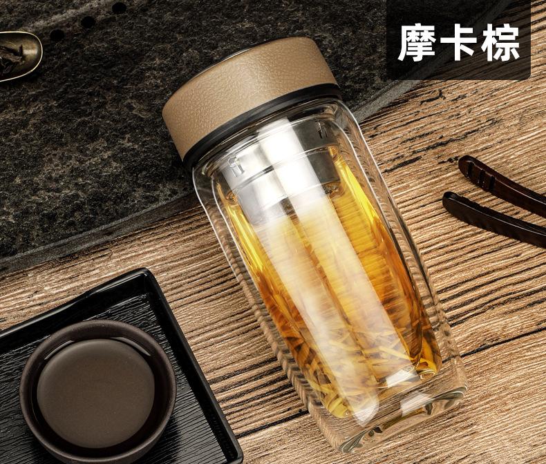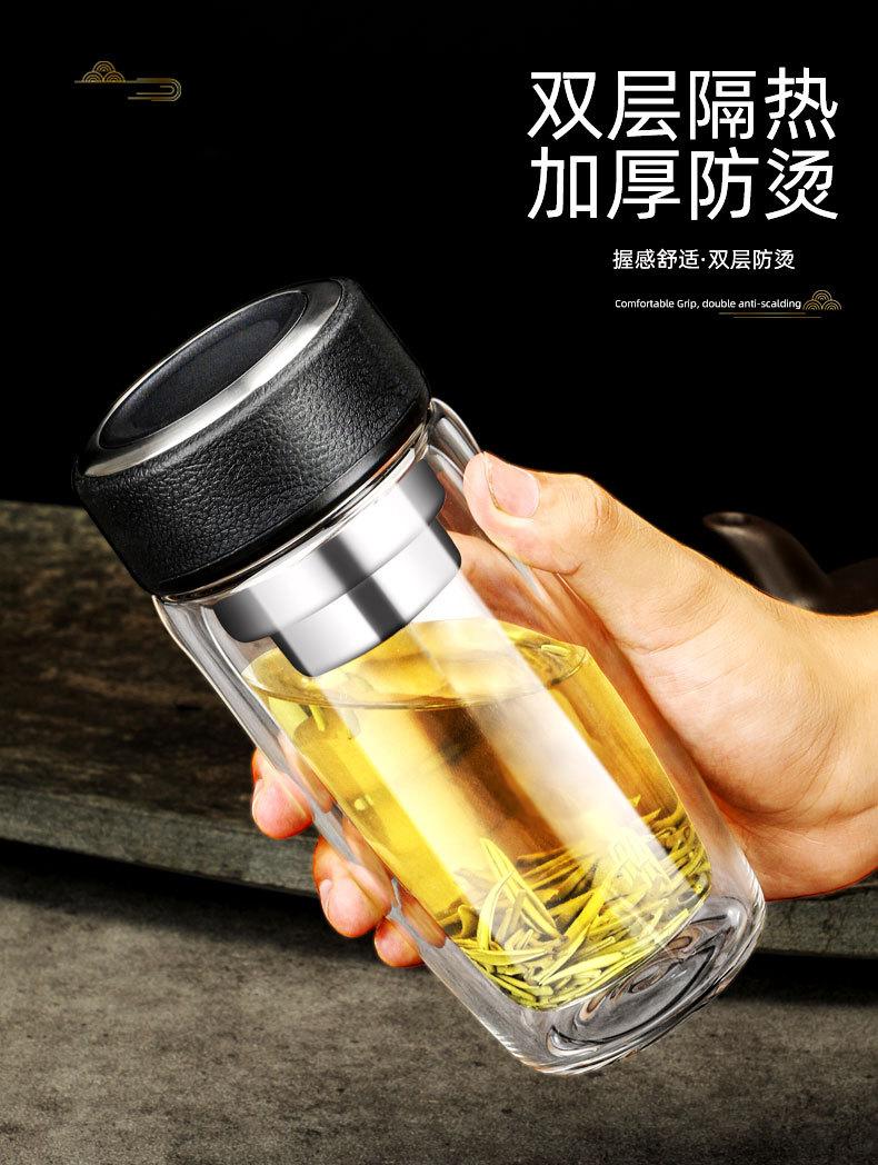 Taza de agua portátil de vidrio de doble capa para automóvil, taza de té transparente de alta gama para hombres, taza de té con separación, regalo para el hogar LOGO