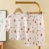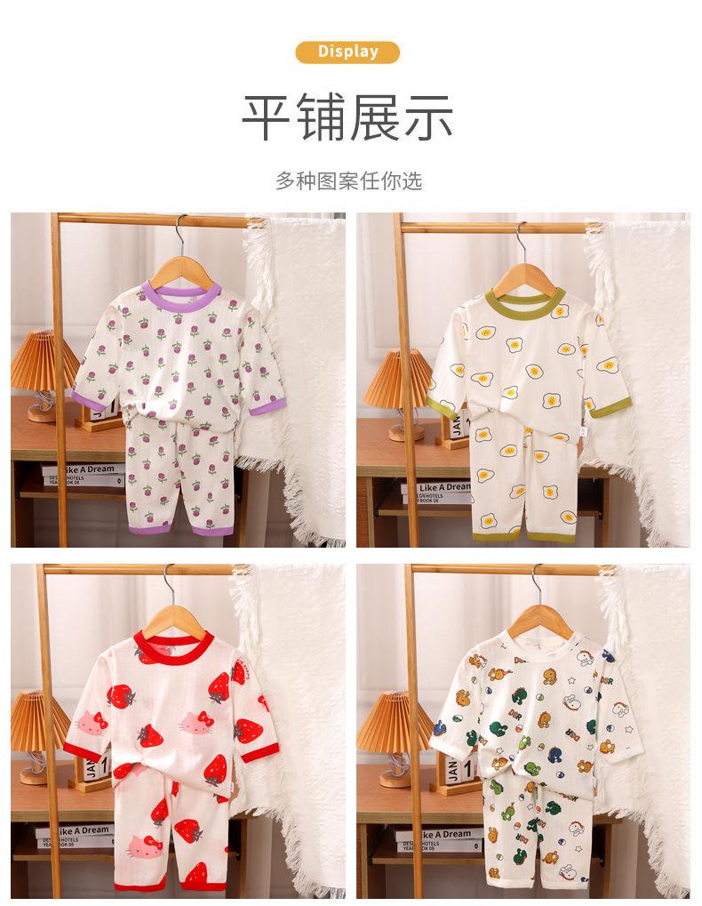 Ropa de hogar para niños, pijamas de algodón clase A para niños y niñas, ropa de verano para bebés con aire acondicionado, pantalones capri, traje infantil de jacquard.
