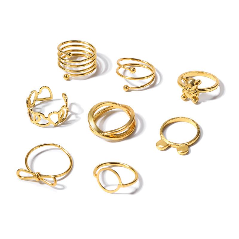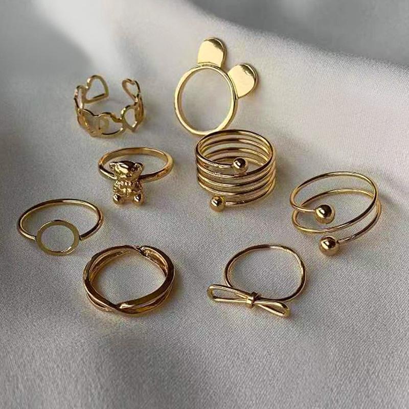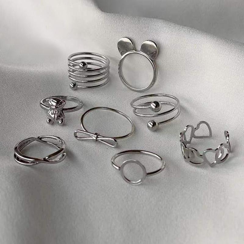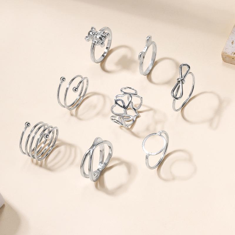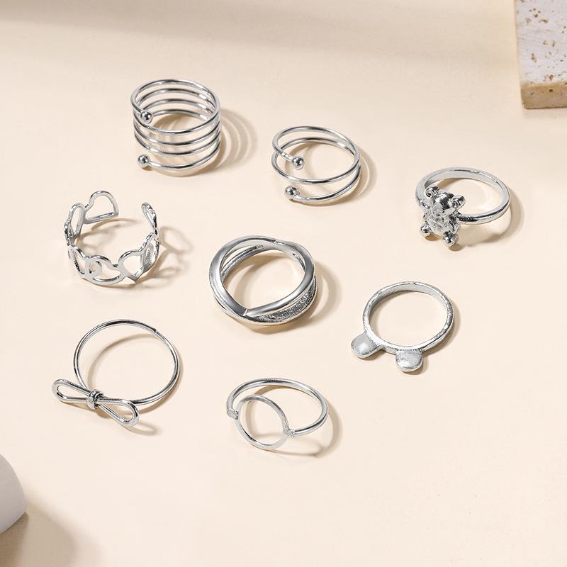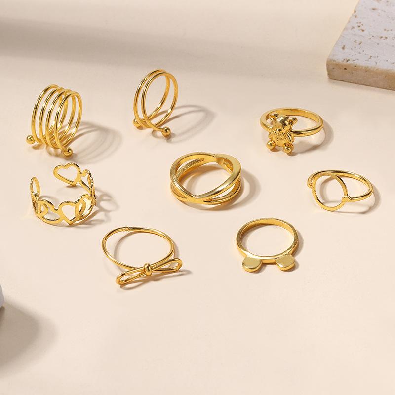 Anillos al por mayor estilo coreano Ins, joyería transfronteriza europea y americana para mujer, anillos geométricos únicos exagerados de corazón apilados con lazo