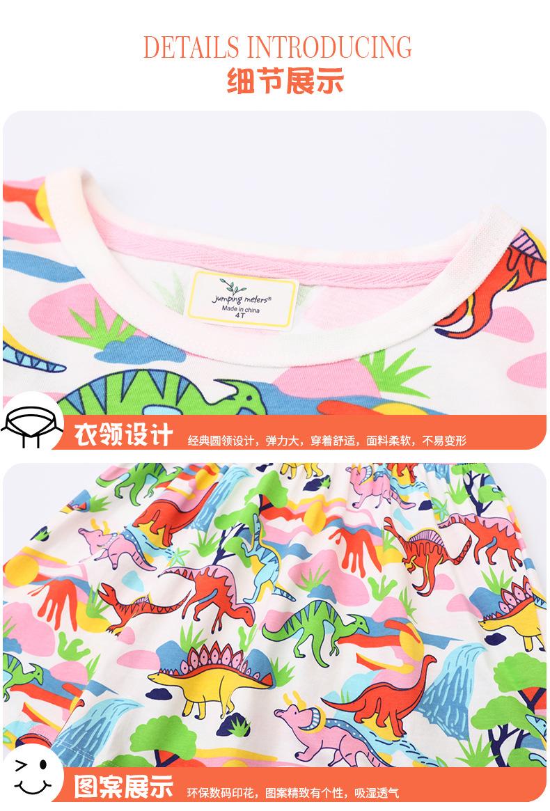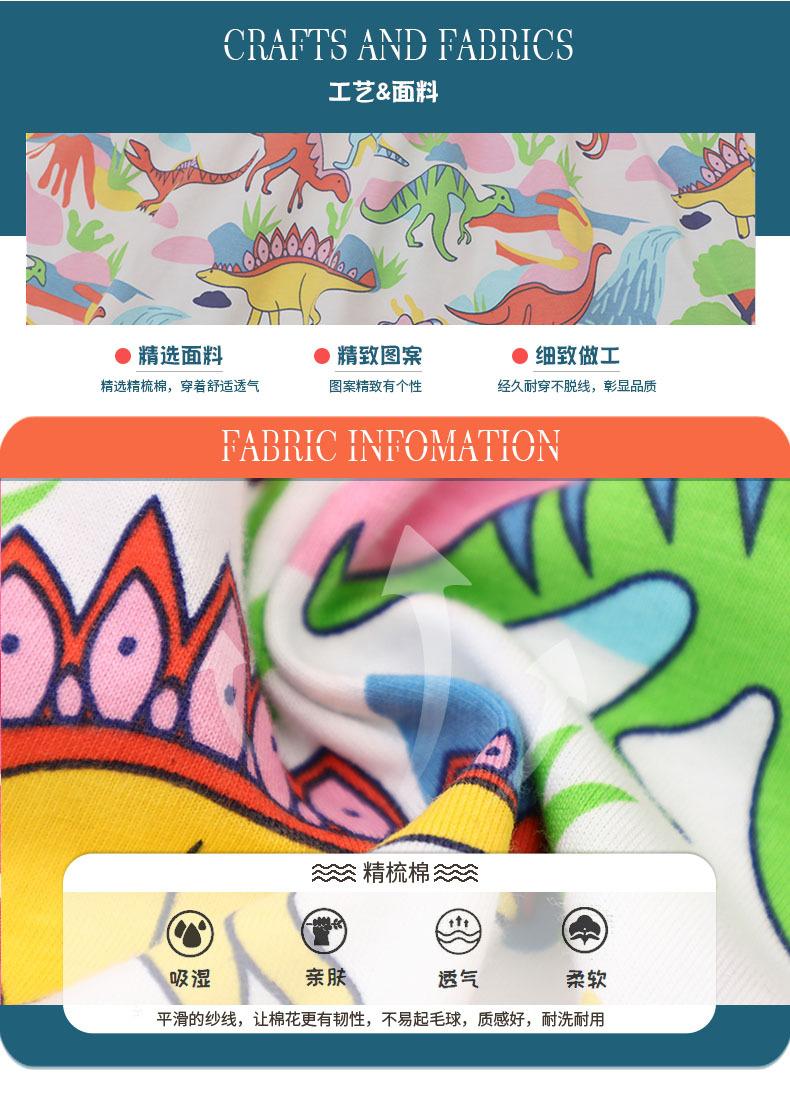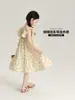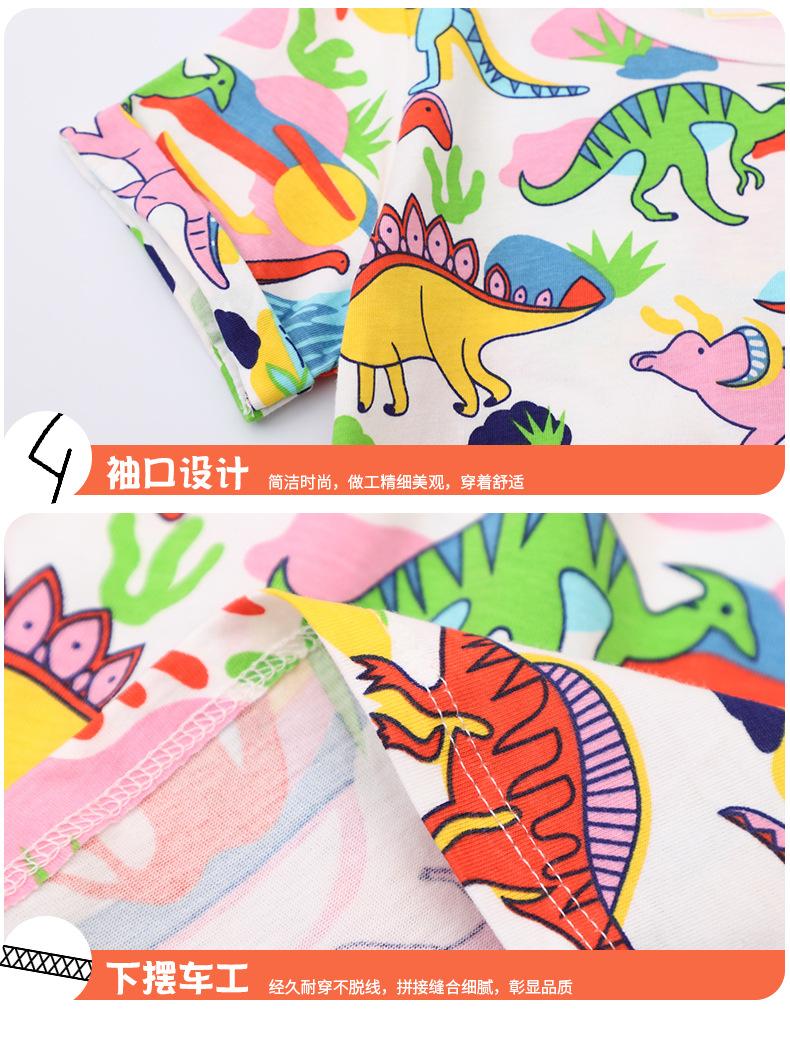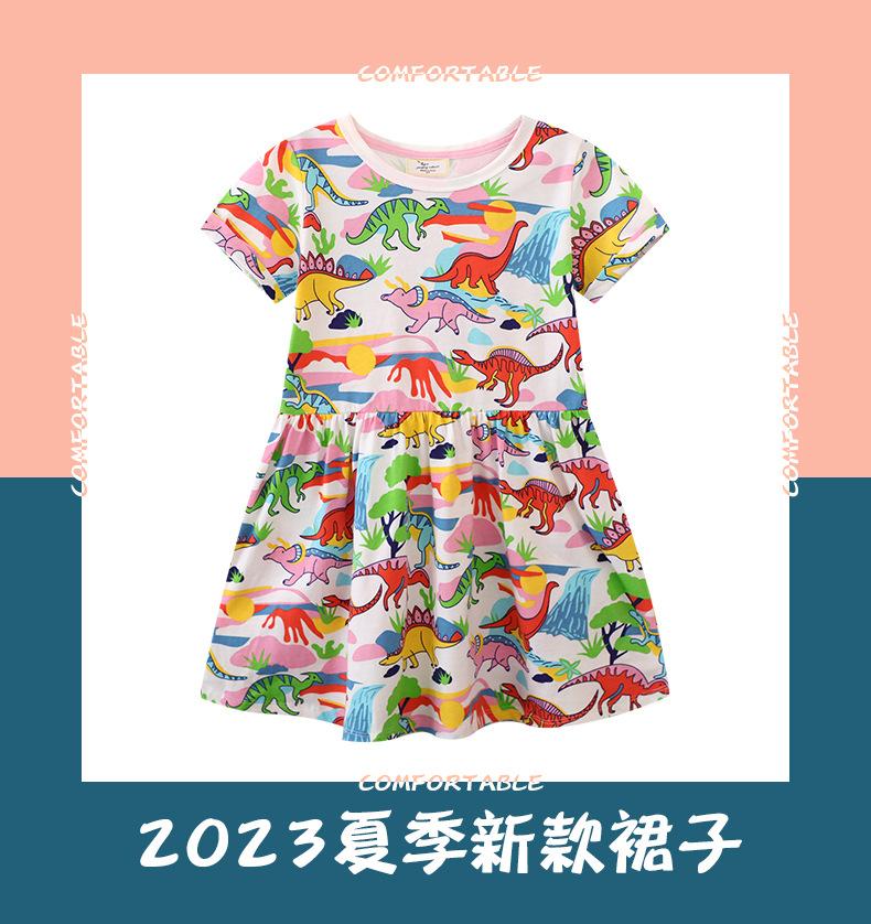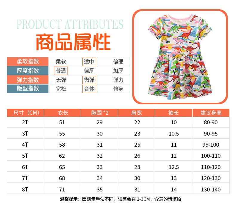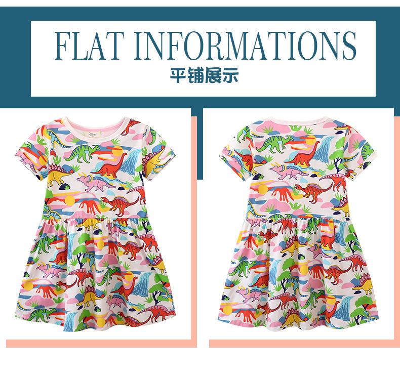 Comercio Exterior 2024 Primavera y Verano Nuevo Estilo Niñas Vestido Europeo y Americano de Manga Corta Vestido de Princesa de Verano con Dinosaurio Estampado para Niños