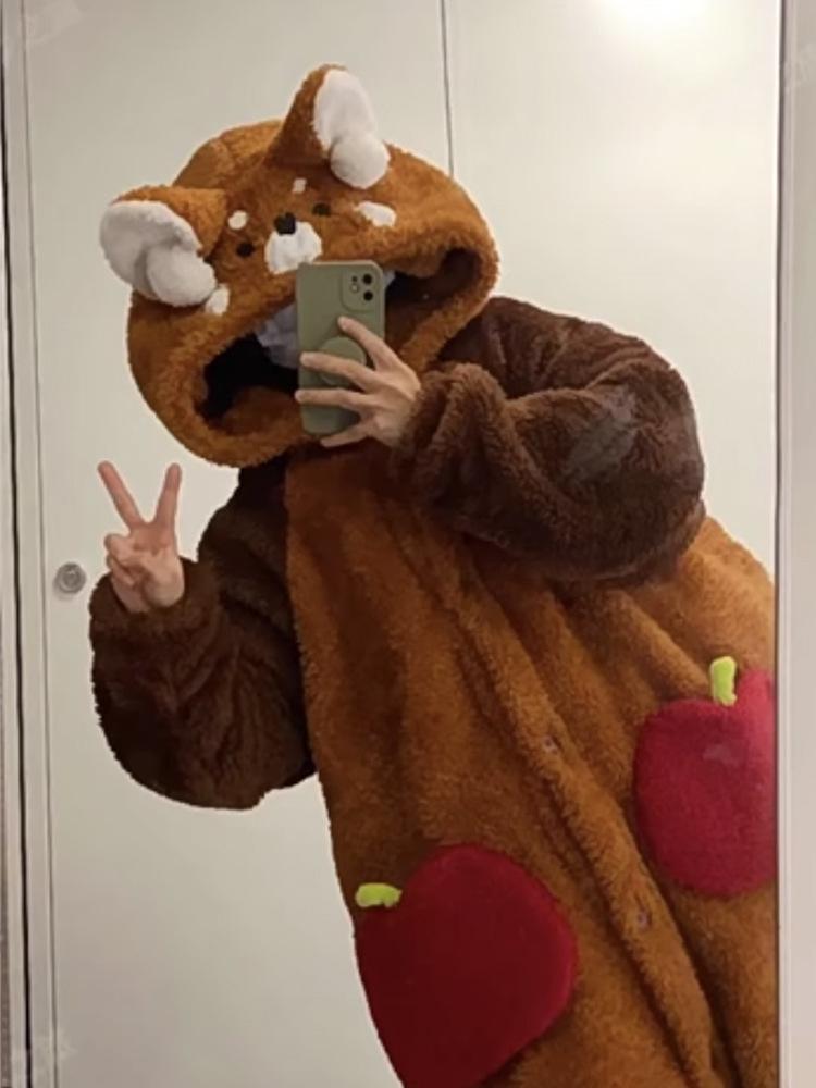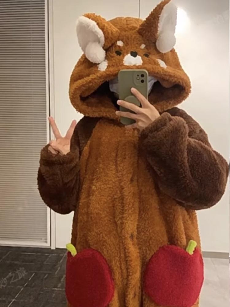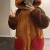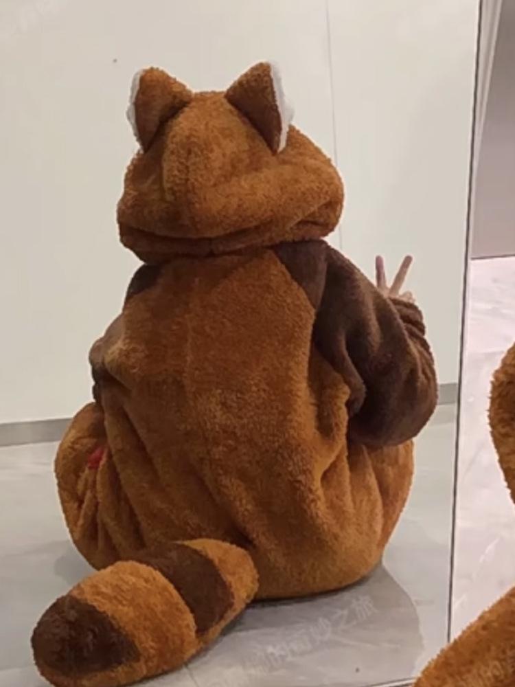 Camisón de mapache pequeño de una celebridad popular en línea, pijama de forro polar coral con capucha de dibujos animados para pareja de cola grande, traje para estar en casa al por mayor