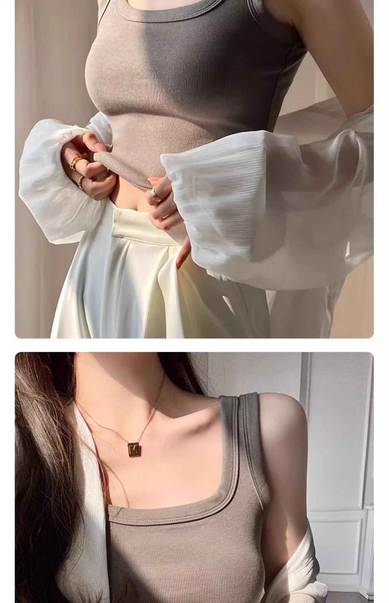 Camisola con hilo para mujer, ropa de verano blanca, hermosa espalda, prenda exterior 2024, nueva camiseta sin mangas para primavera y otoño