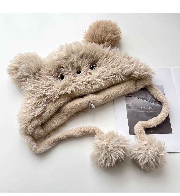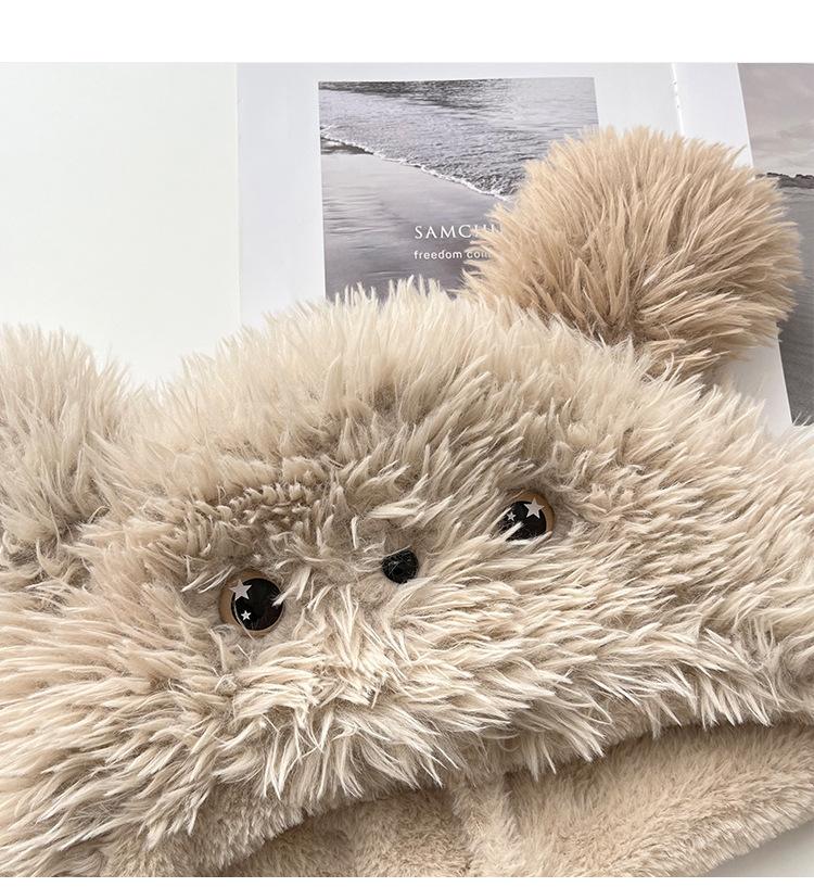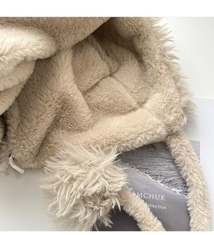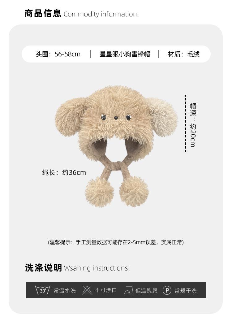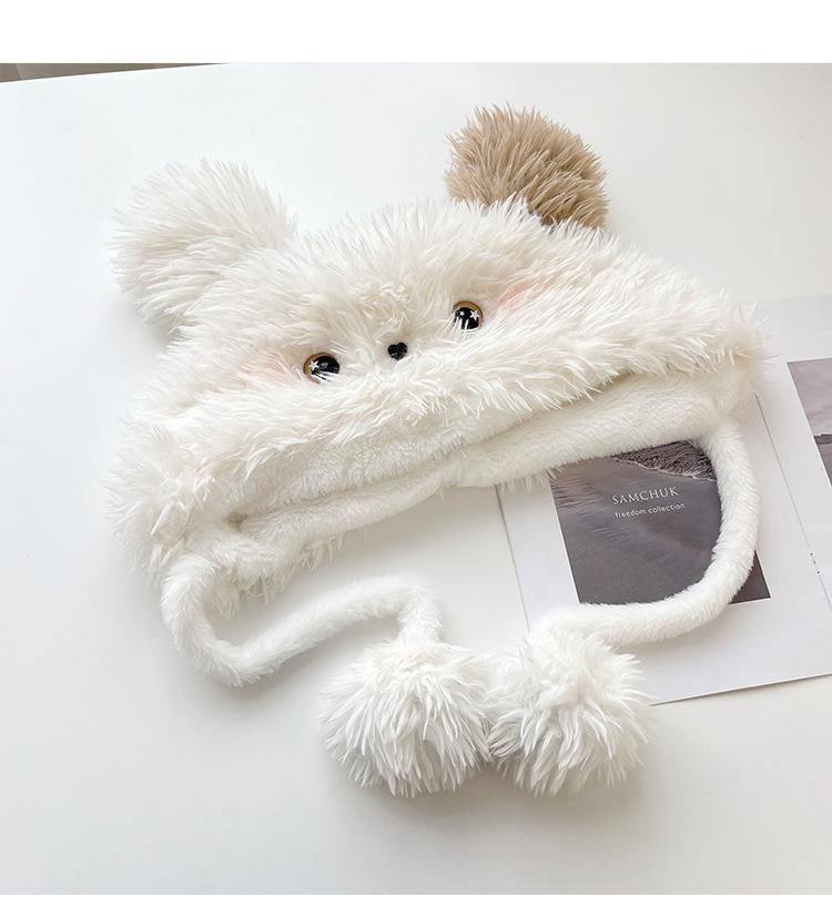 Lindo gorro Lei Feng de felpa con orejas de cachorro sonrojado de dibujos animados para mujer invierno estilo japonés todo-combinable cálido con orejeras