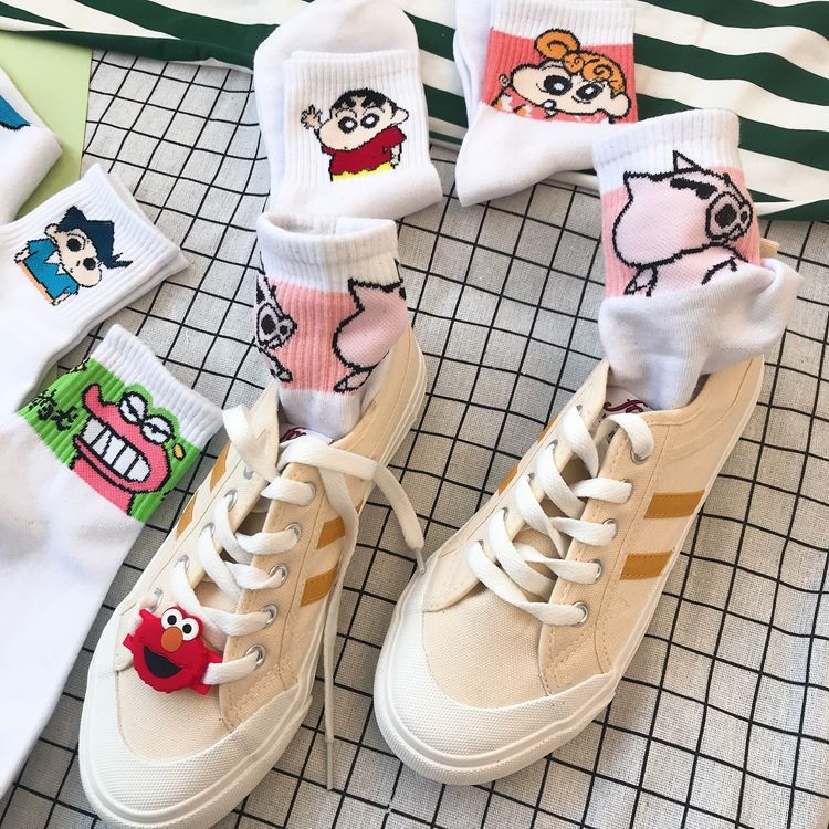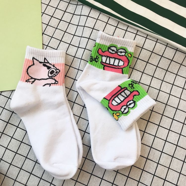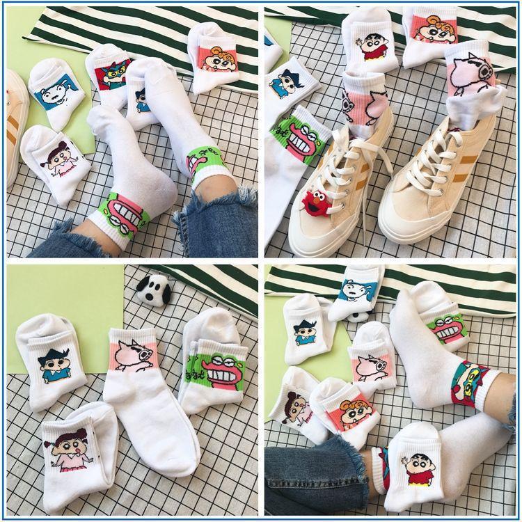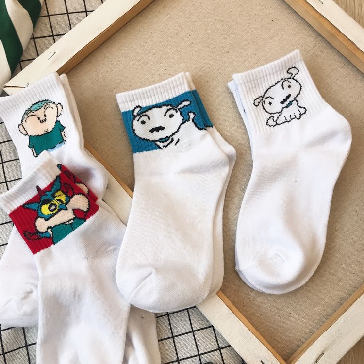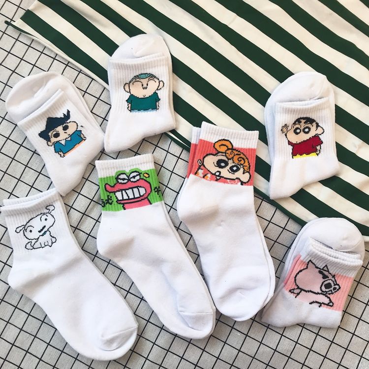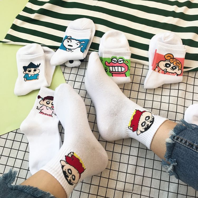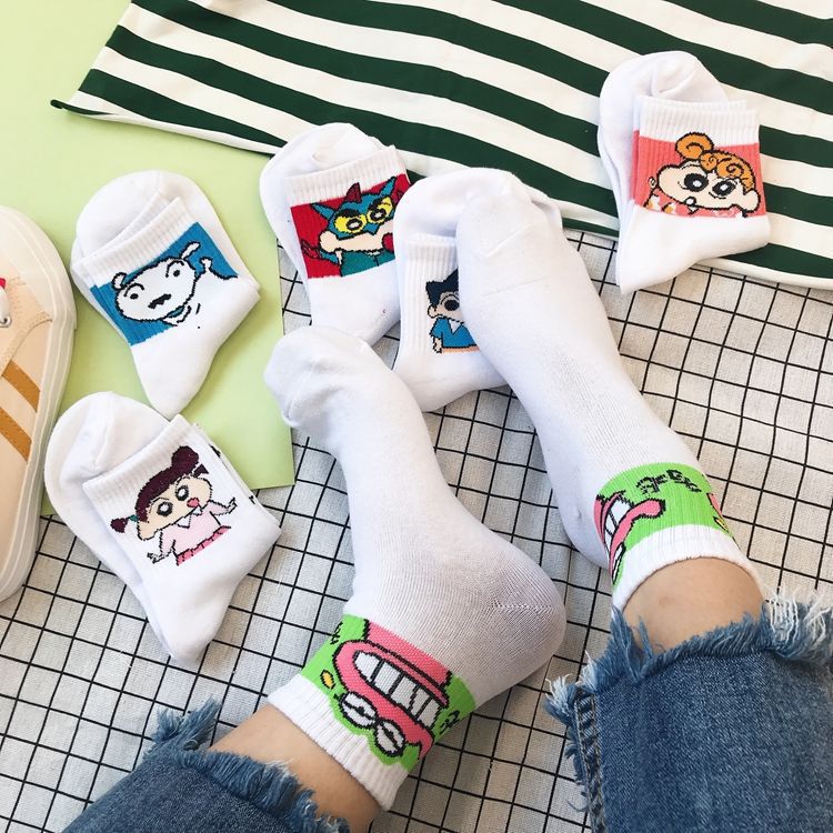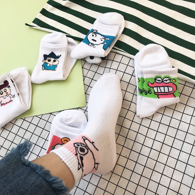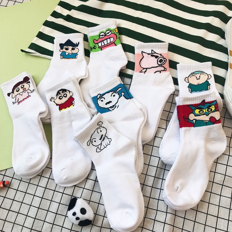 Calcetines de dibujos animados de crayones bonitos de estudiantes japoneses, calcetines deportivos de verano para mujer, calcetines de patineta con personalidad, calcetines de media pantorrilla de moda