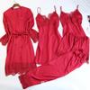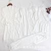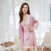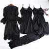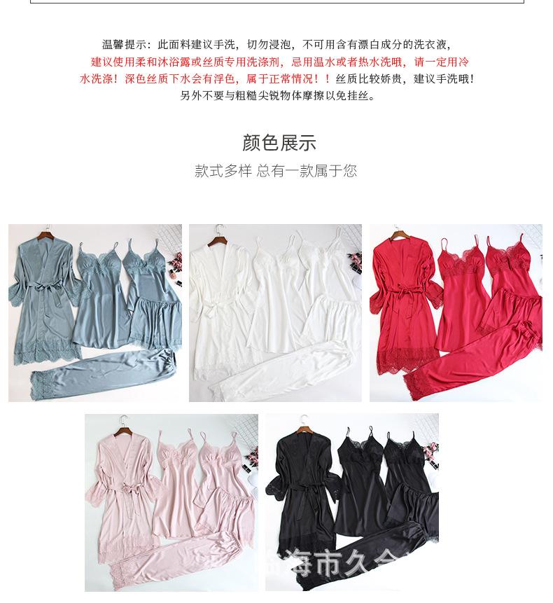 Pijama de seda de hielo para mujer, camisón sexy de manga larga con tirantes, conjunto de cinco piezas, camisón de encaje fino de moda de verano, ropa para el hogar