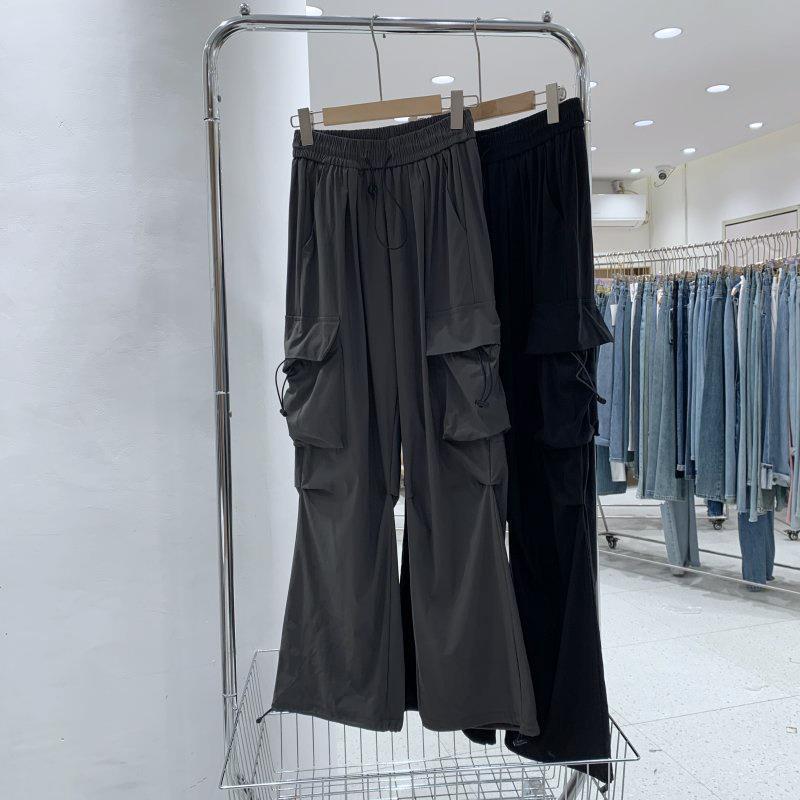 Venta al por mayor de monos deportivos rectos de estilo americano para mujer, pantalones casuales de pierna ancha, finos, sueltos y adelgazantes de verano