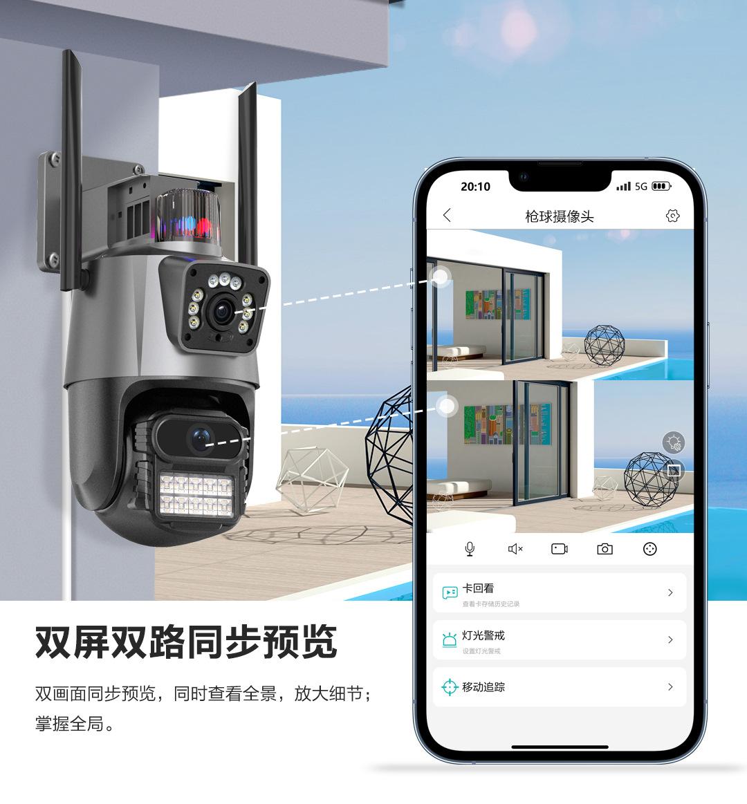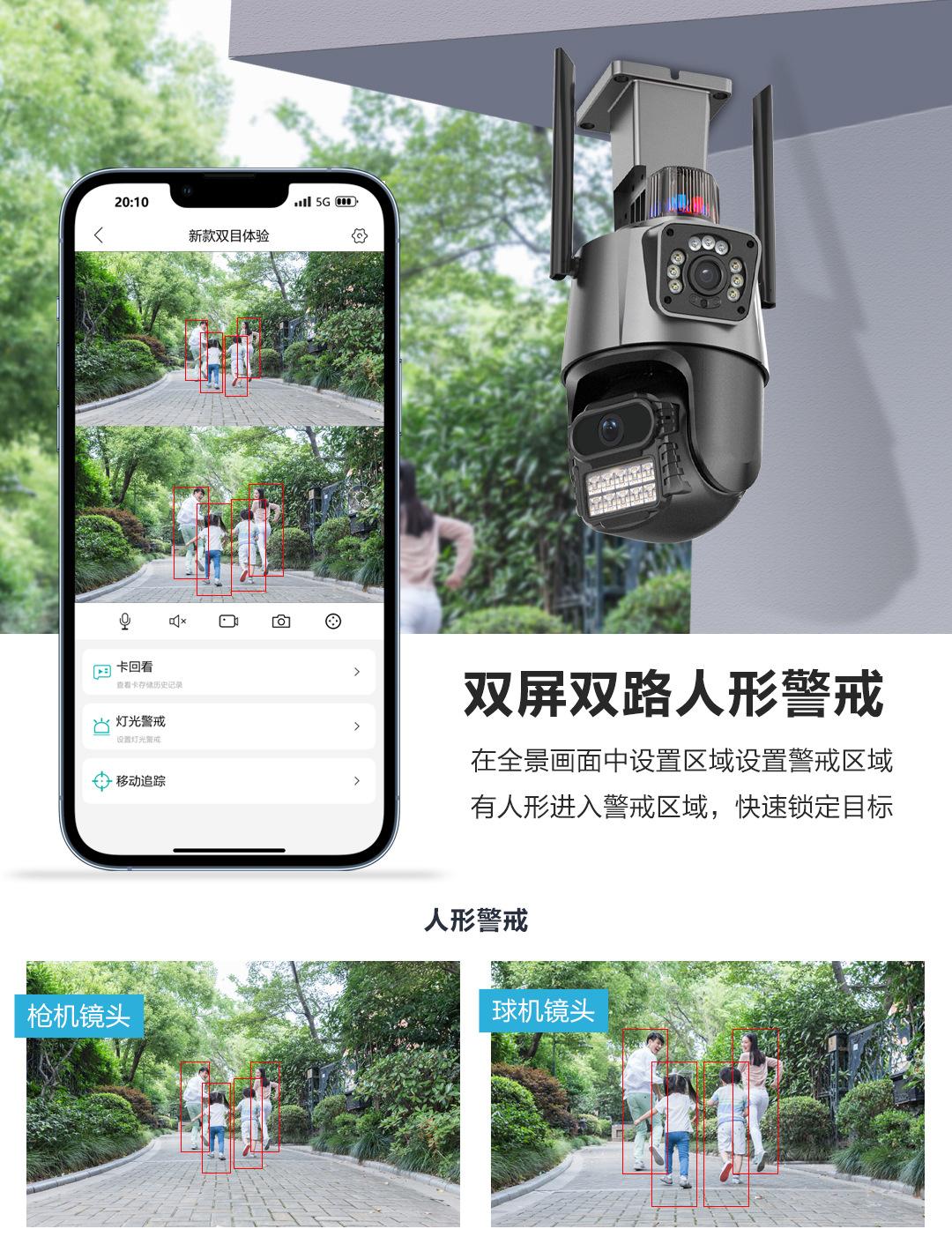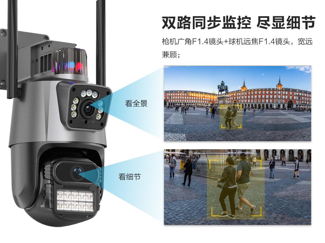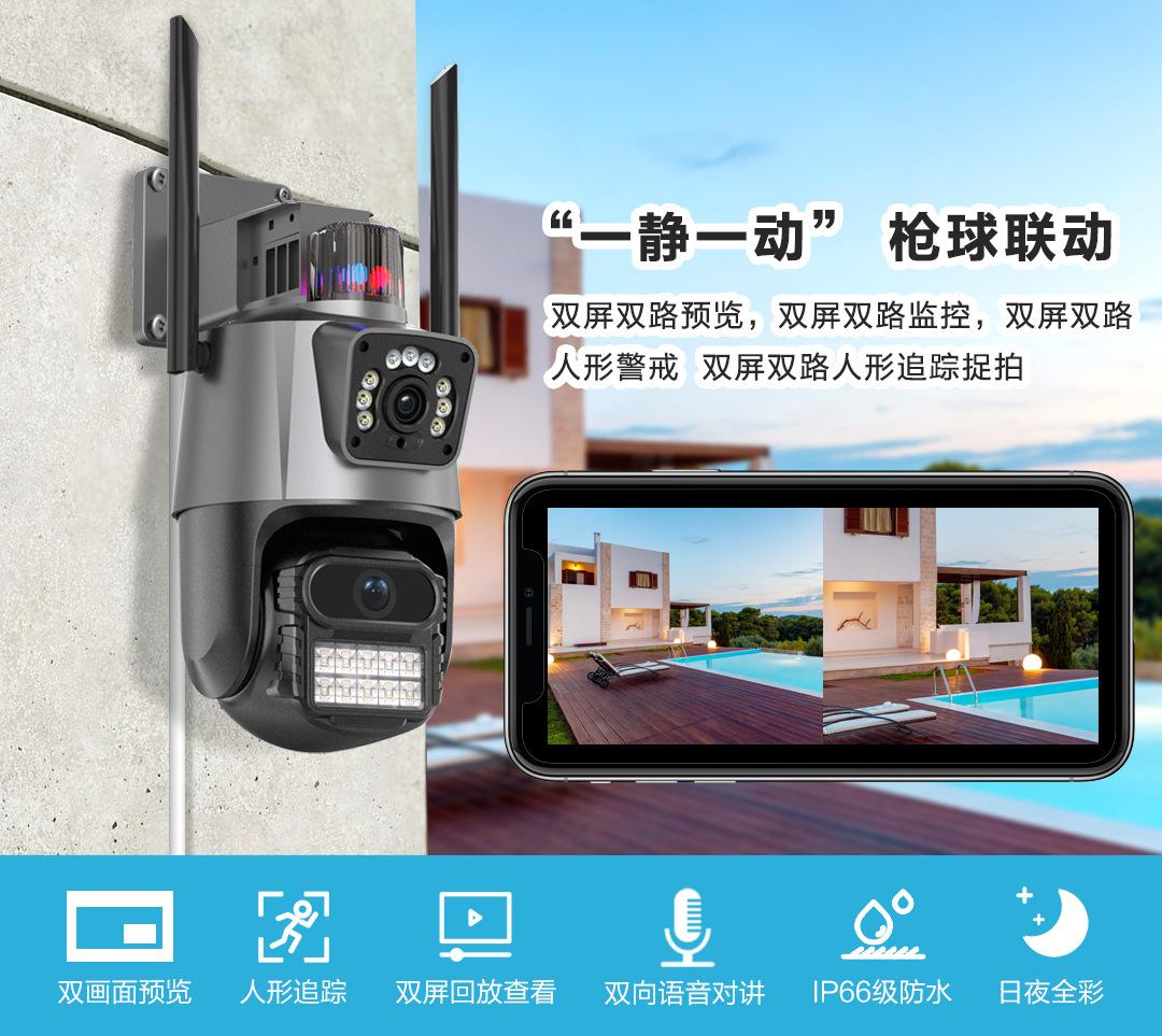 Cámara de Vigilancia Inalámbrica Wifi de Doble Lente Enlace Binocular Impermeable 360 Grados Exterior Tipo Bala Integrada Icsee