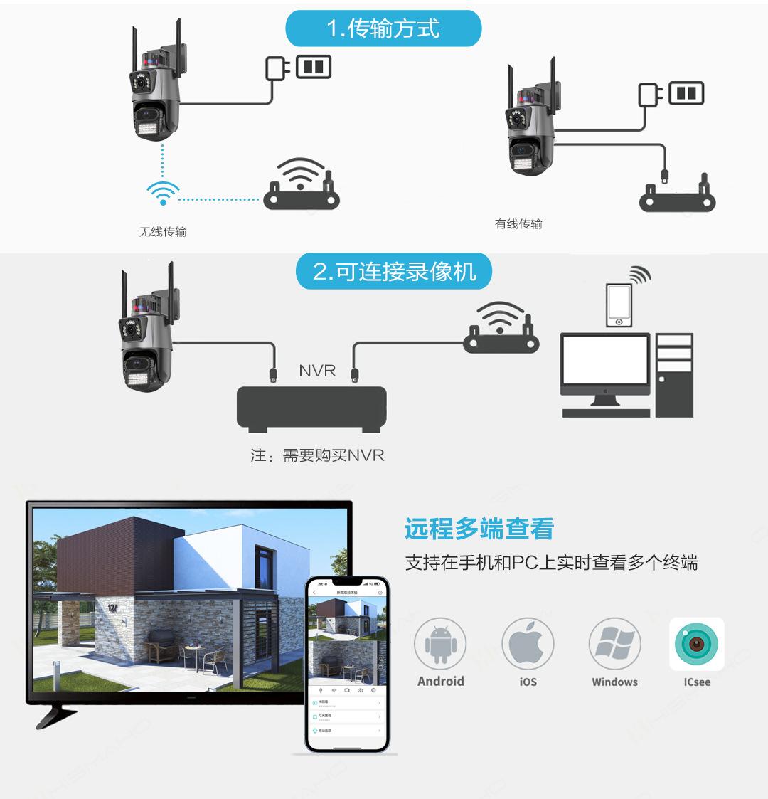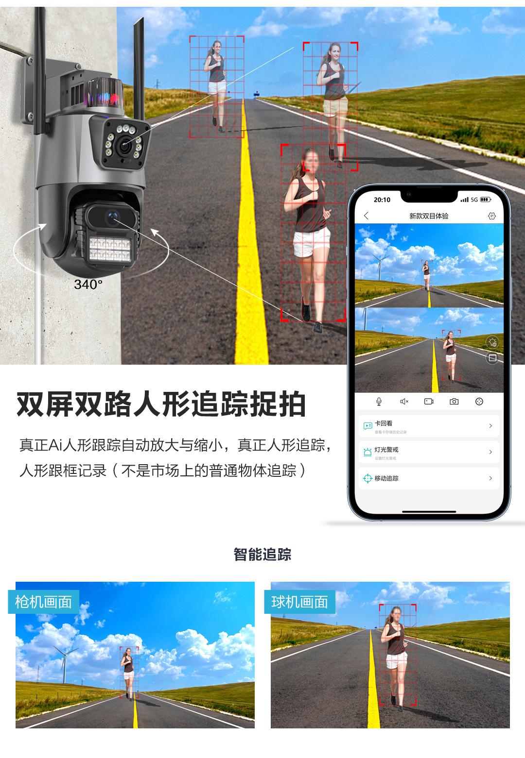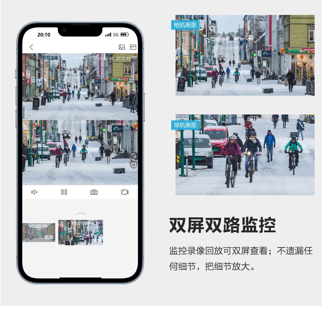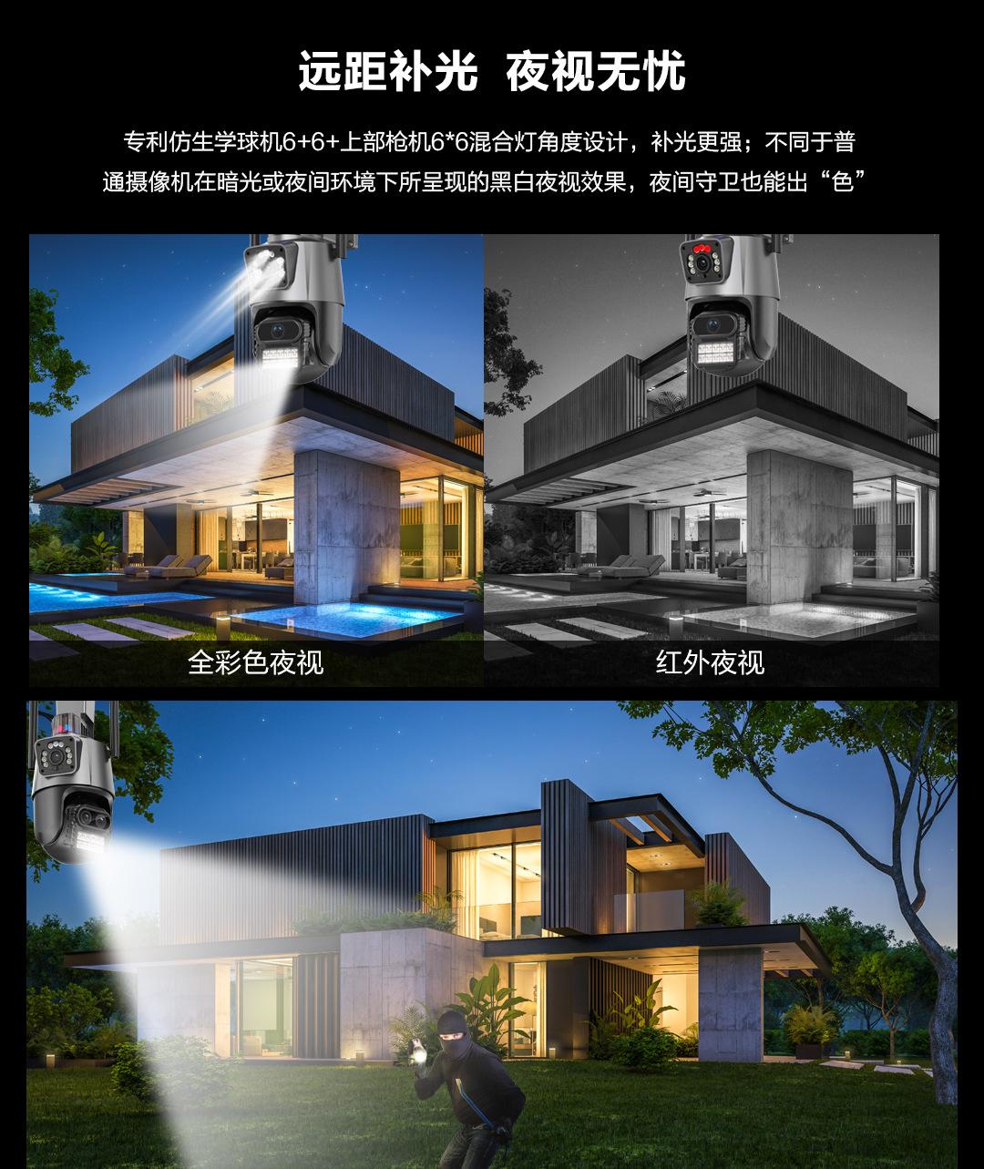 Cámara de Vigilancia Inalámbrica Wifi de Doble Lente Enlace Binocular Impermeable 360 Grados Exterior Tipo Bala Integrada Icsee