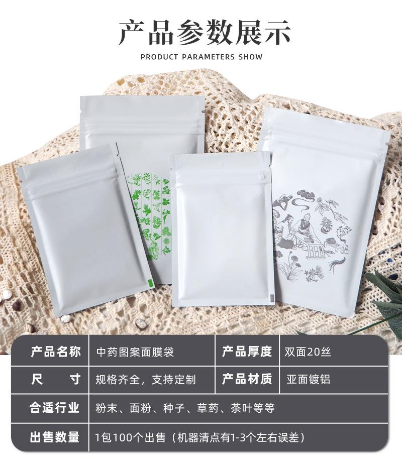 Bolsa de embalaje de polvo para mascarilla de medicina china directa de fábrica flores y té alimento bolsa sellada cápsula prueba sub-embalaje bolsa autosellable