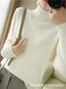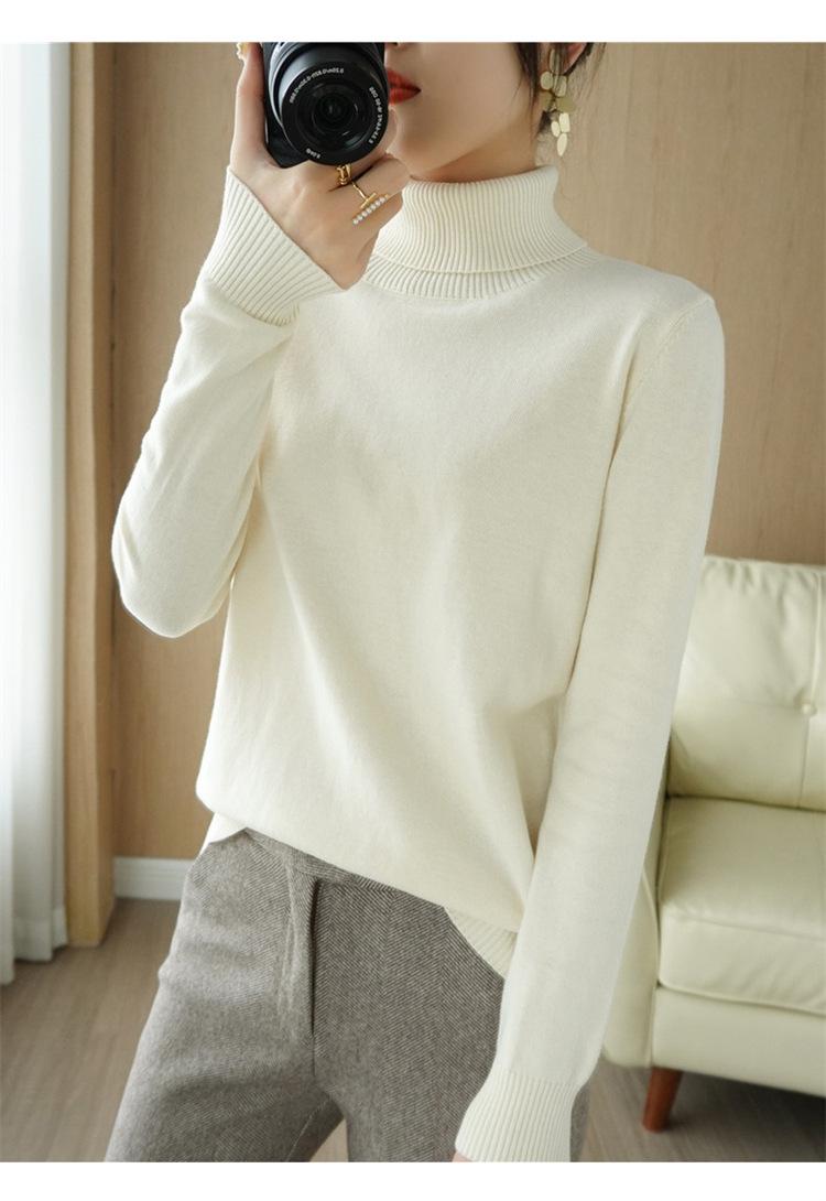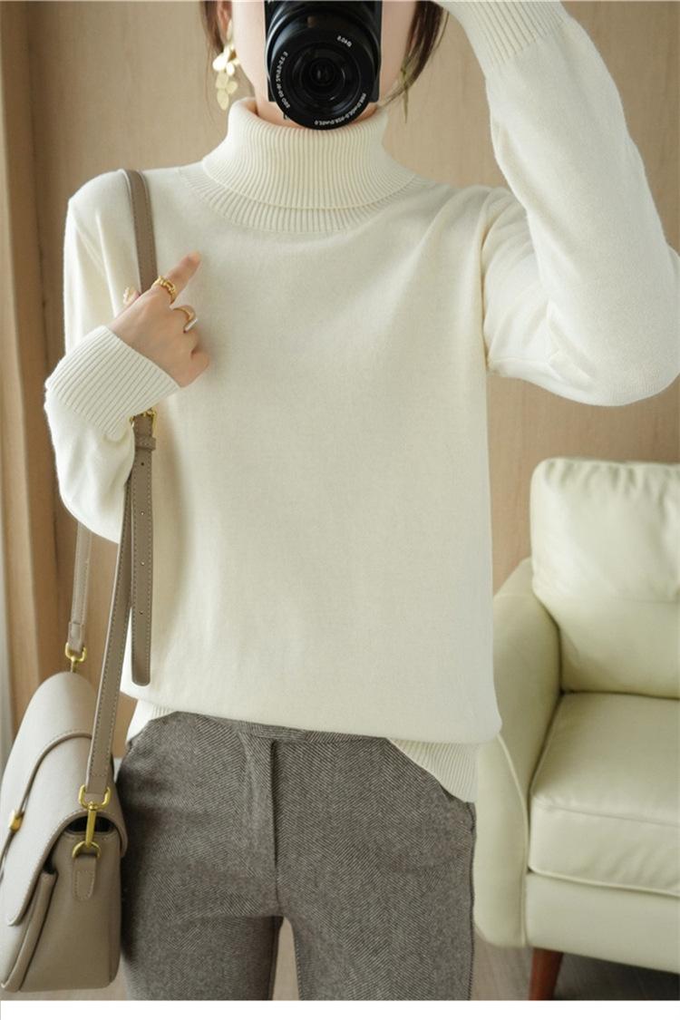 Camisa de punto de algodón de manga larga para mujer, jersey de solapa alta, estilo coreano, top de algodón holgado y combinable, venta al por mayor