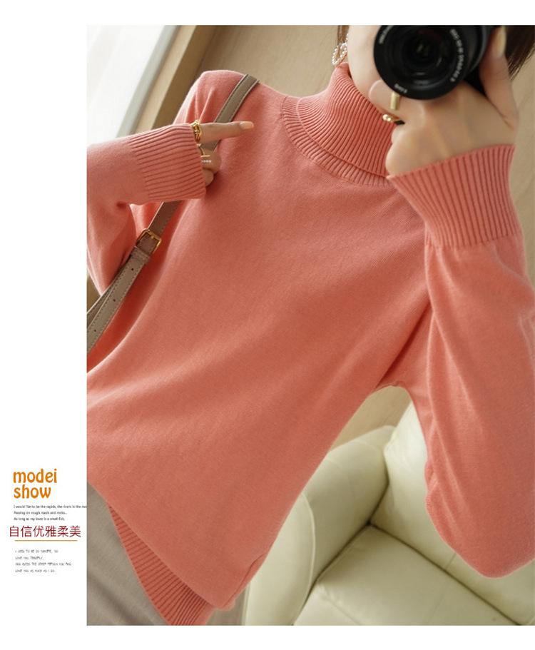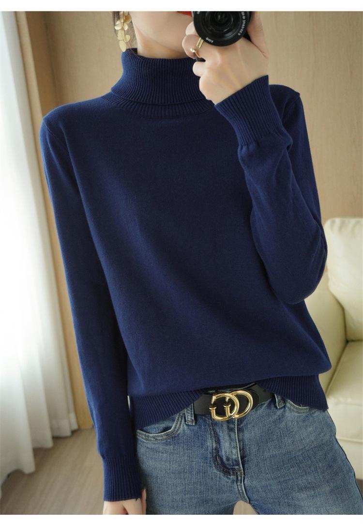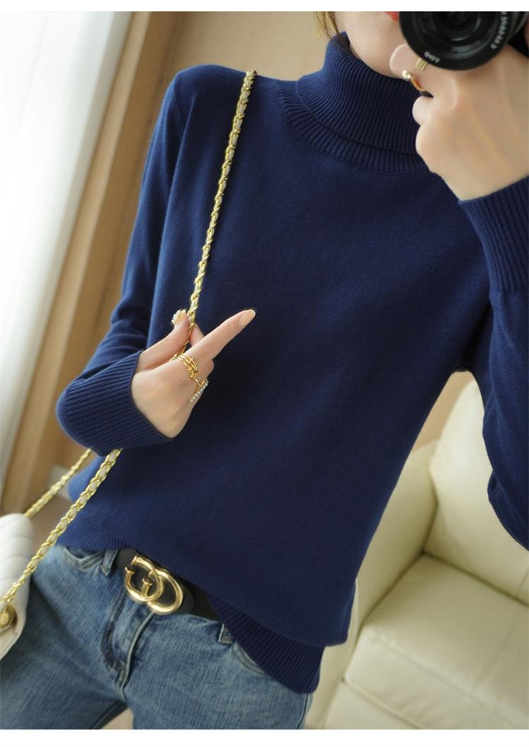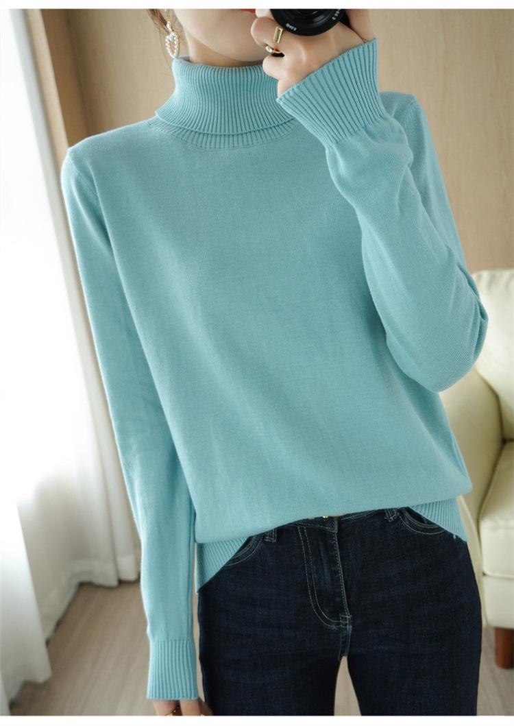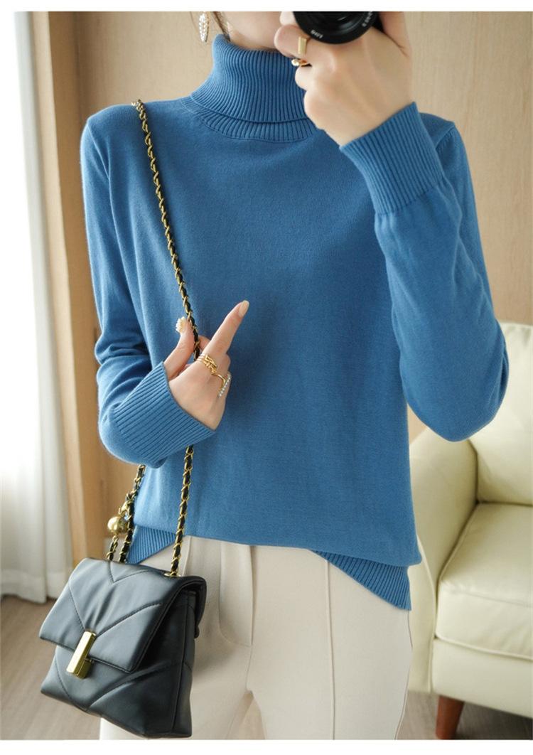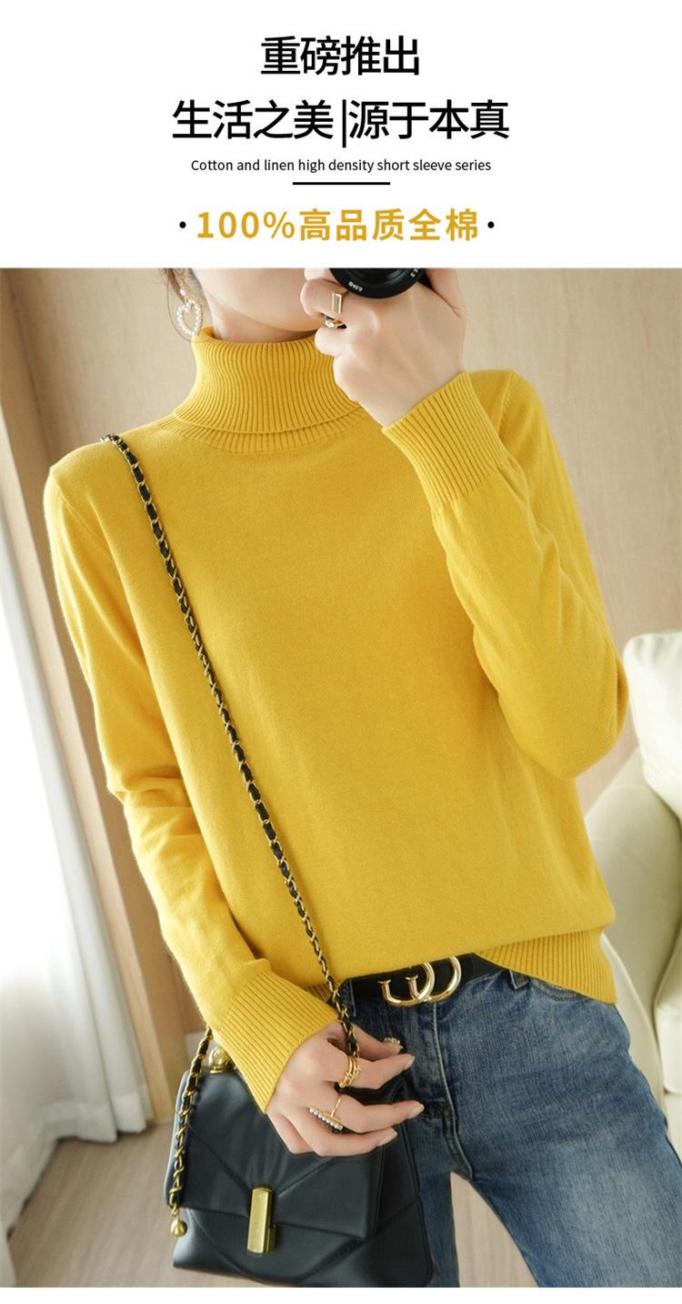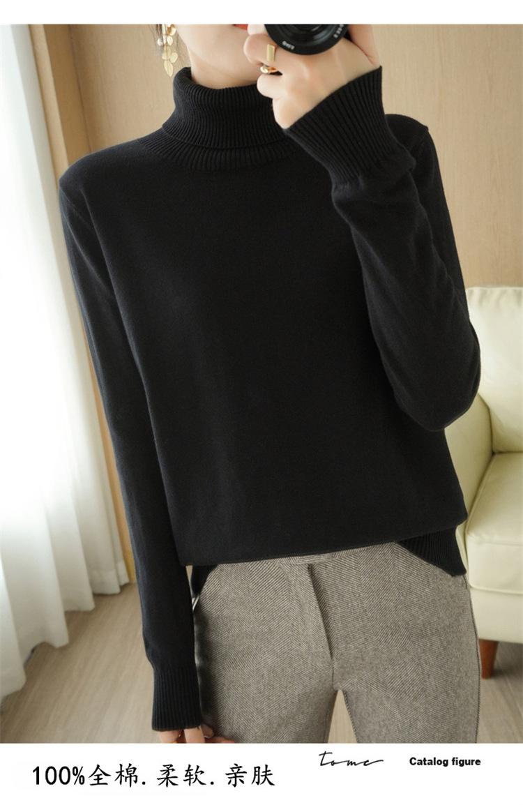 Compra Camisa de punto de algodón de manga larga para mujer, jersey de solapa alta, estilo coreano, top de algodón holgado y combinable, venta al por mayor al por mayor en Joom.pro