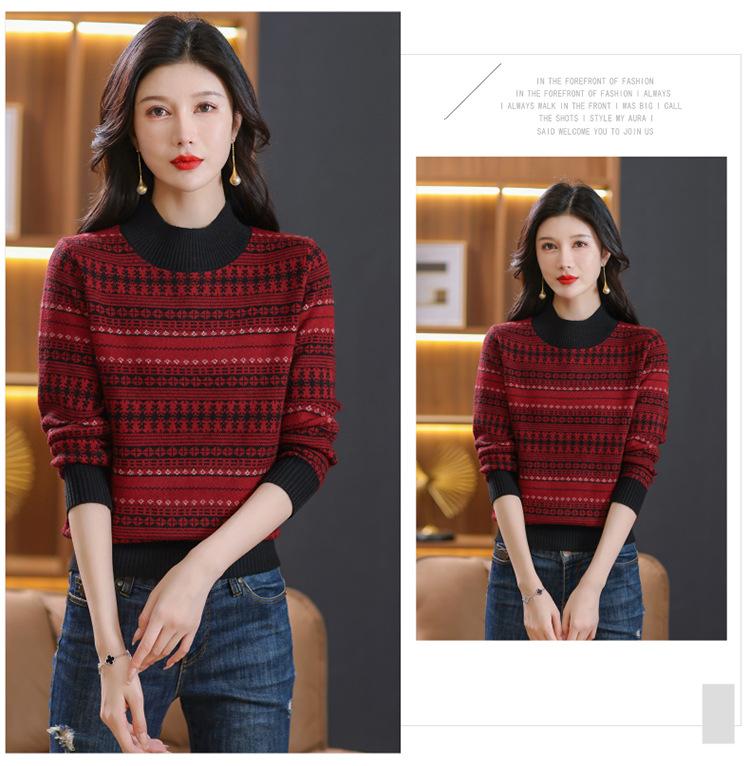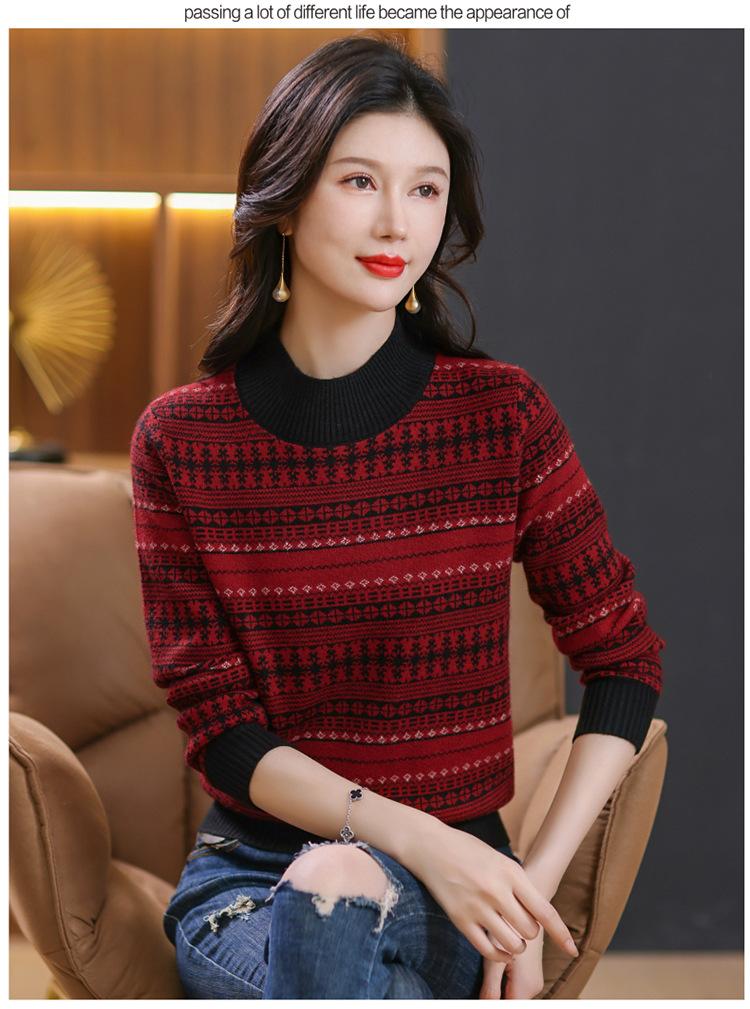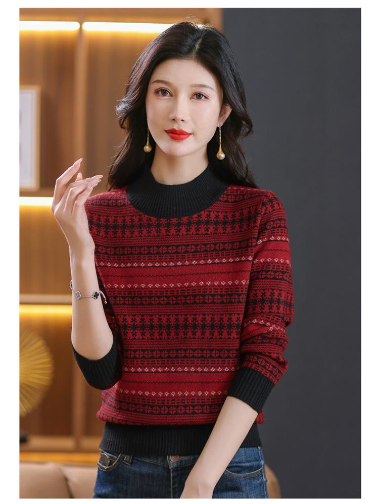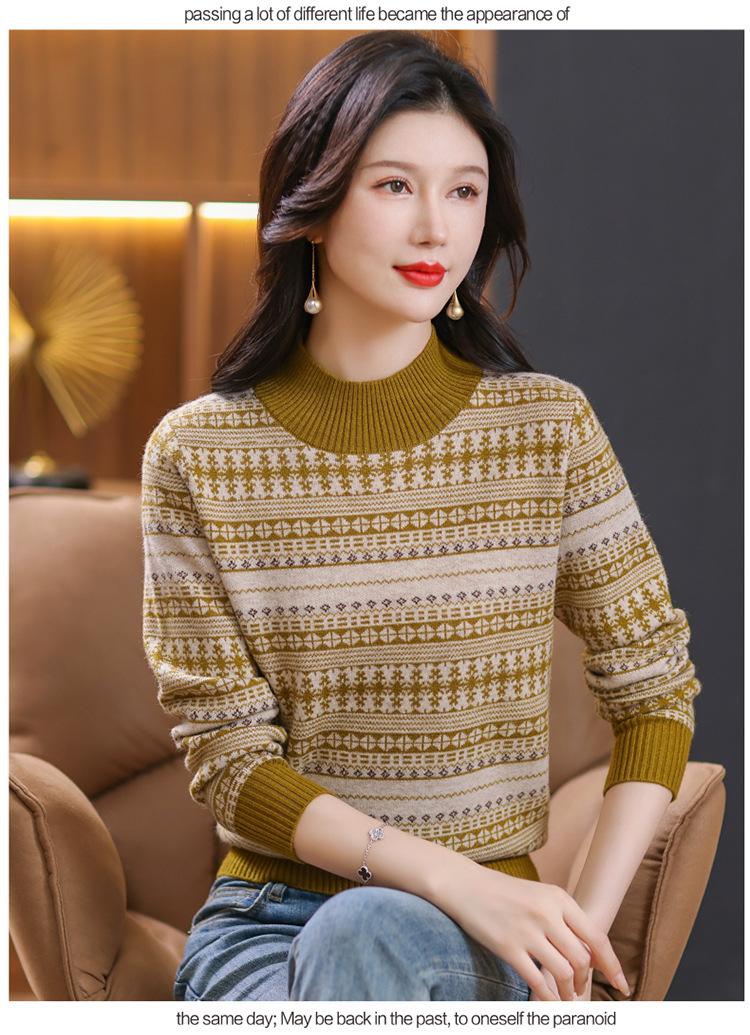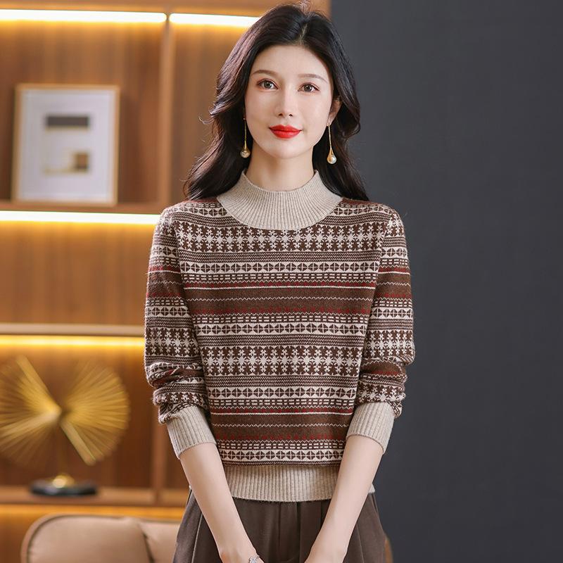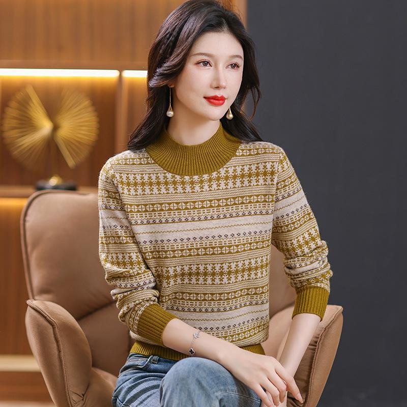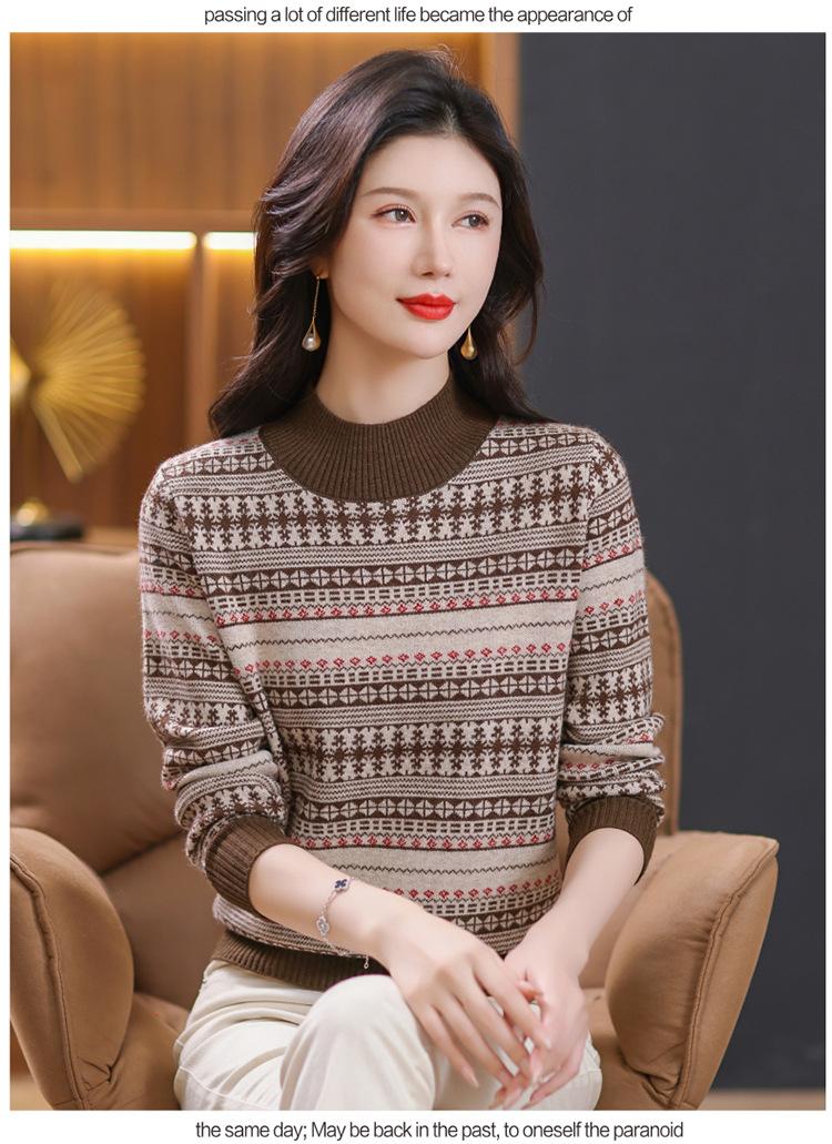 Suéter jacquard para mamá, otoño e invierno, cuello alto medio, camisa de fondo, estilo occidental de moda, nuevo suéter interior grueso de talla grande para mediana edad