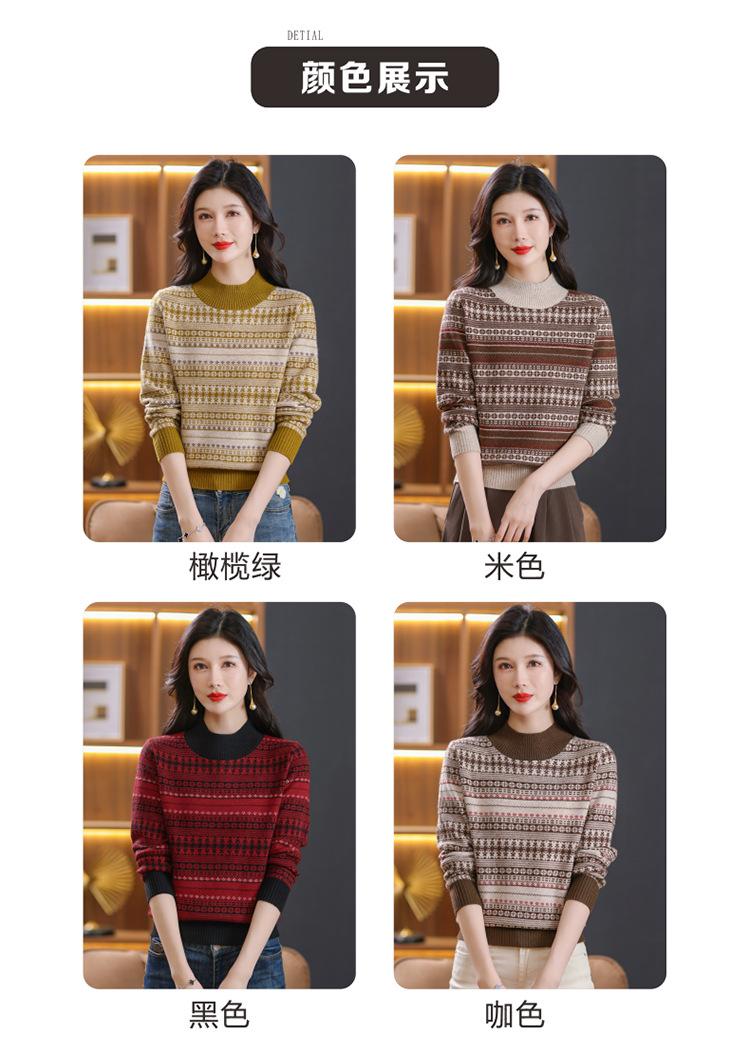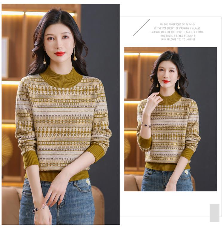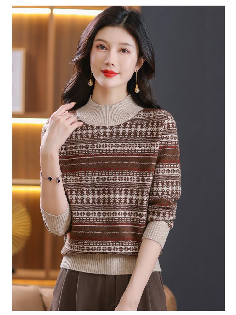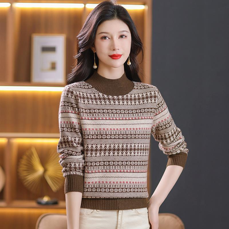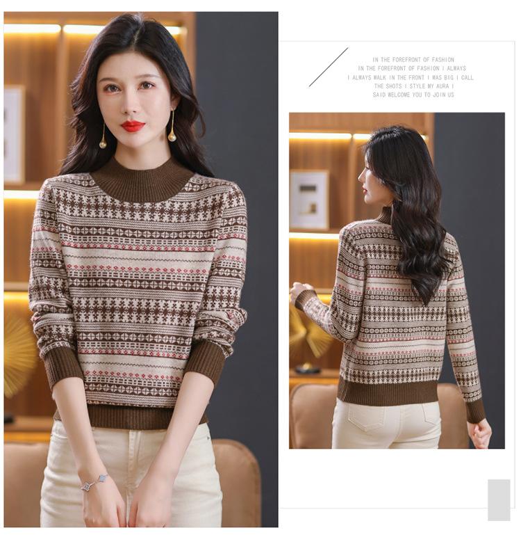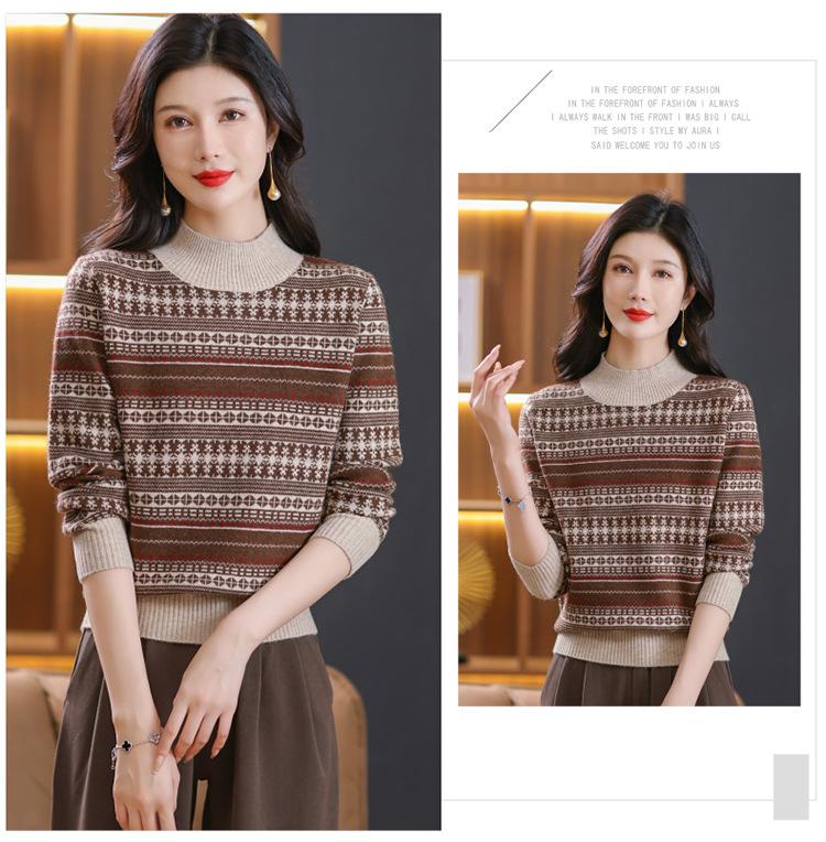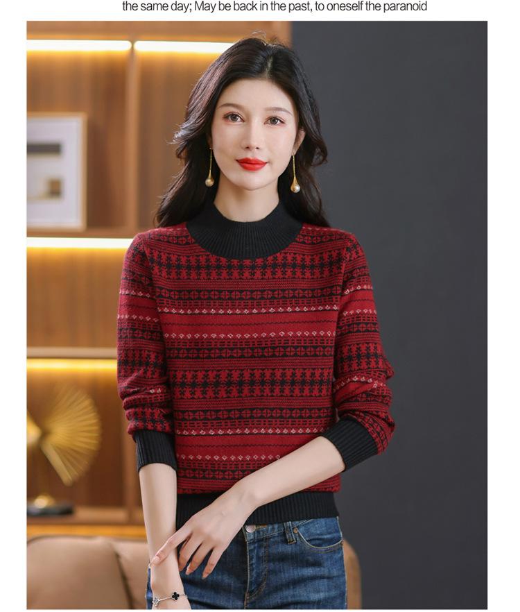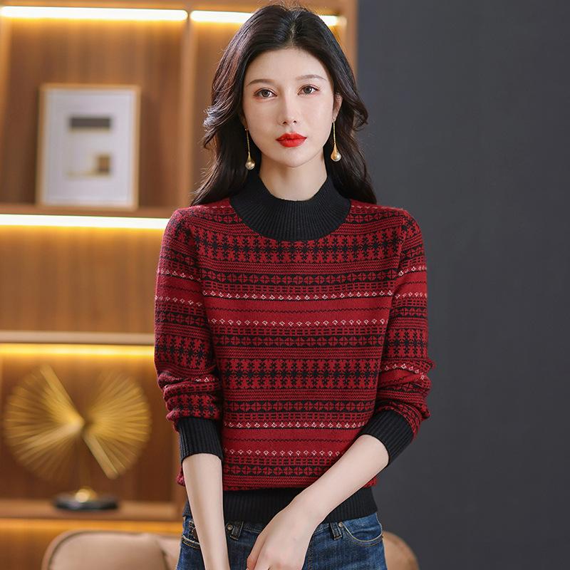 Suéter jacquard para mamá, otoño e invierno, cuello alto medio, camisa de fondo, estilo occidental de moda, nuevo suéter interior grueso de talla grande para mediana edad
