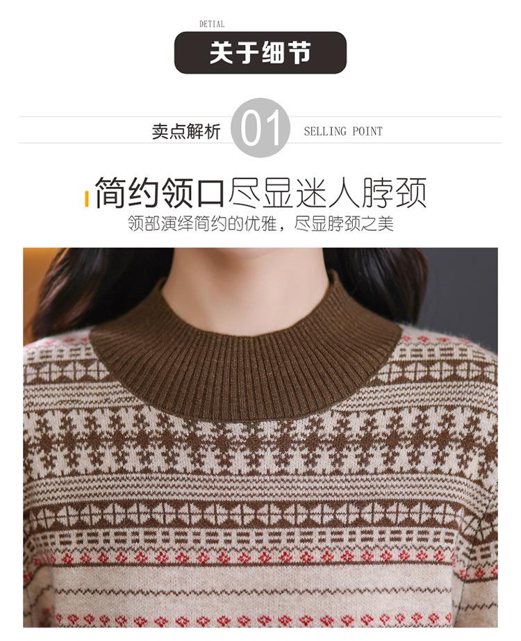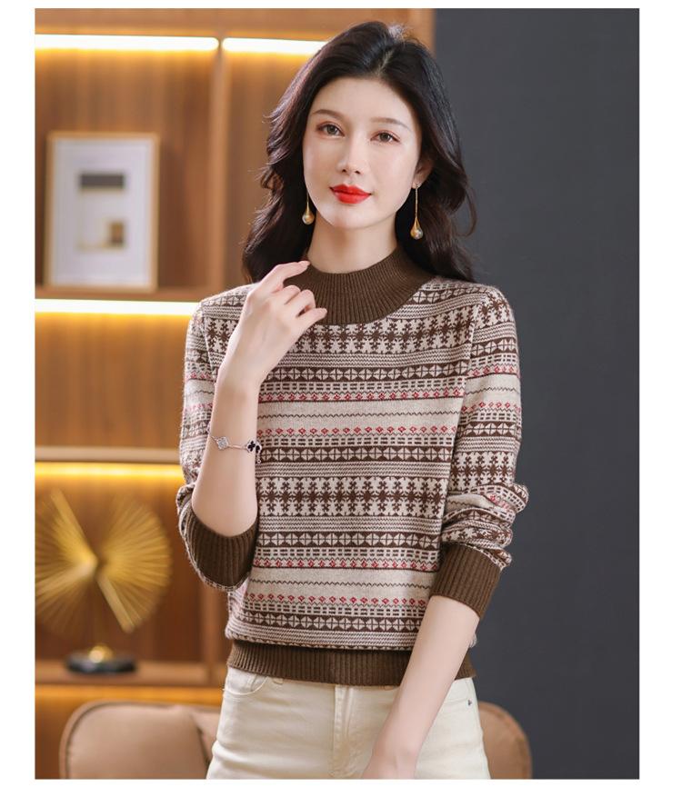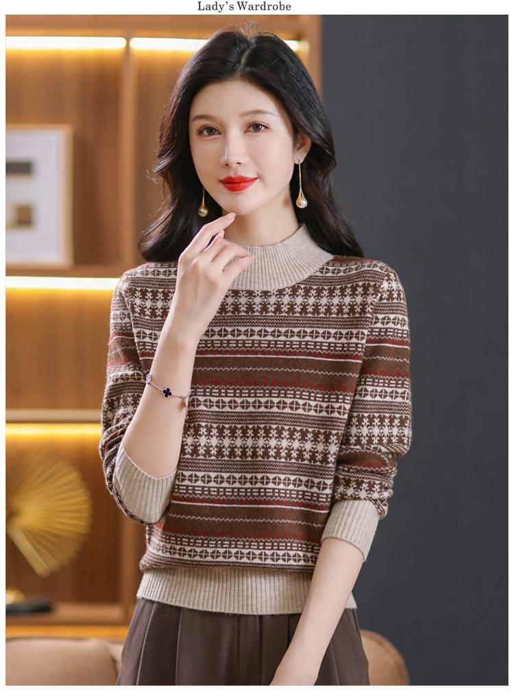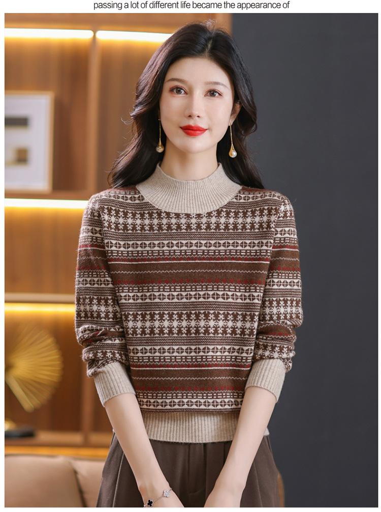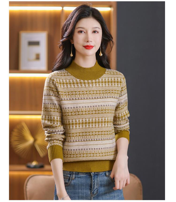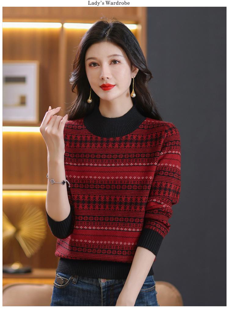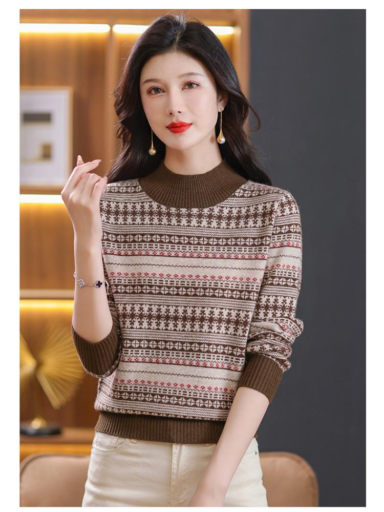 Suéter jacquard para mamá, otoño e invierno, cuello alto medio, camisa de fondo, estilo occidental de moda, nuevo suéter interior grueso de talla grande para mediana edad