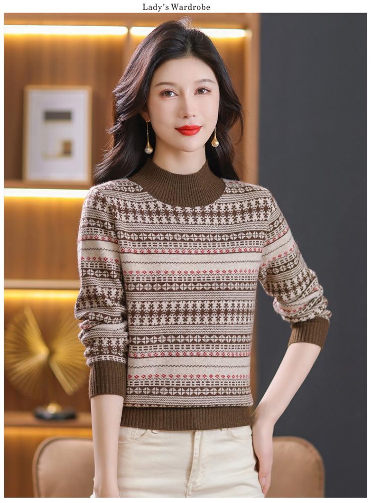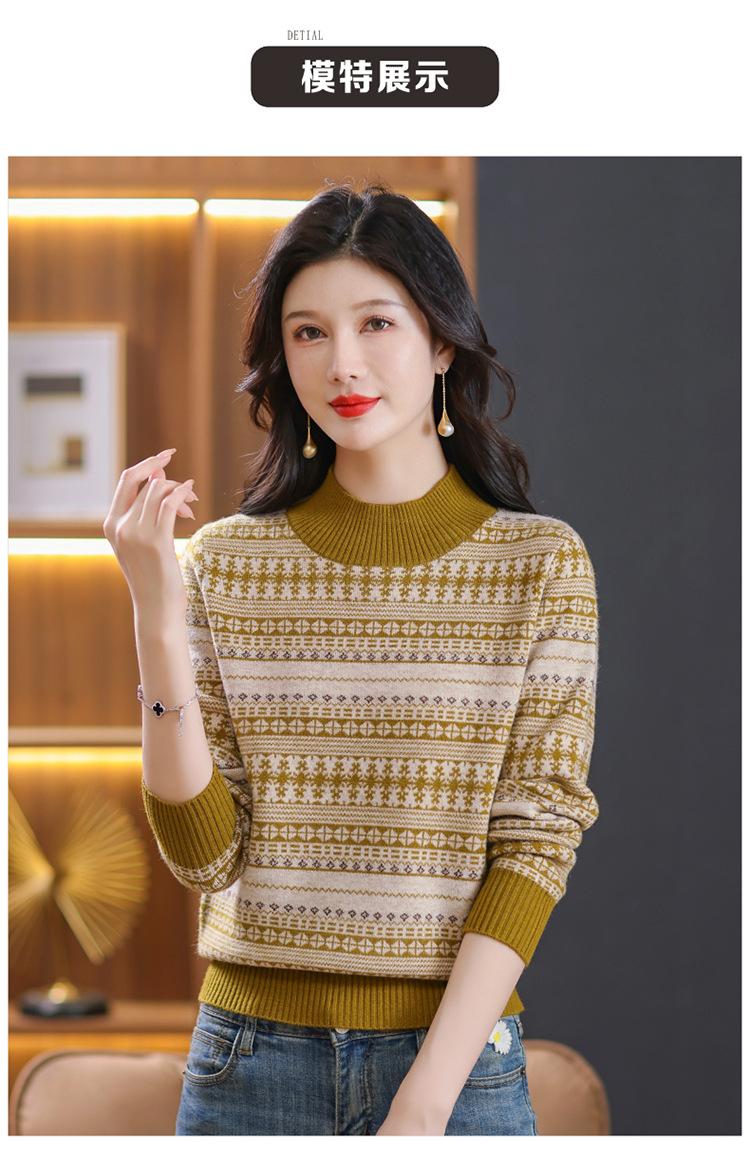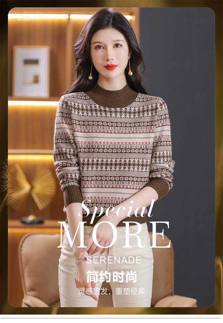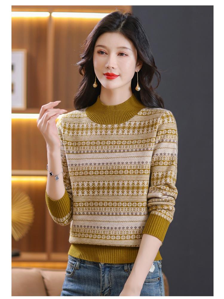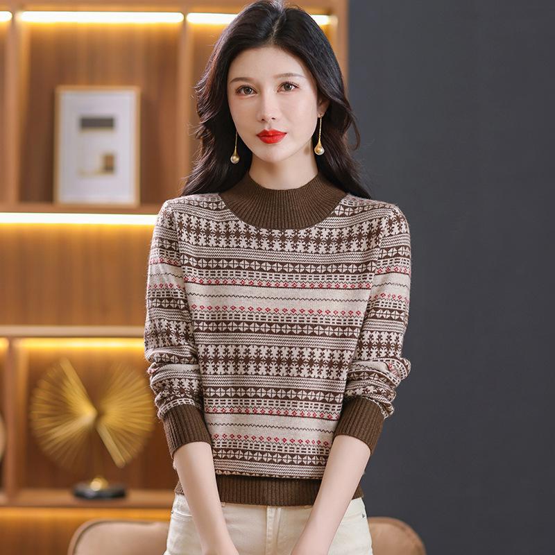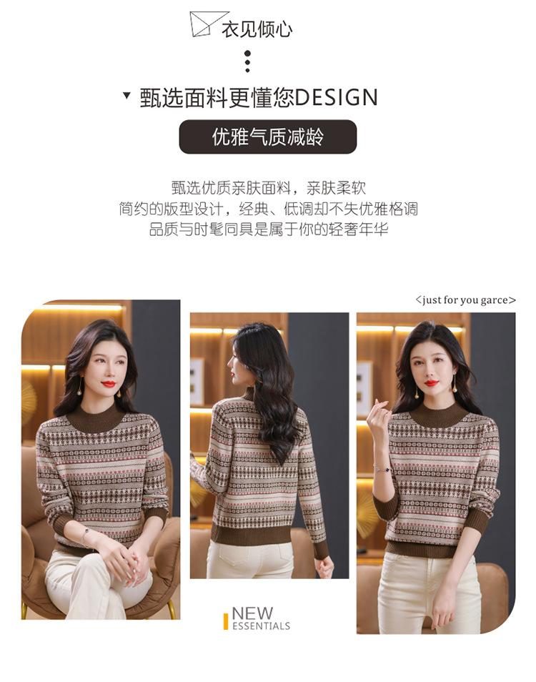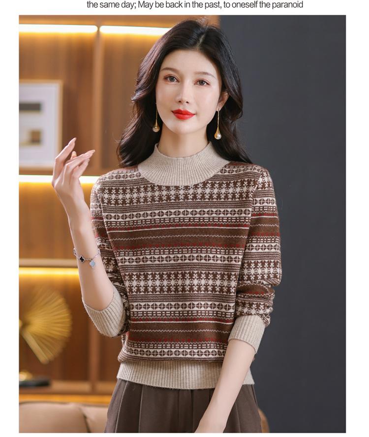 Suéter jacquard para mamá, otoño e invierno, cuello alto medio, camisa de fondo, estilo occidental de moda, nuevo suéter interior grueso de talla grande para mediana edad