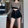 Pantalones cortos casuales de cintura alta de alta calidad para mujer, pantalones cortos deportivos holgados de verano 2024 de color sólido con pierna ancha y corte A para mujer