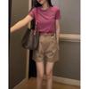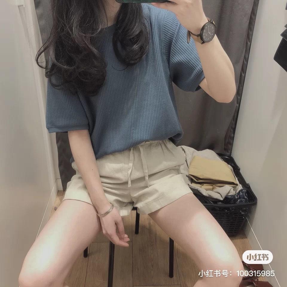 Shorts de Algodón Lavado de Cintura Alta 2023 Xia Kuai Tuan Mju Primavera y Verano Nuevos Pantalones Casuales Delgados para Mujer