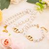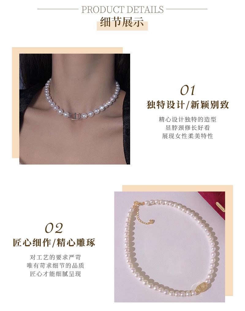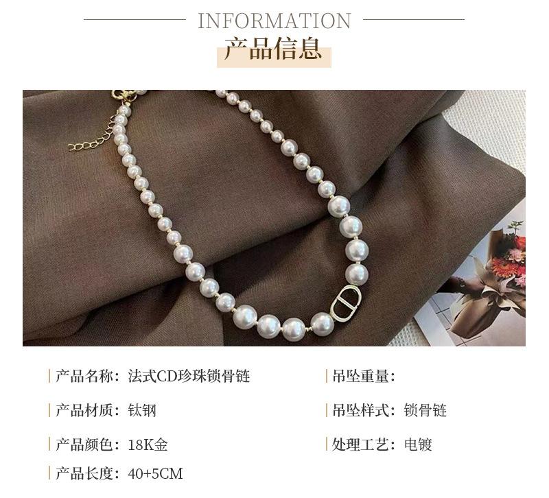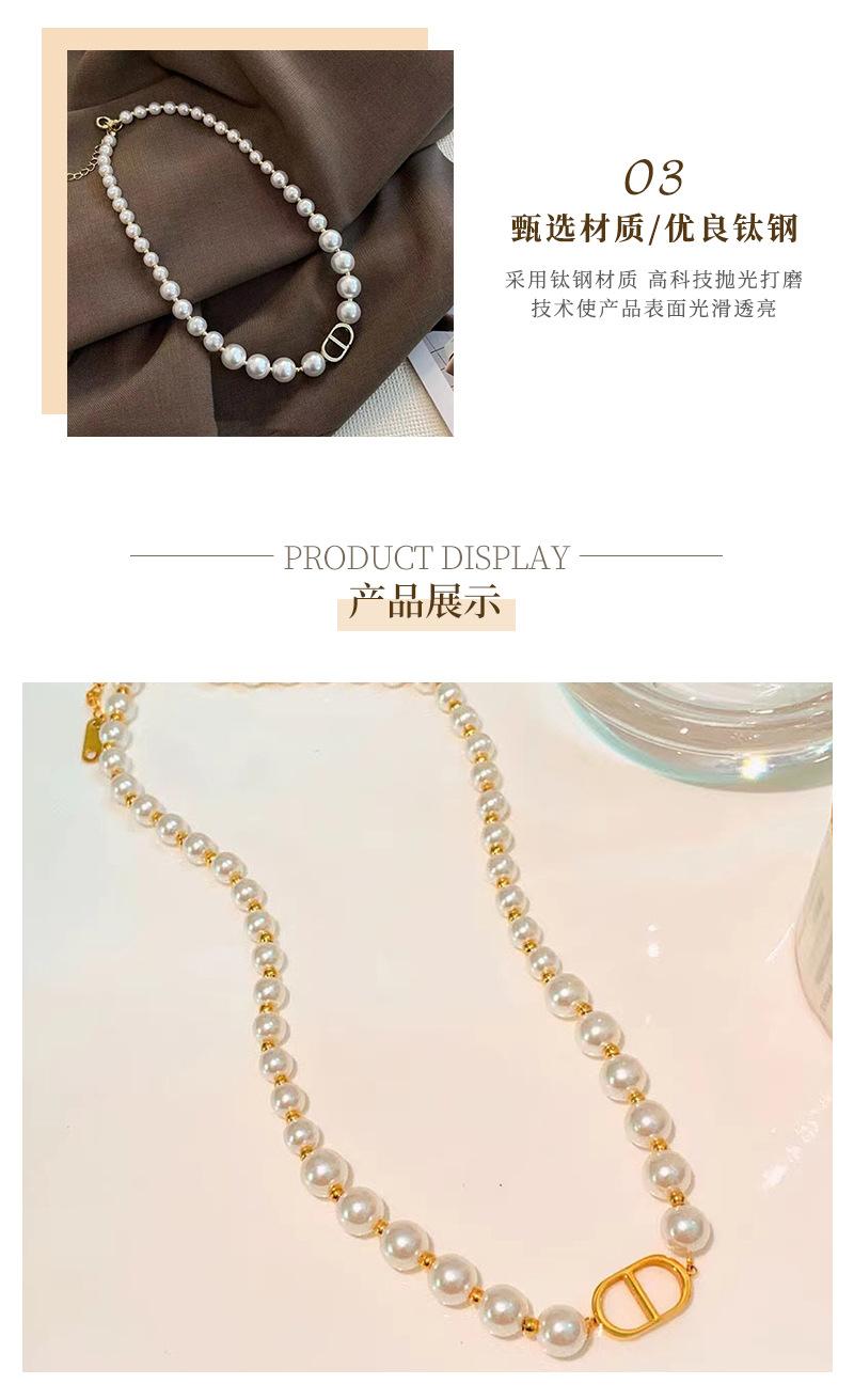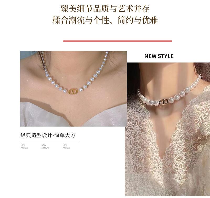 Collar elegante con forma de D de perla y nariz de cerdo, de acero de titanio de alta calidad, para mujer, estilo transfronterizo europeo y americano.