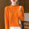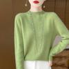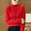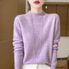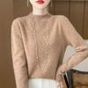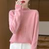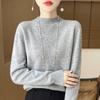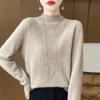 Suéter 100% de lana pura para mujer, suéter de punto grueso con cuello alto y media manga, suéter de cachemira de hilo de puntos de nuevo estilo para otoño e invierno.